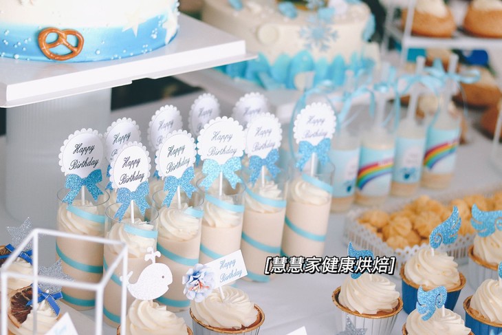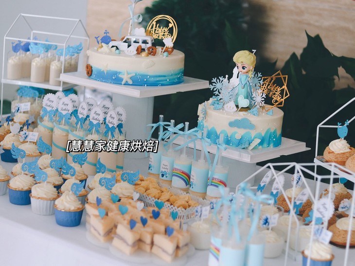 蓝色系甜品台