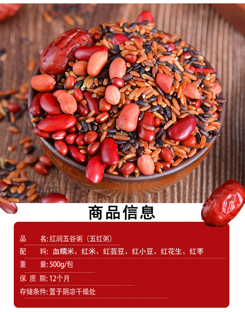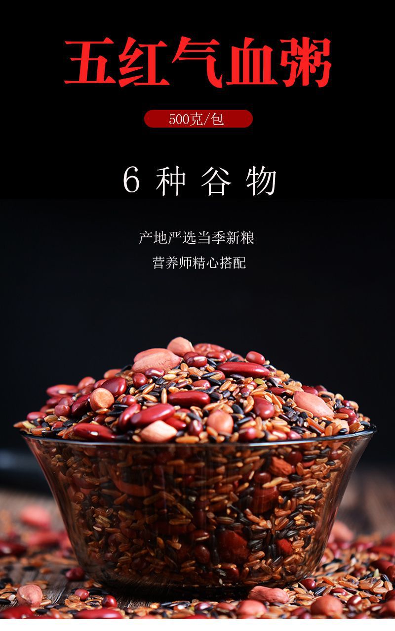 【19.9抢❗️九谷五黑粥】营养丰富,500g红气粥五红粥红花生枸杞红小豆红枣片红米产后月子红豆饮健康L