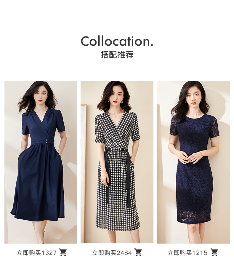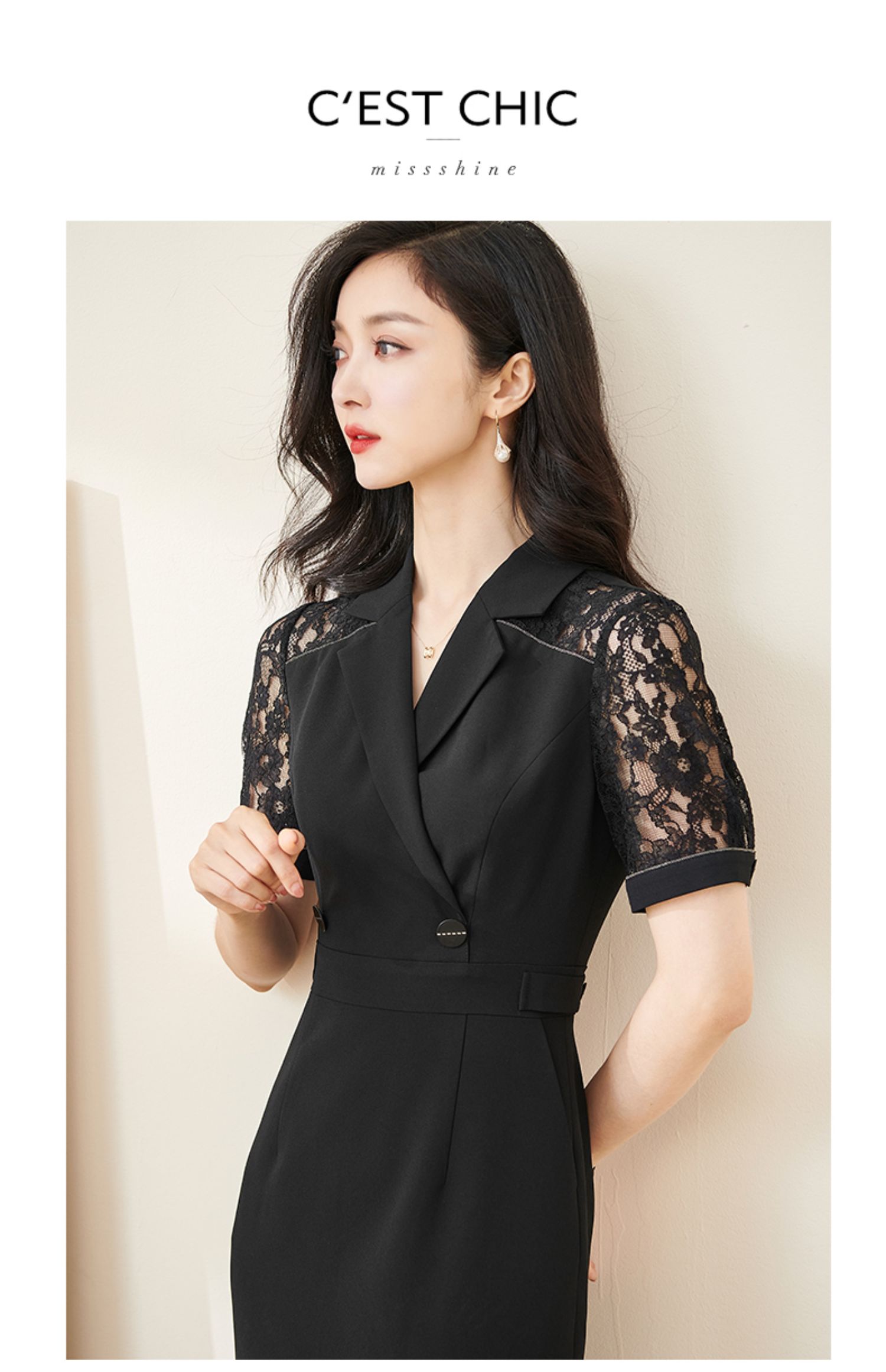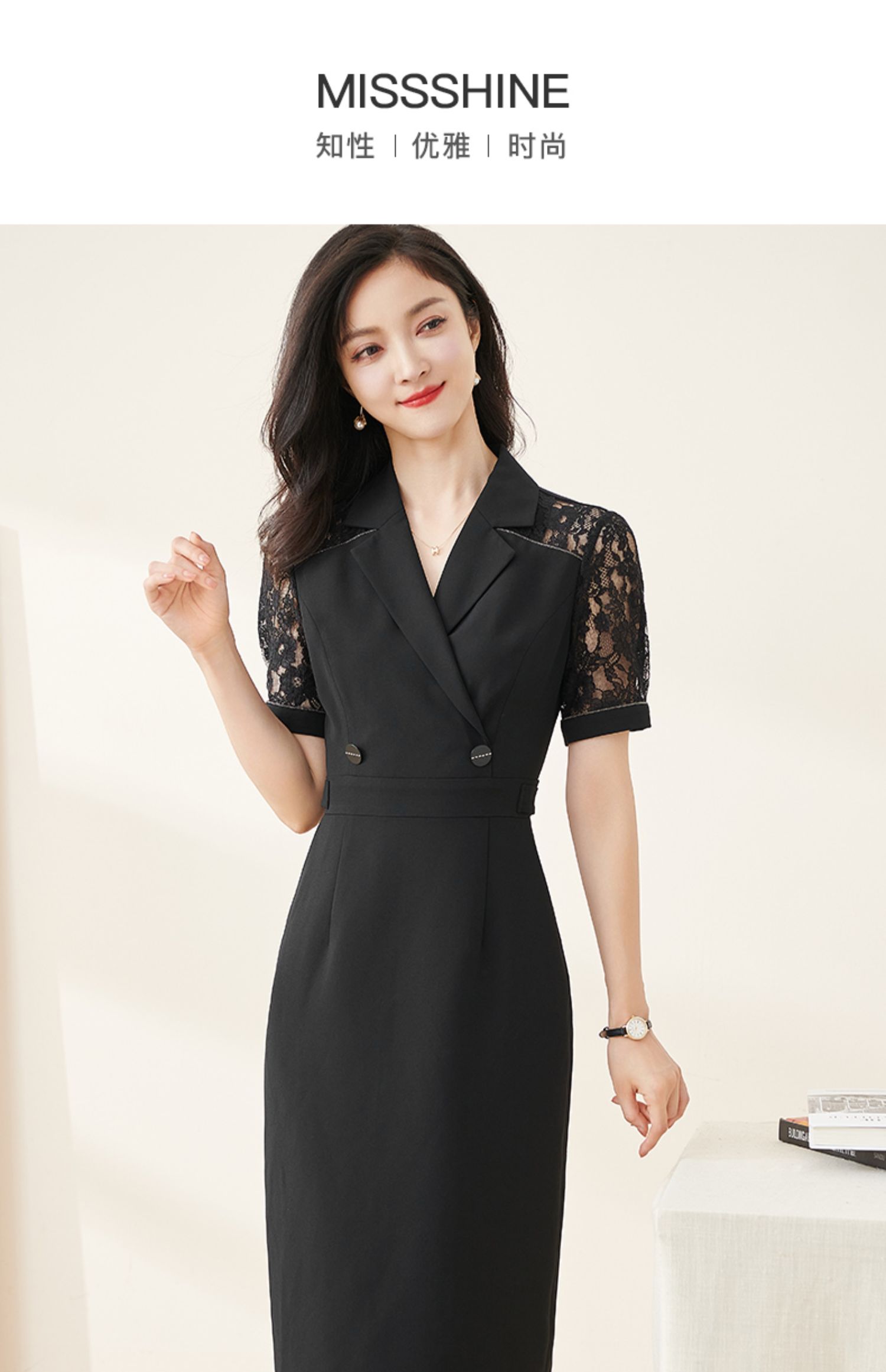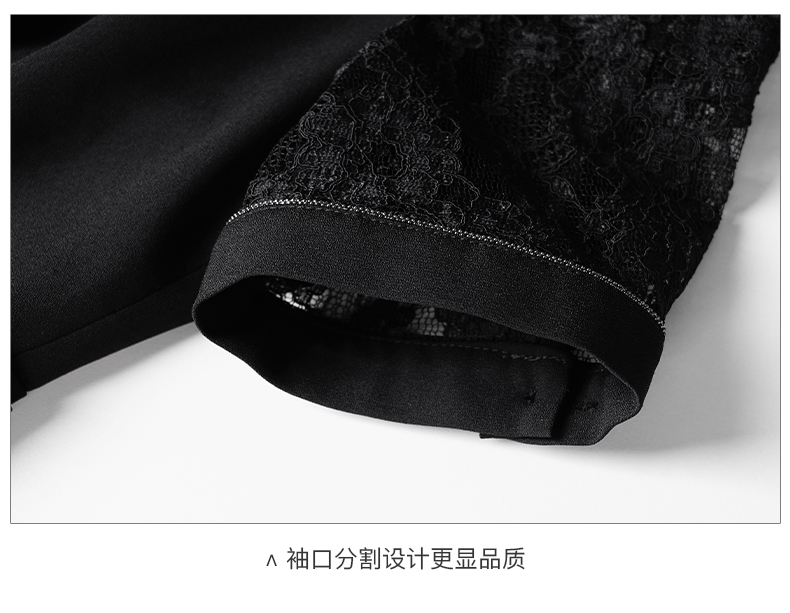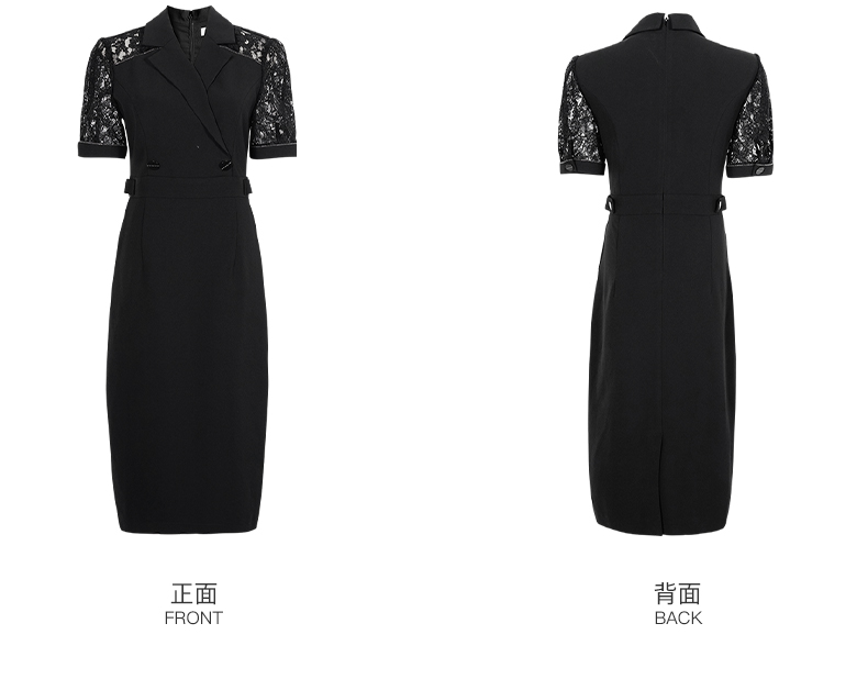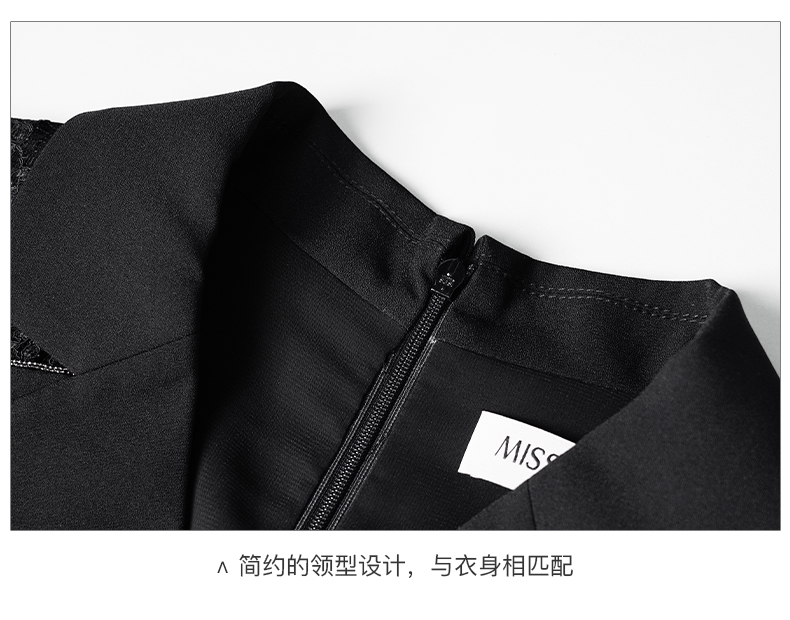 剩S/M/L 米思阳2024夏季新款时尚OL西装式连衣裙拼接蕾丝袖修身中长裙裙子