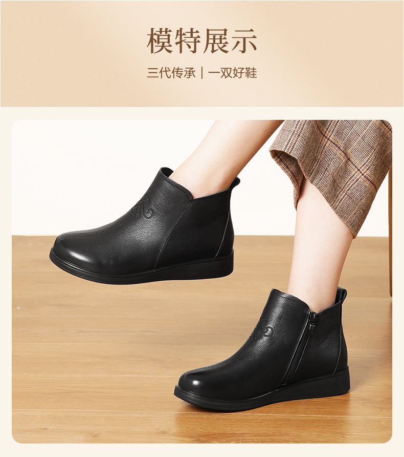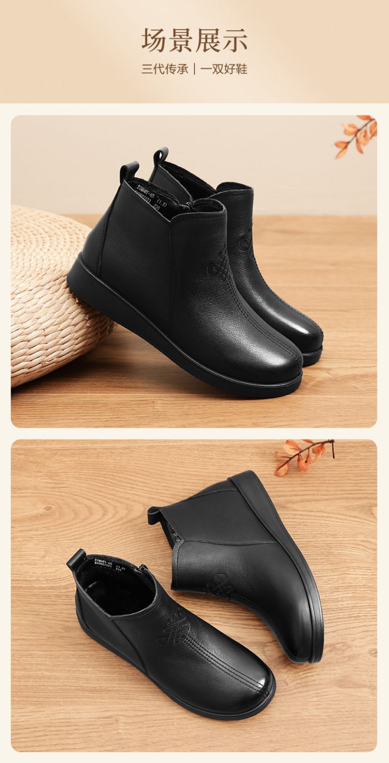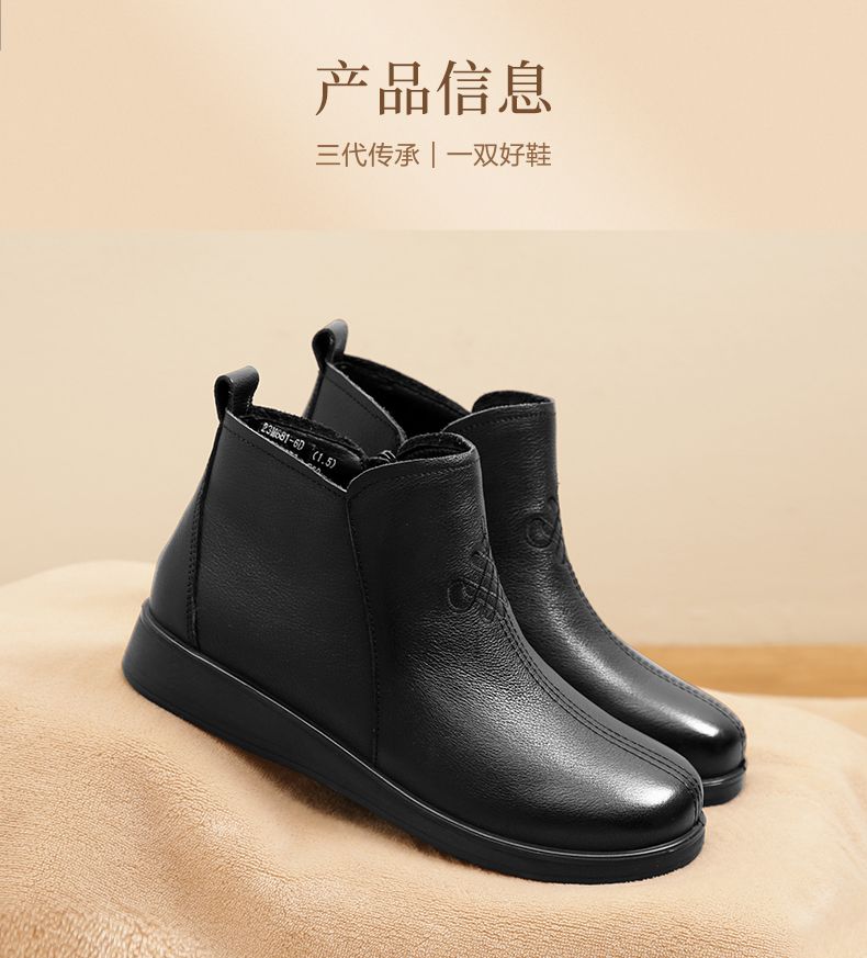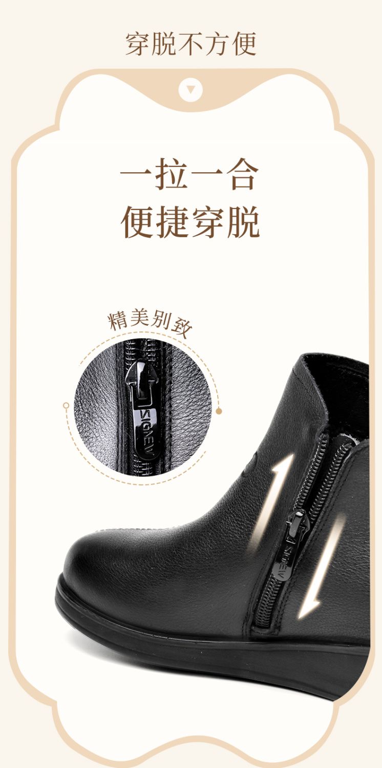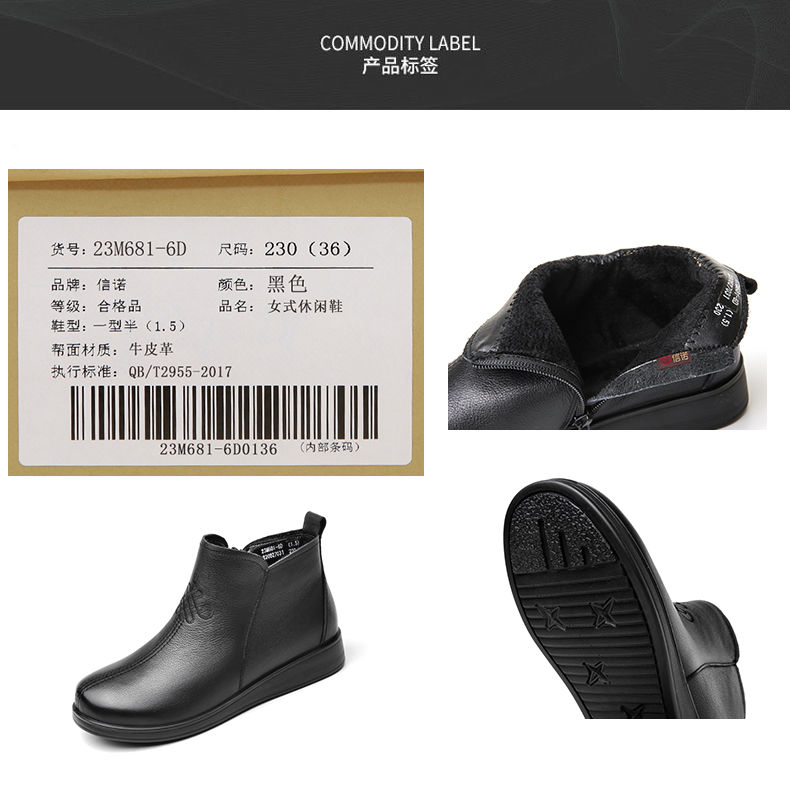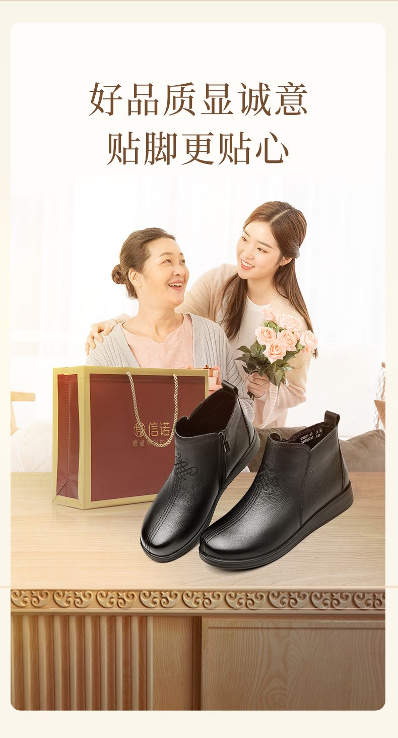 信诺真皮软底妈妈棉鞋2023冬季新款加绒保暖老人奶奶皮鞋女中老年23M681-6D