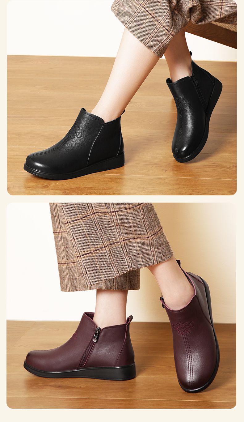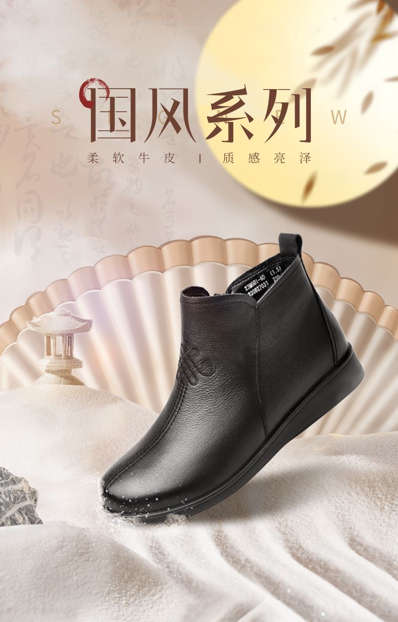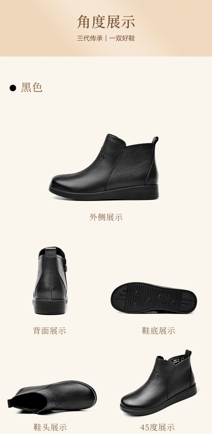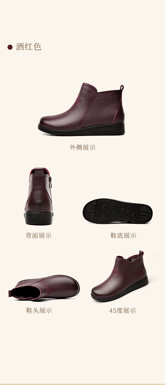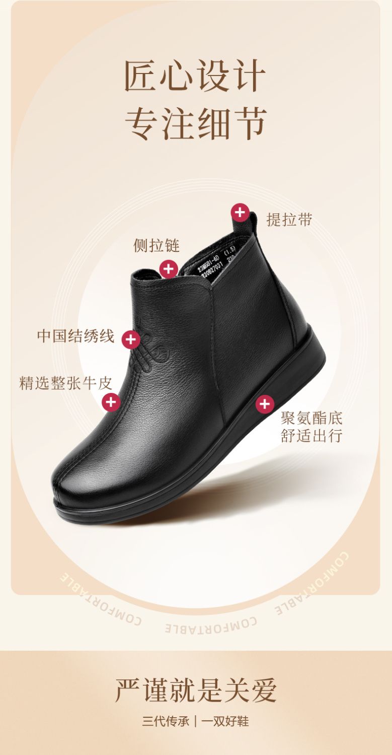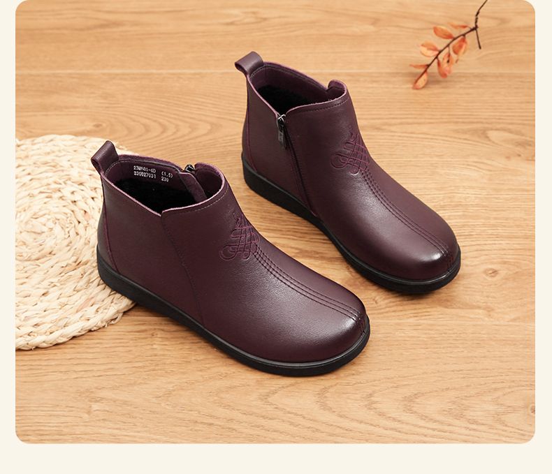 信诺真皮软底妈妈棉鞋2023冬季新款加绒保暖老人奶奶皮鞋女中老年23M681-6D