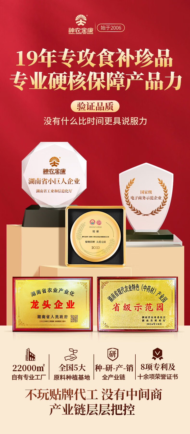 神农金康深耕滋补行业18年,用心做原生态真滋补好产品。主营绞股蓝、青钱柳、杜仲、罗布麻、莓茶、丁香、枸杞、人参等单一养生茶及清酸茶、红豆薏米茶等组合茶方,及各类有机健康炖煮食材及健康养生零食。