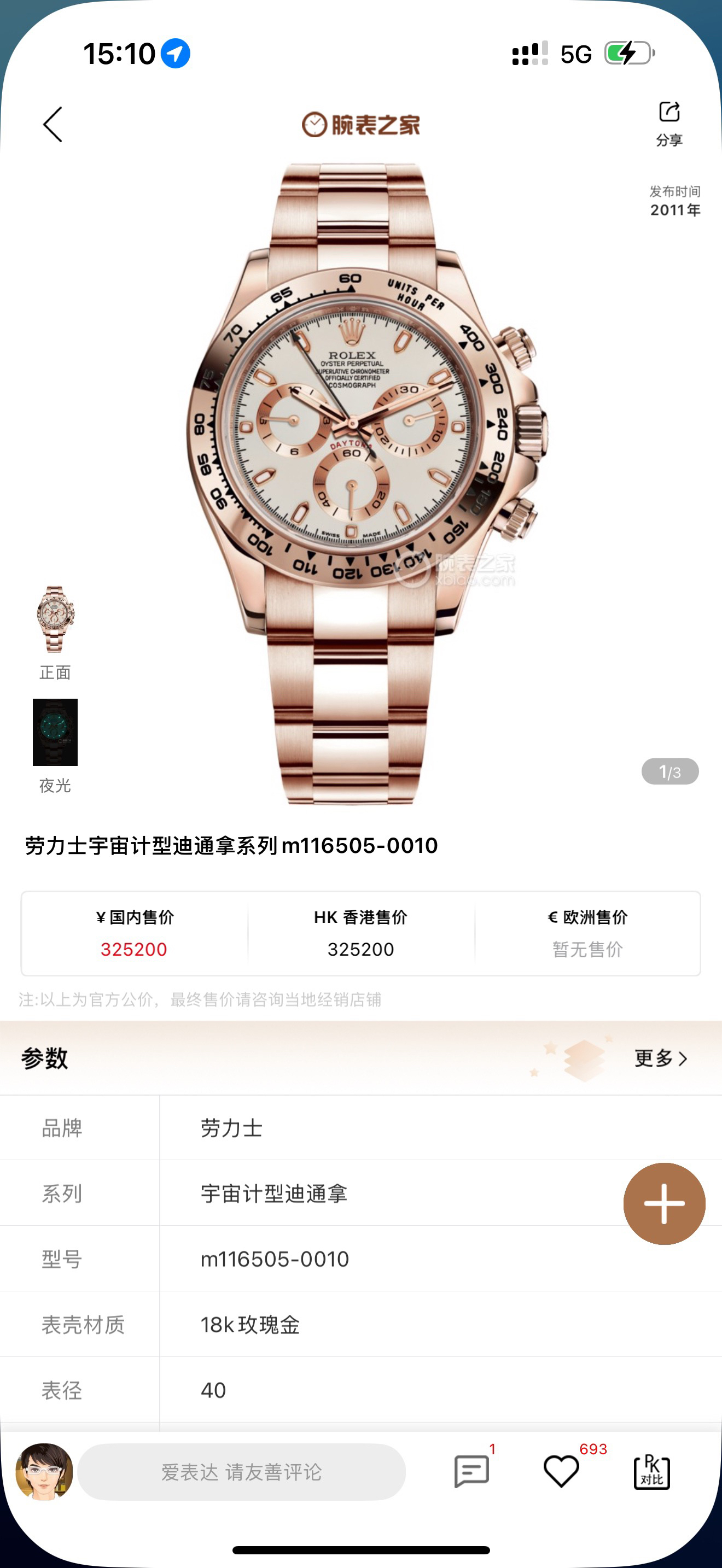 1. The product launched this time is the all rose gold Daytona