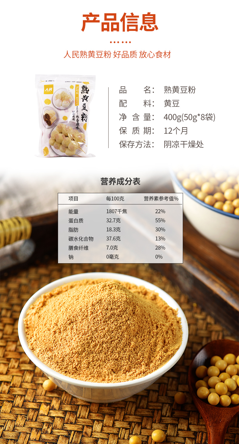 人民 熟黄豆粉糍粑独立小袋装400g/1kg