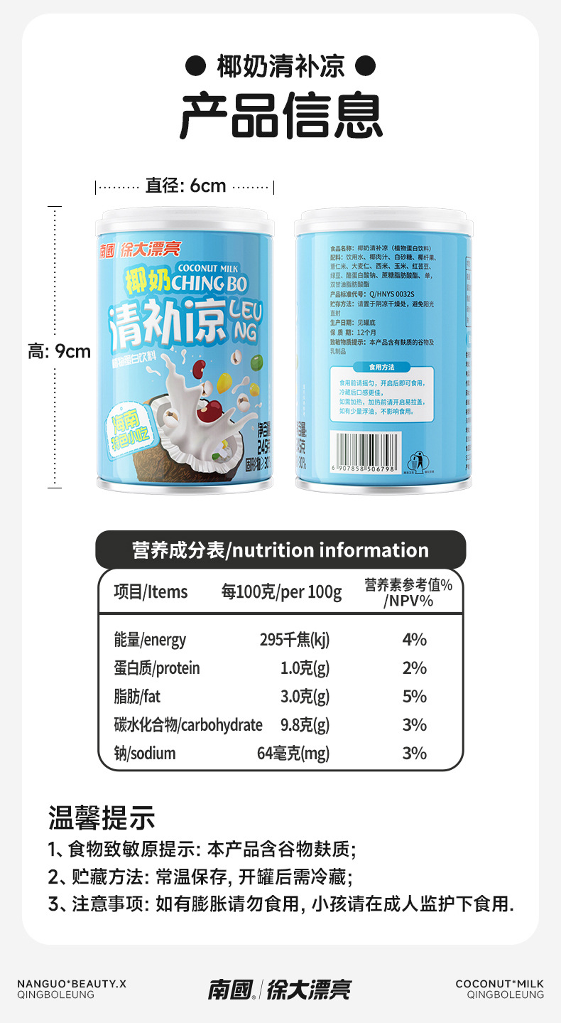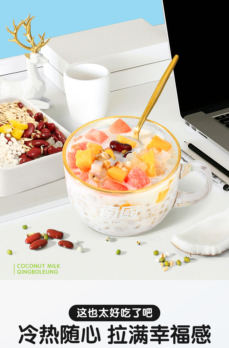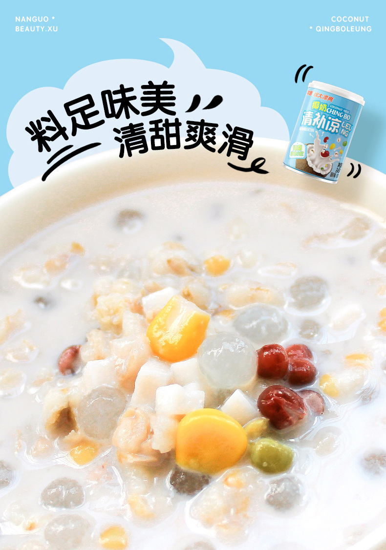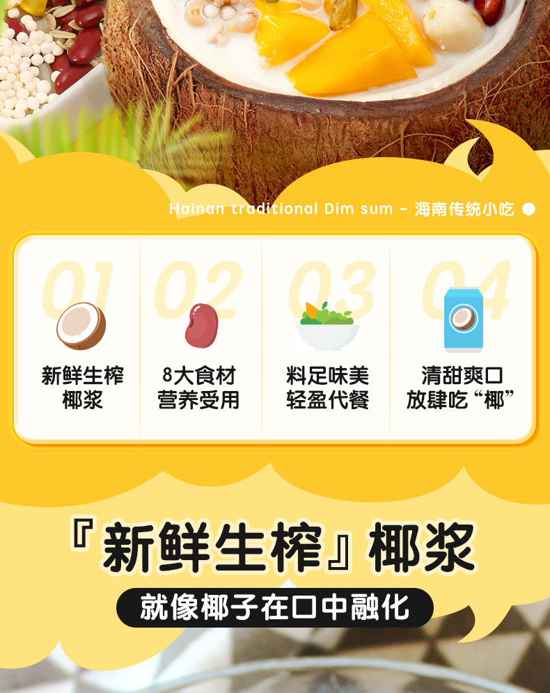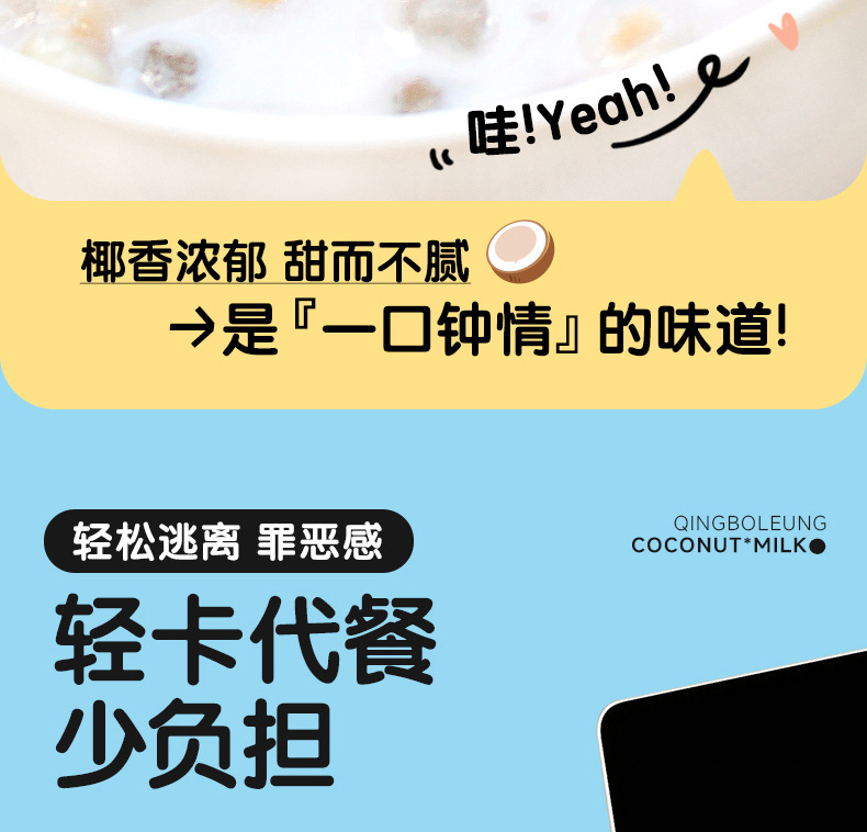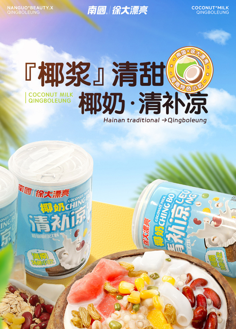 【南国老品牌,大漂亮清补凉】海南特产新鲜生榨椰奶,料足味美清甜爽滑,椰子汁椰果谷物早餐下午茶开袋即食方便QQ