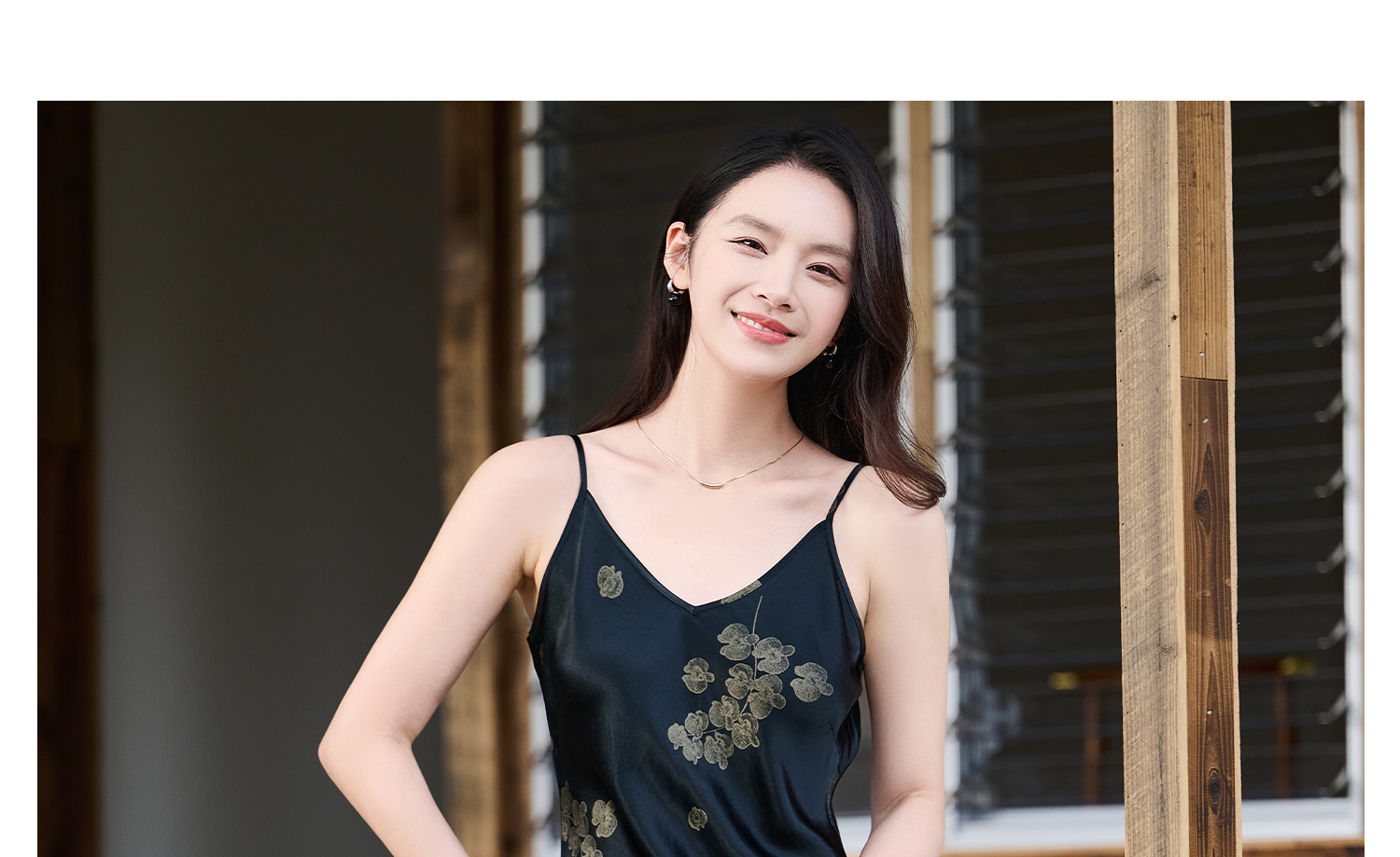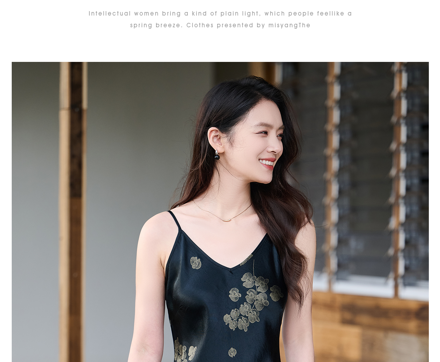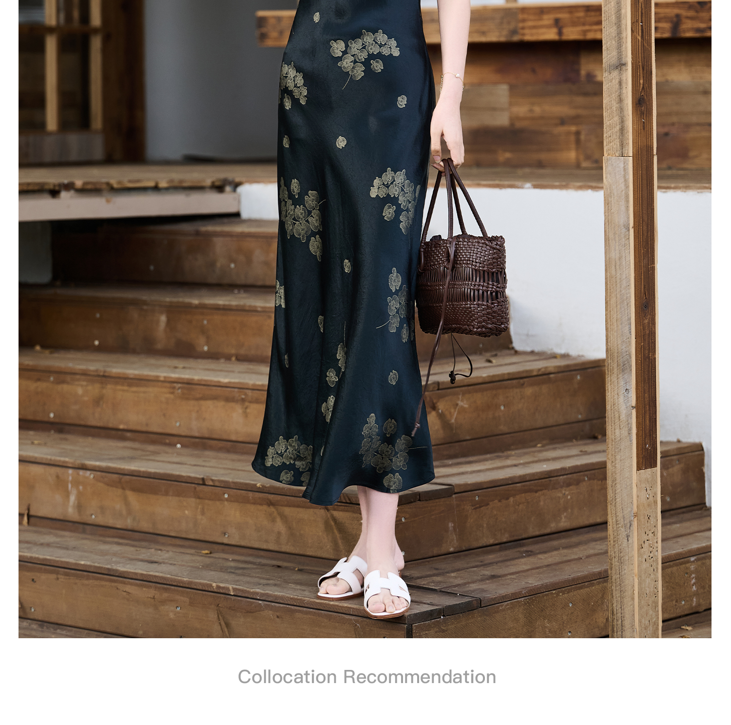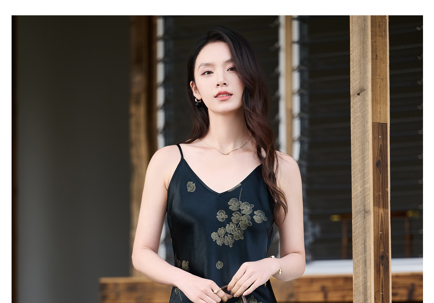 黑金梅花醋酸连衣裙 抓绉烫金提花压皱 米思阳2026春夏新款收腰显瘦醋纤内搭吊带裙女2933