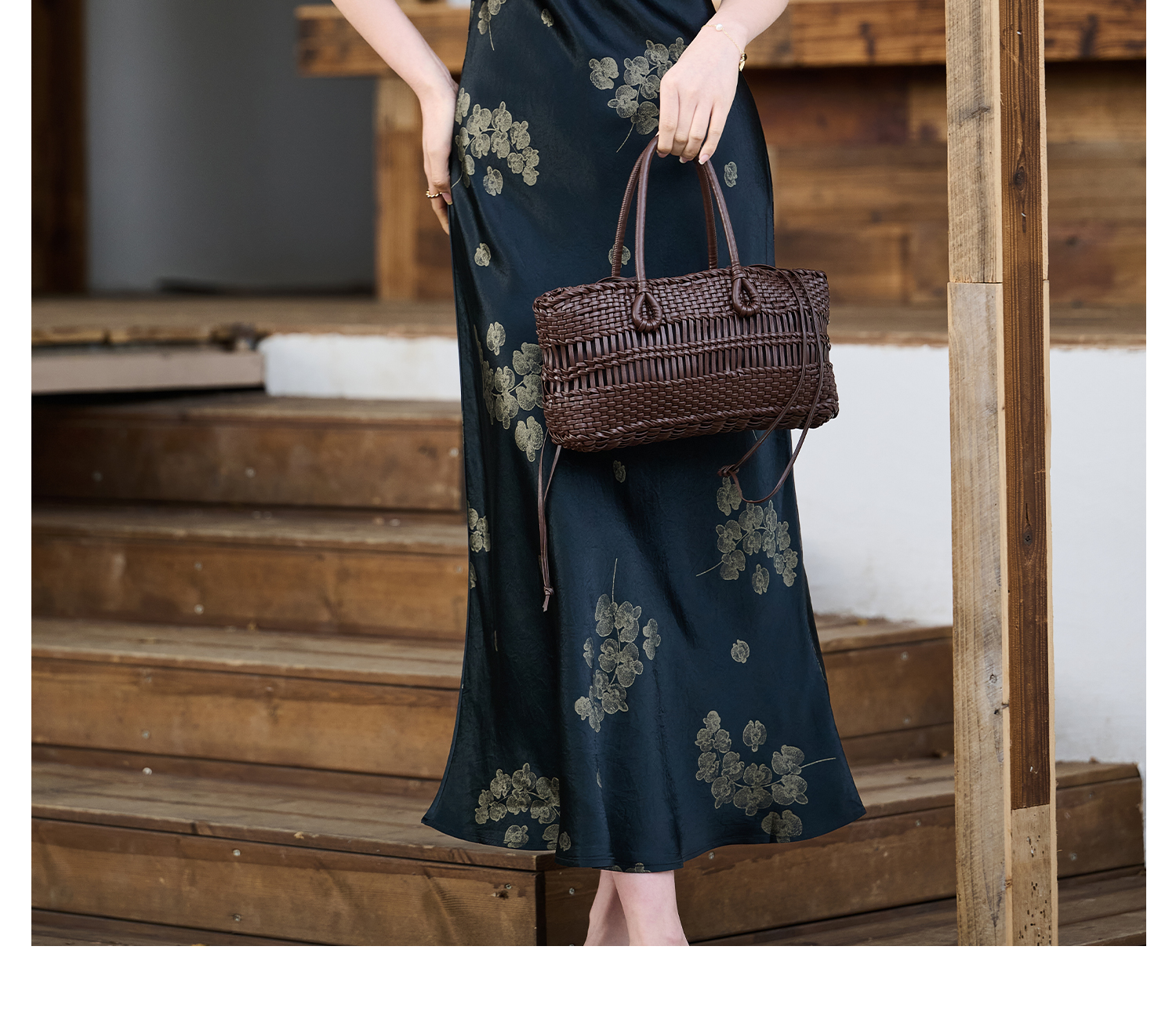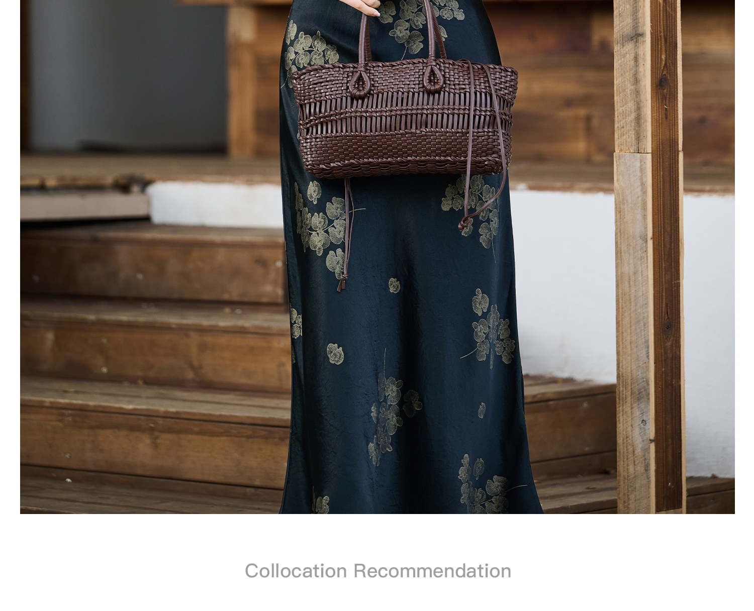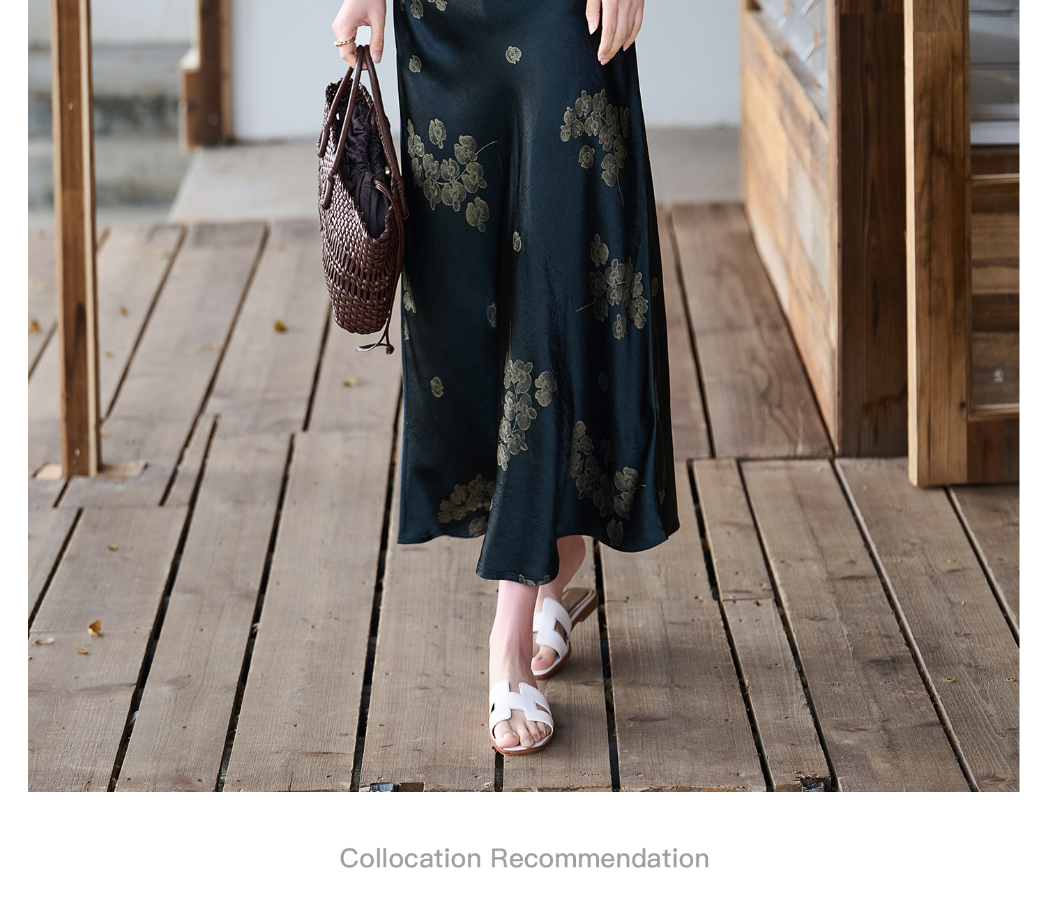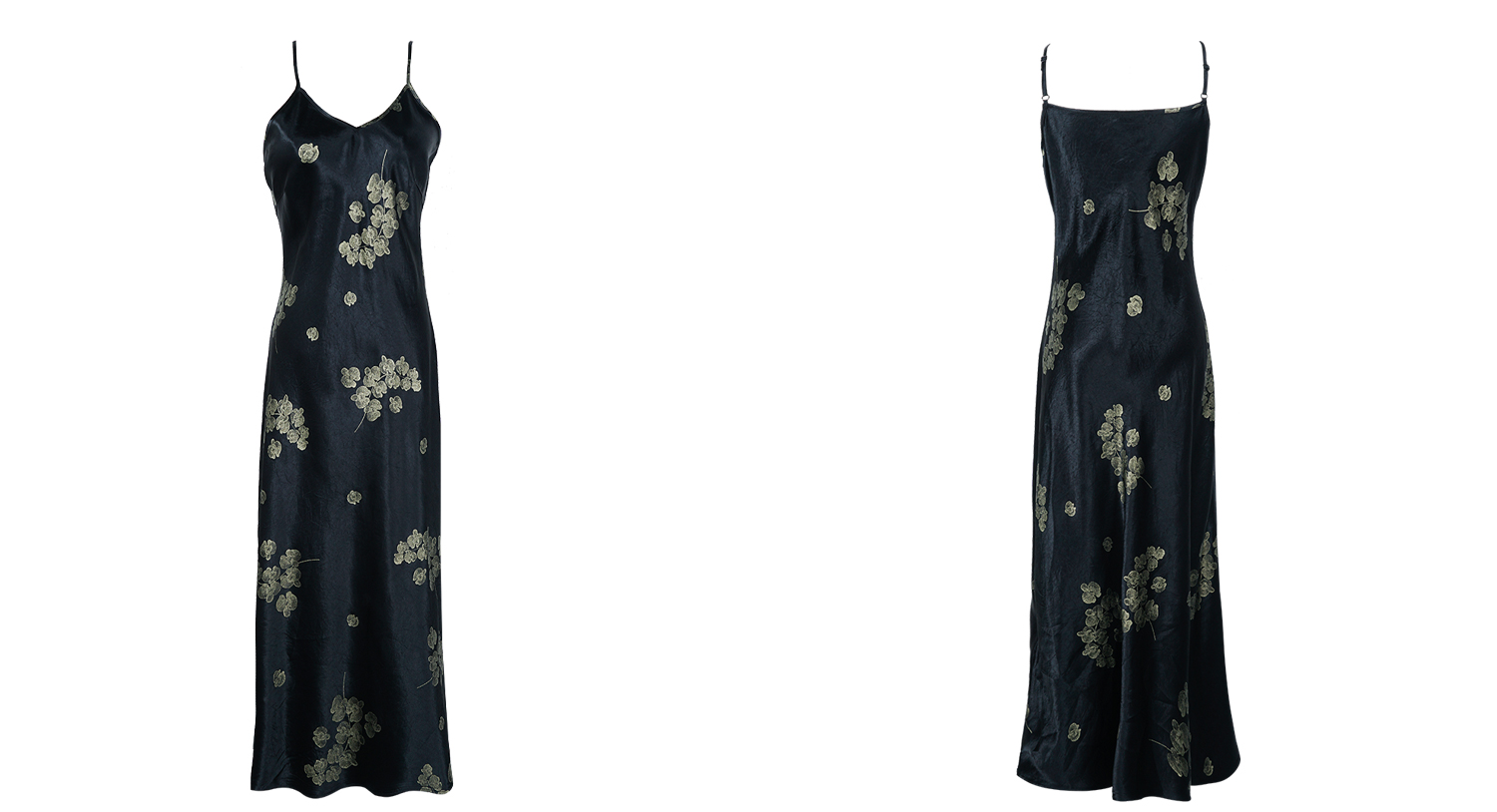 黑金梅花醋酸连衣裙 抓绉烫金提花压皱 米思阳2026春夏新款收腰显瘦醋纤内搭吊带裙女2933