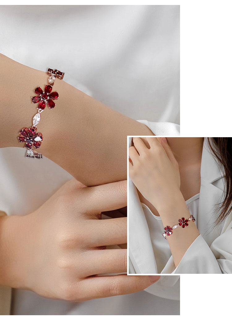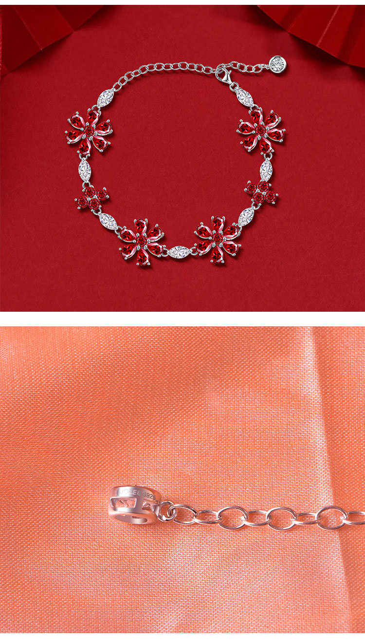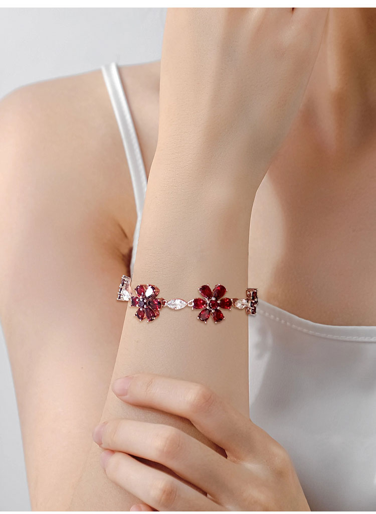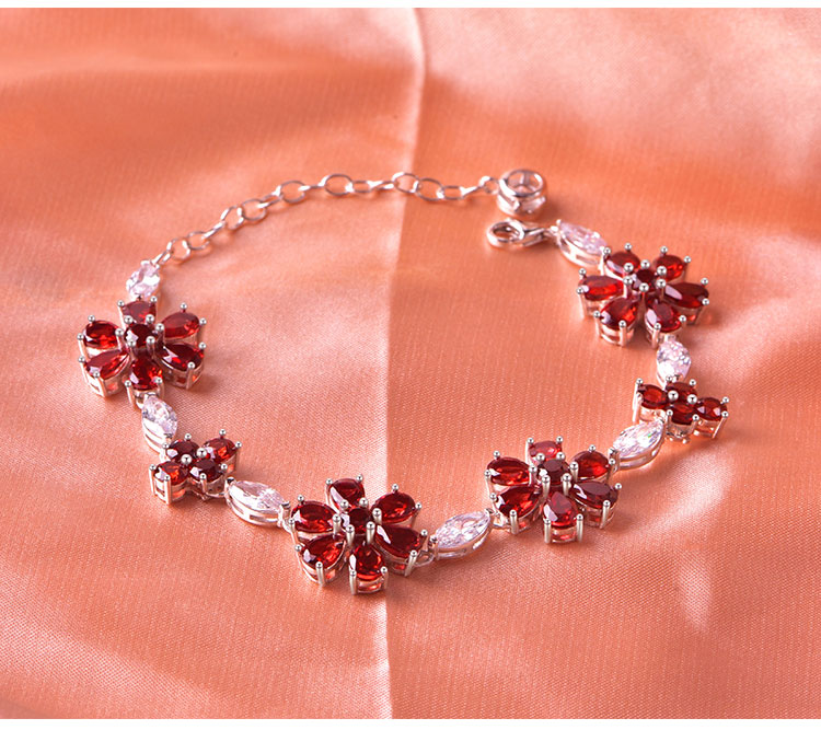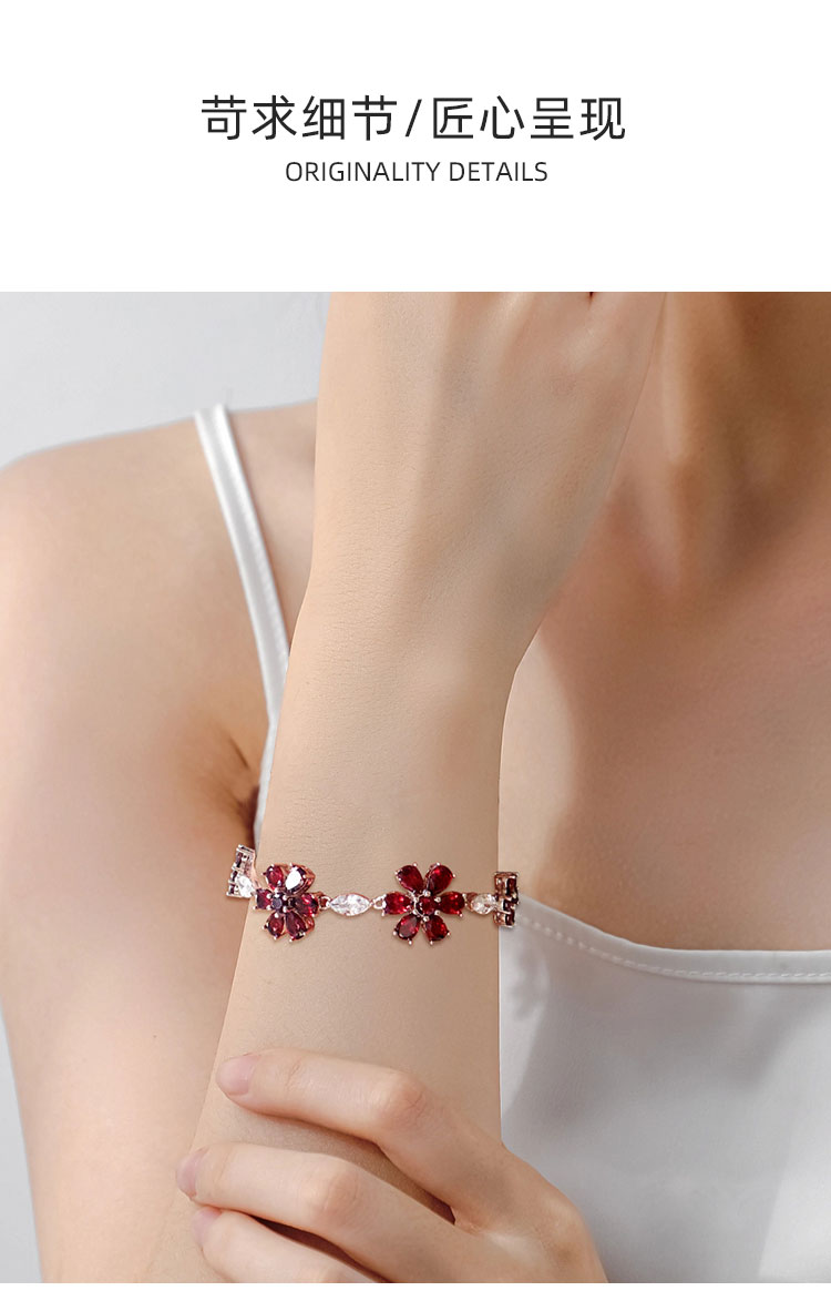 【石榴石手串】S925银酒红石榴石彩色宝石时尚简约首饰品JT19219
