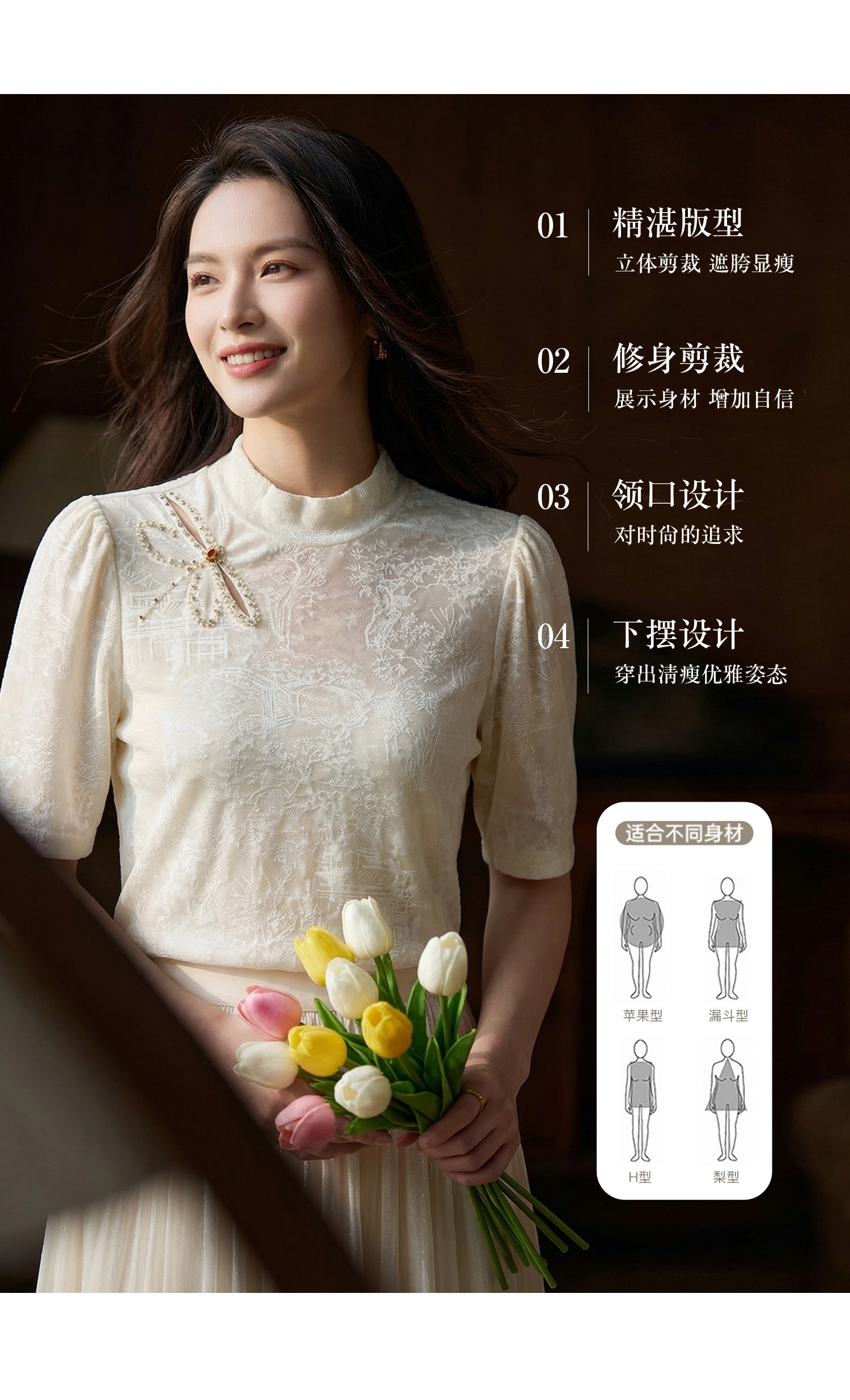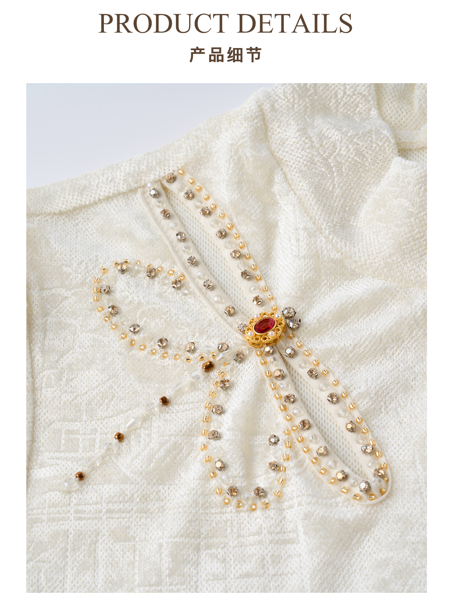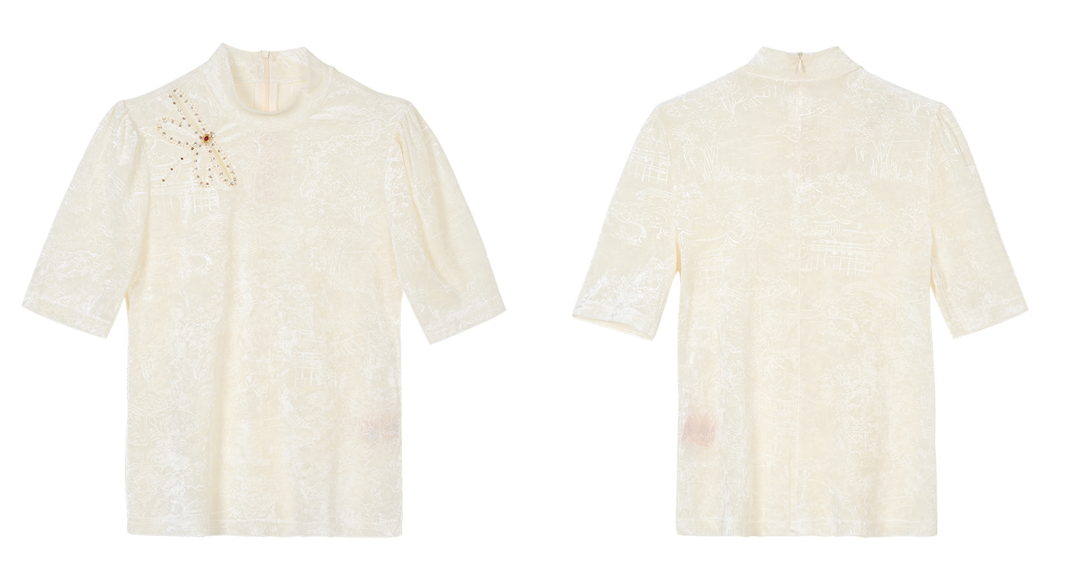 米思阳2026春夏新款气质优雅国风提花钉珠装饰百搭T恤女1115/1156
