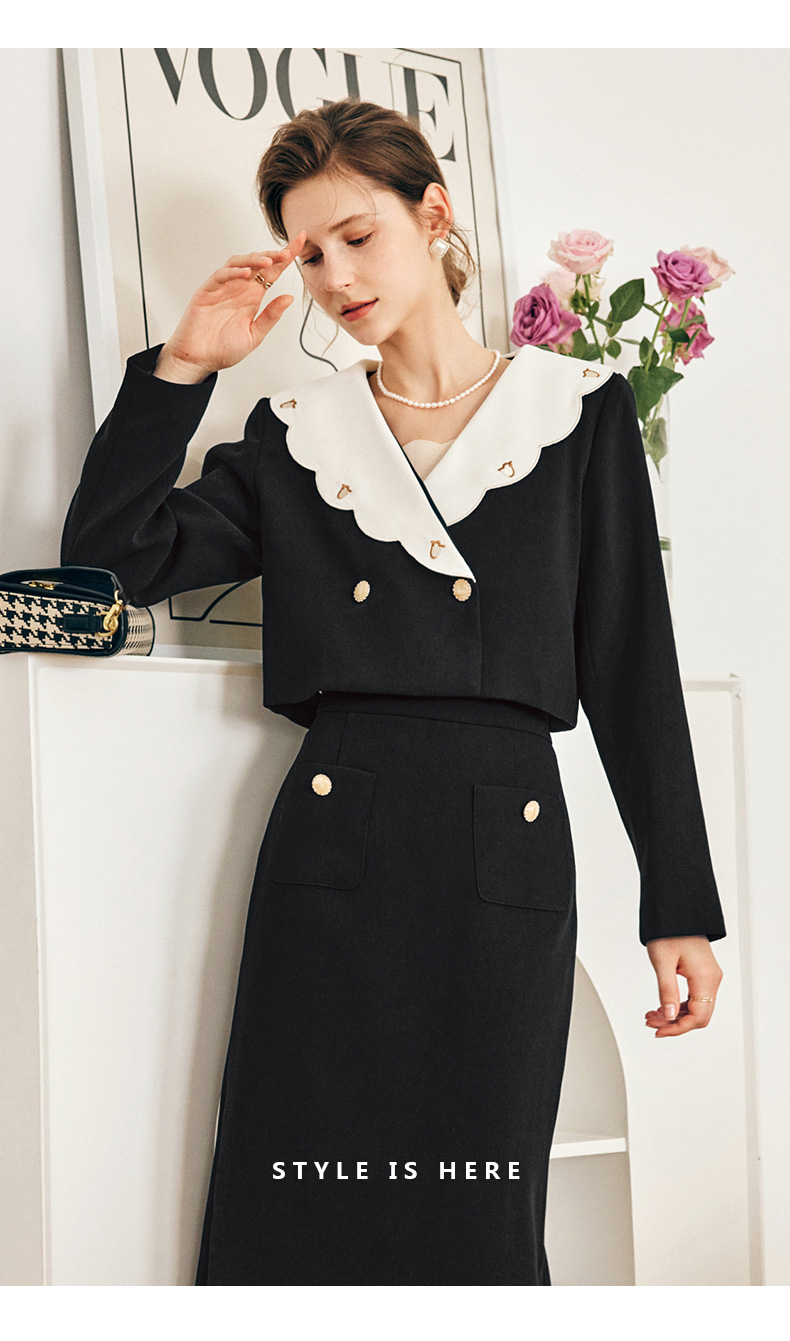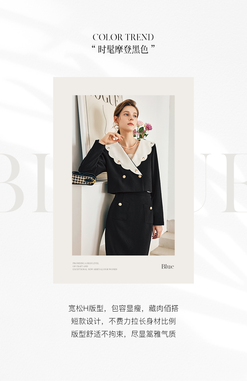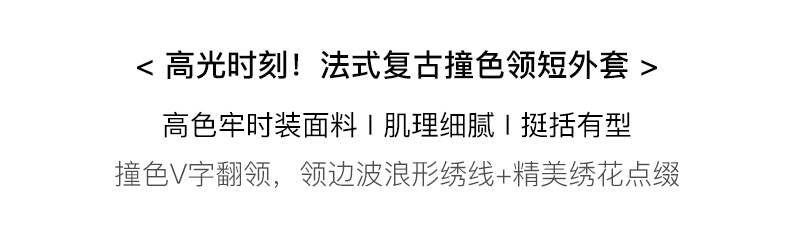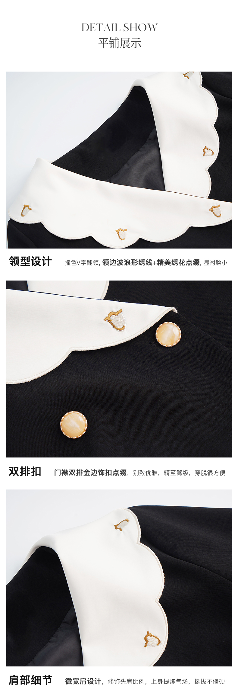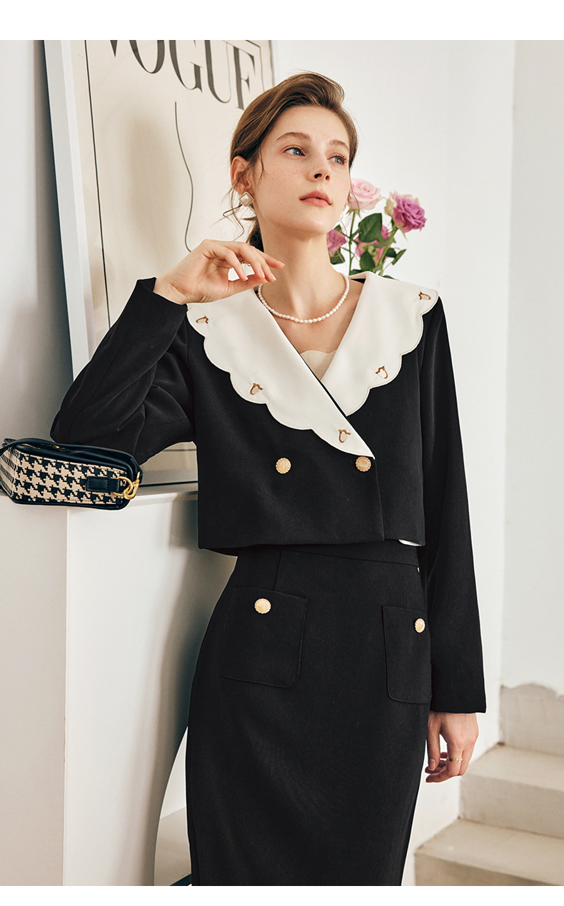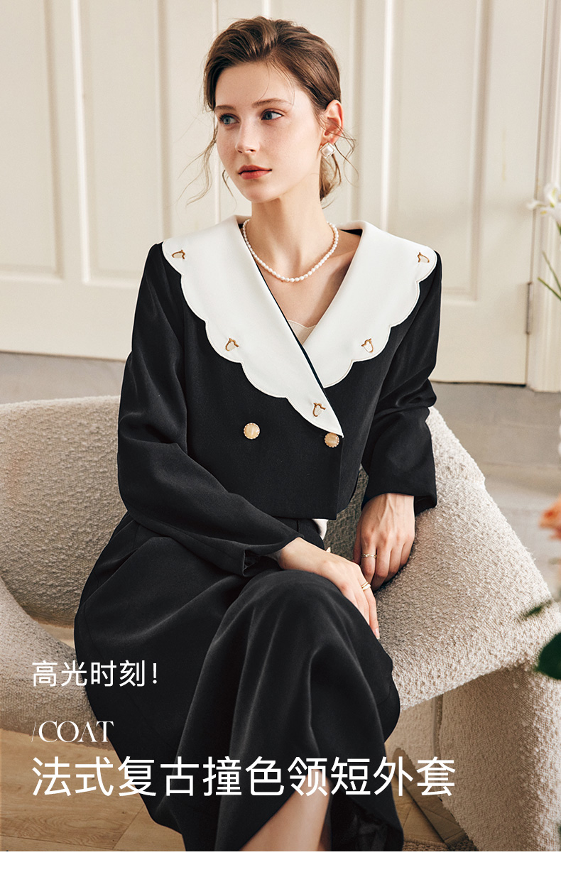 OLrain欧芮儿法式黑色短外套女秋季2022年新款复古气质撞色领上衣