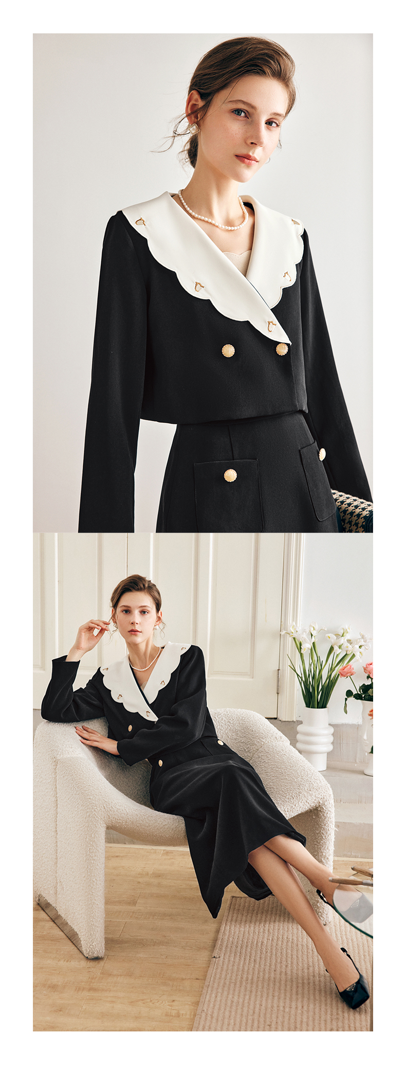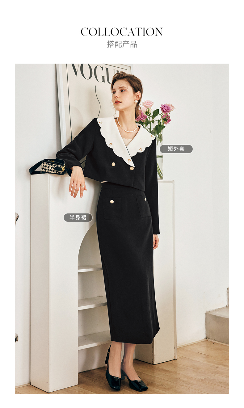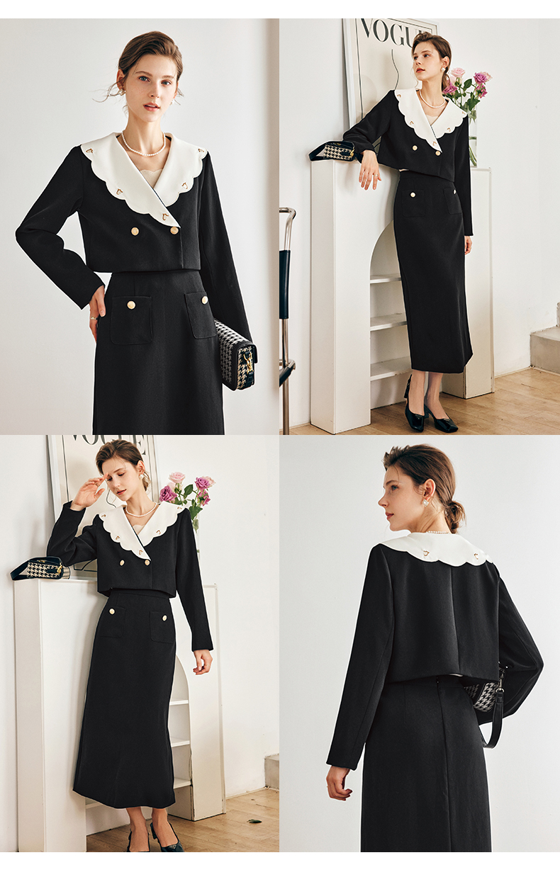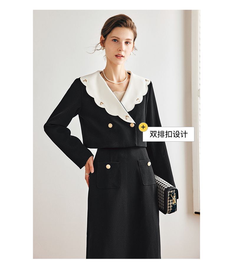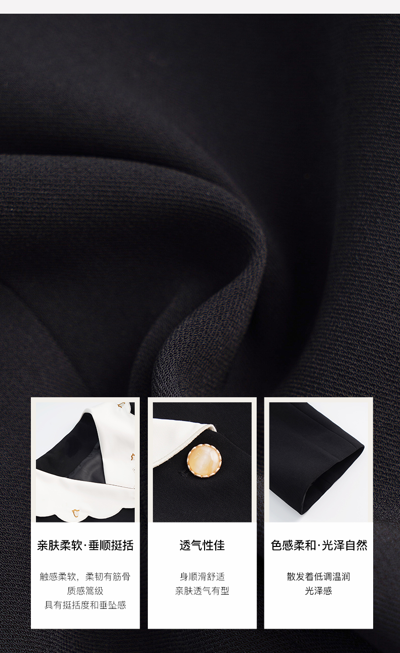 OLrain欧芮儿法式黑色短外套女秋季2022年新款复古气质撞色领上衣