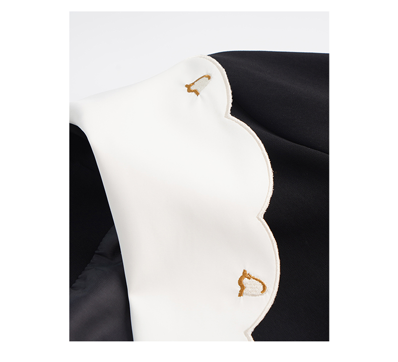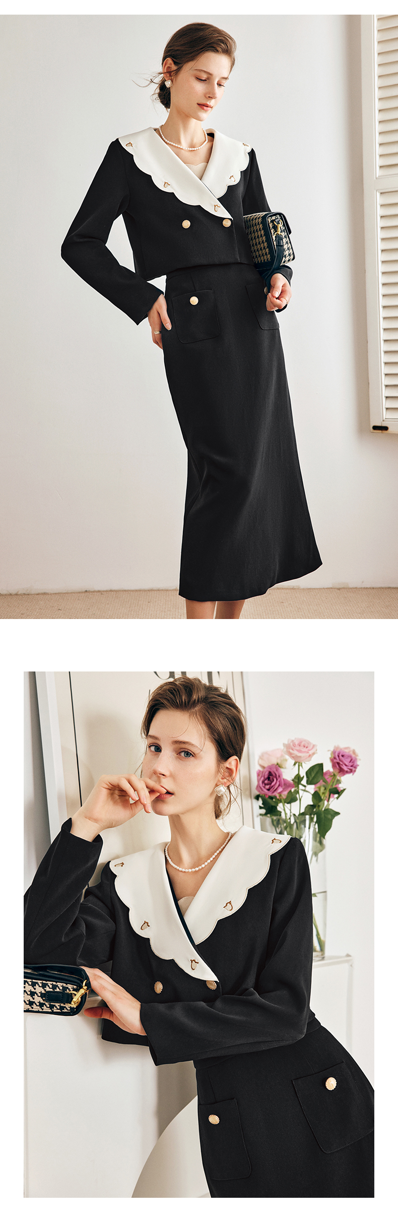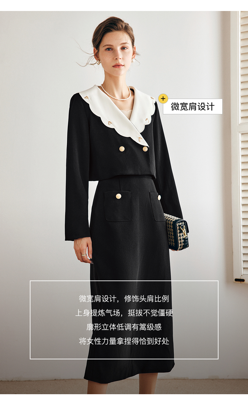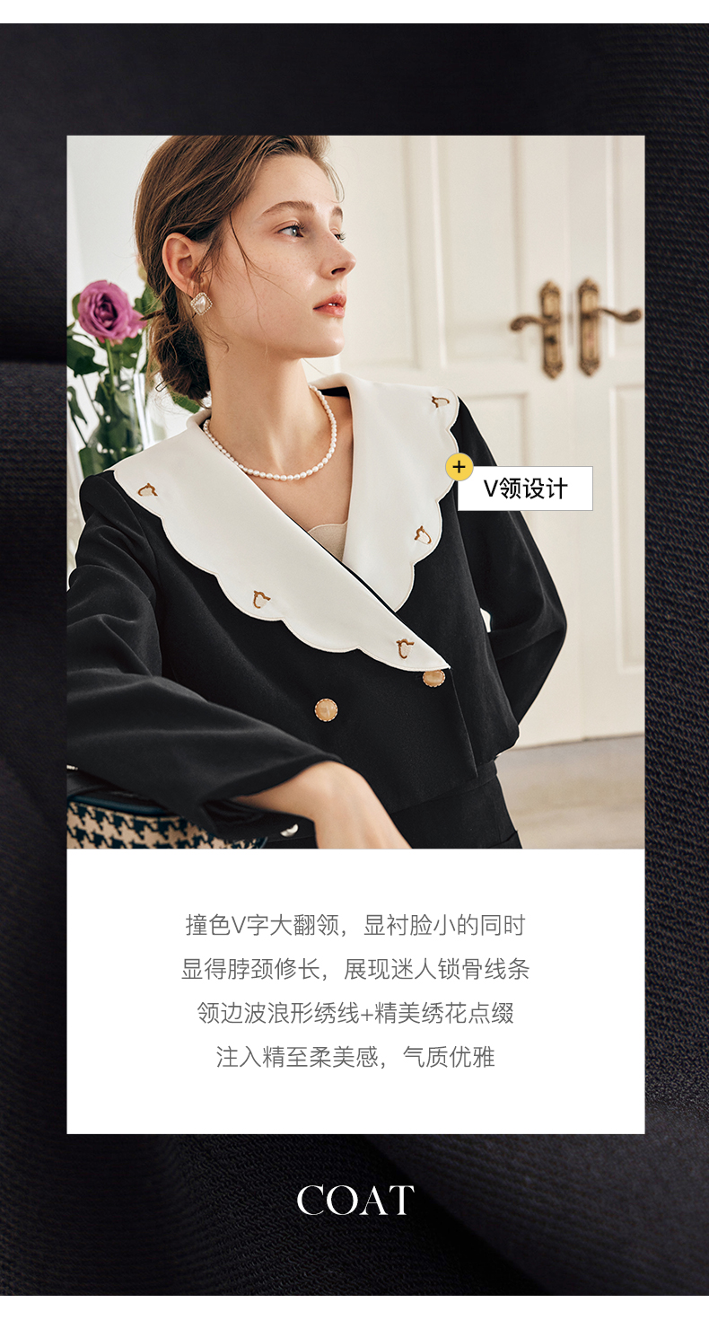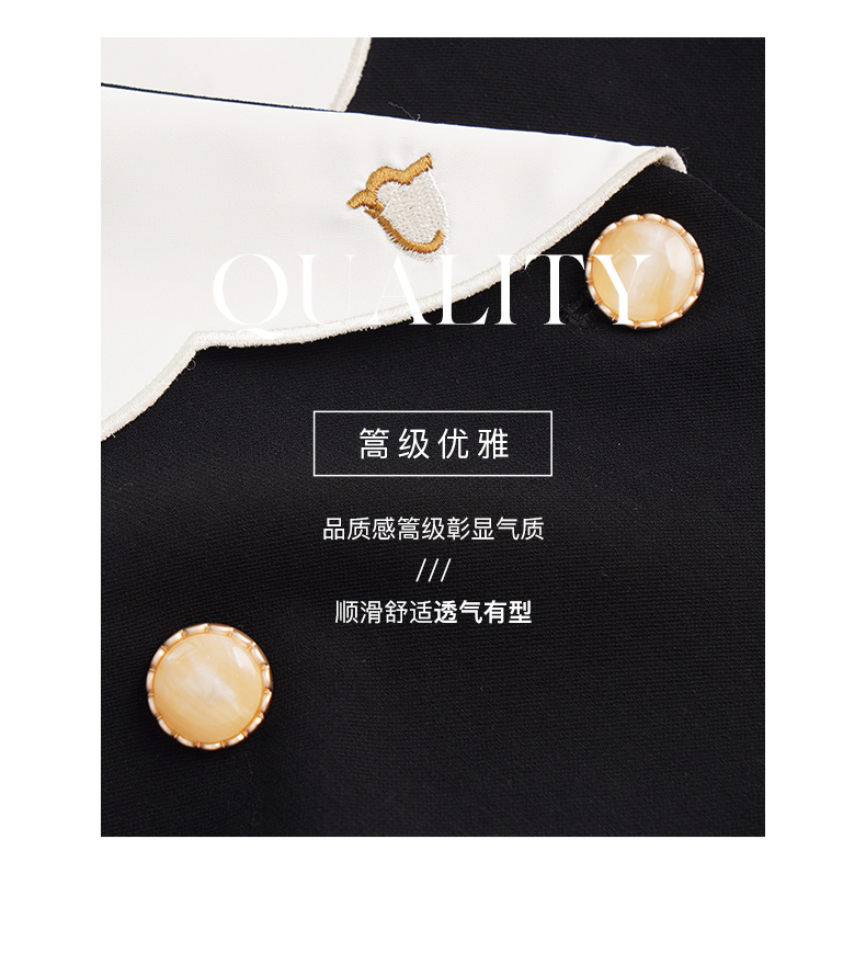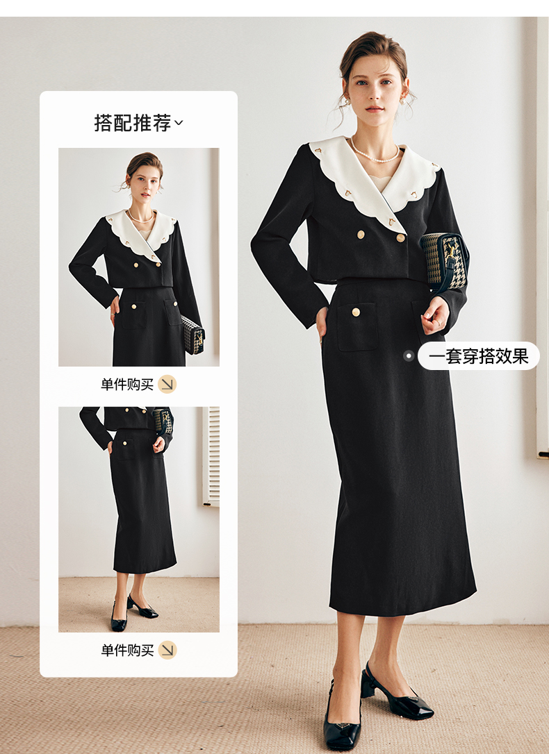 OLrain欧芮儿法式黑色短外套女秋季2022年新款复古气质撞色领上衣
