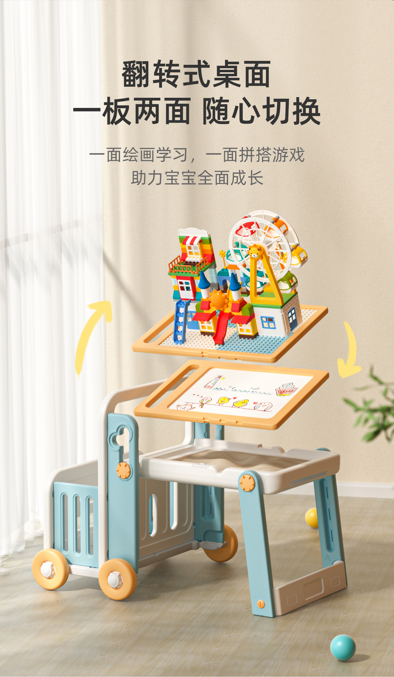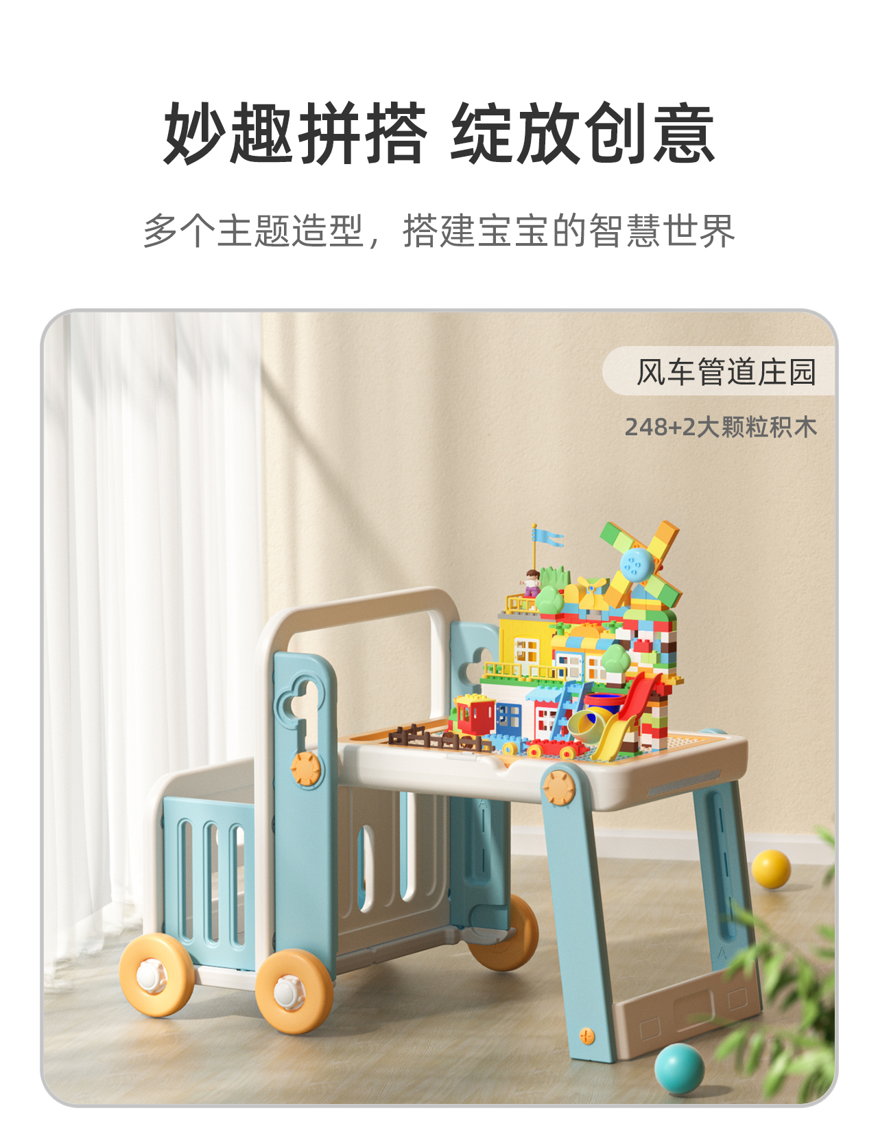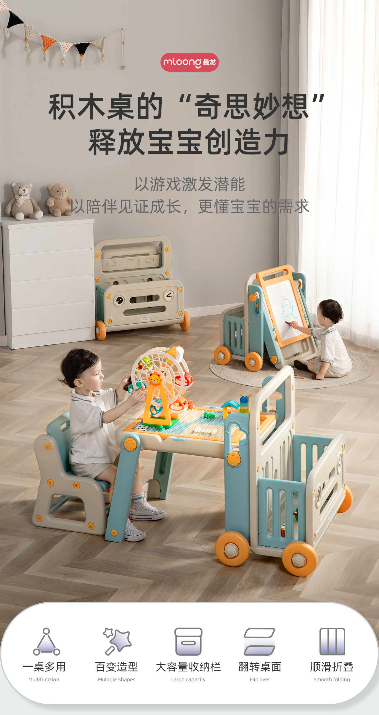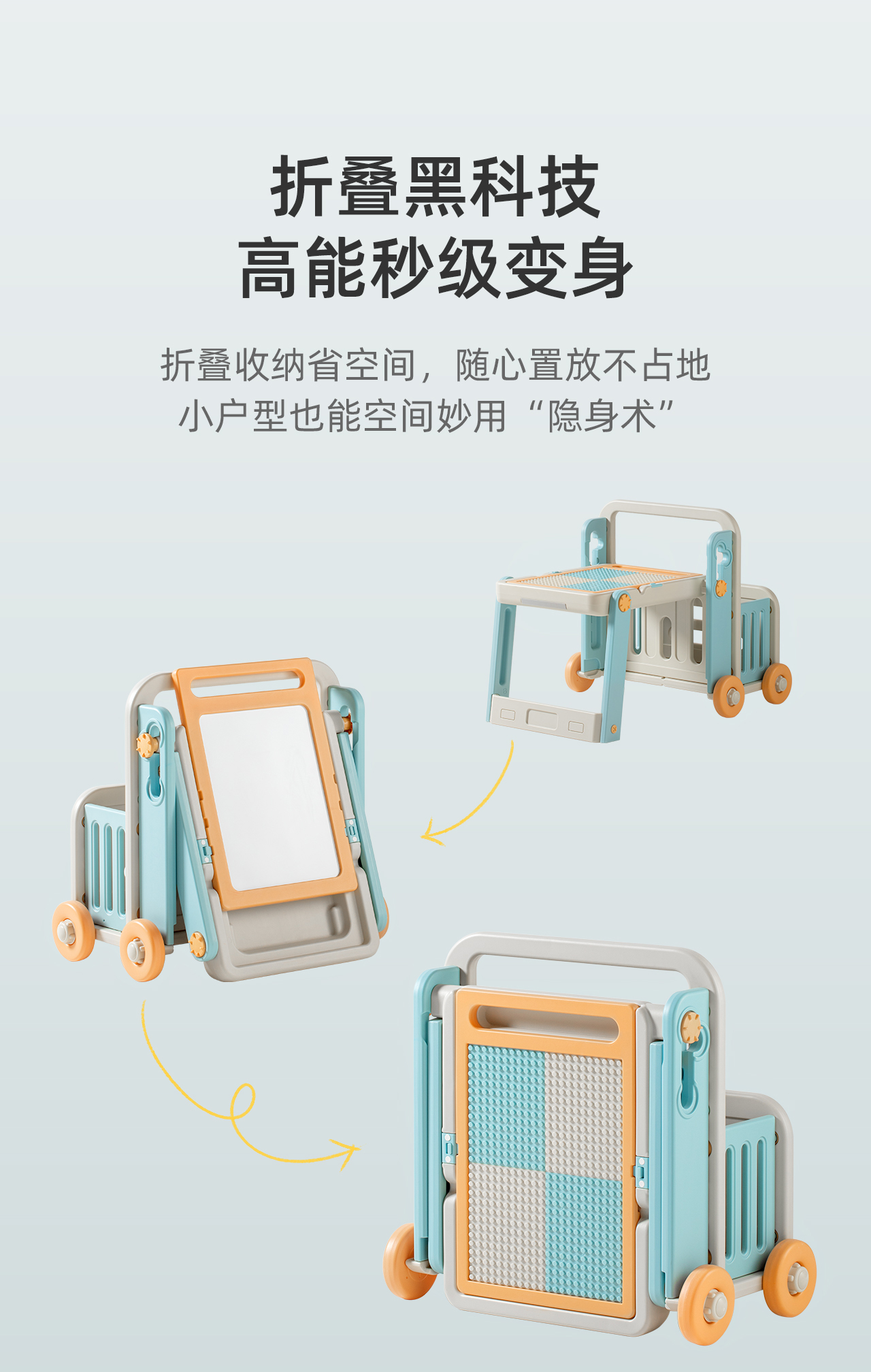 曼龙儿童多功能积木桌可折叠画板男孩大颗粒拼装玩具益智宝宝女孩