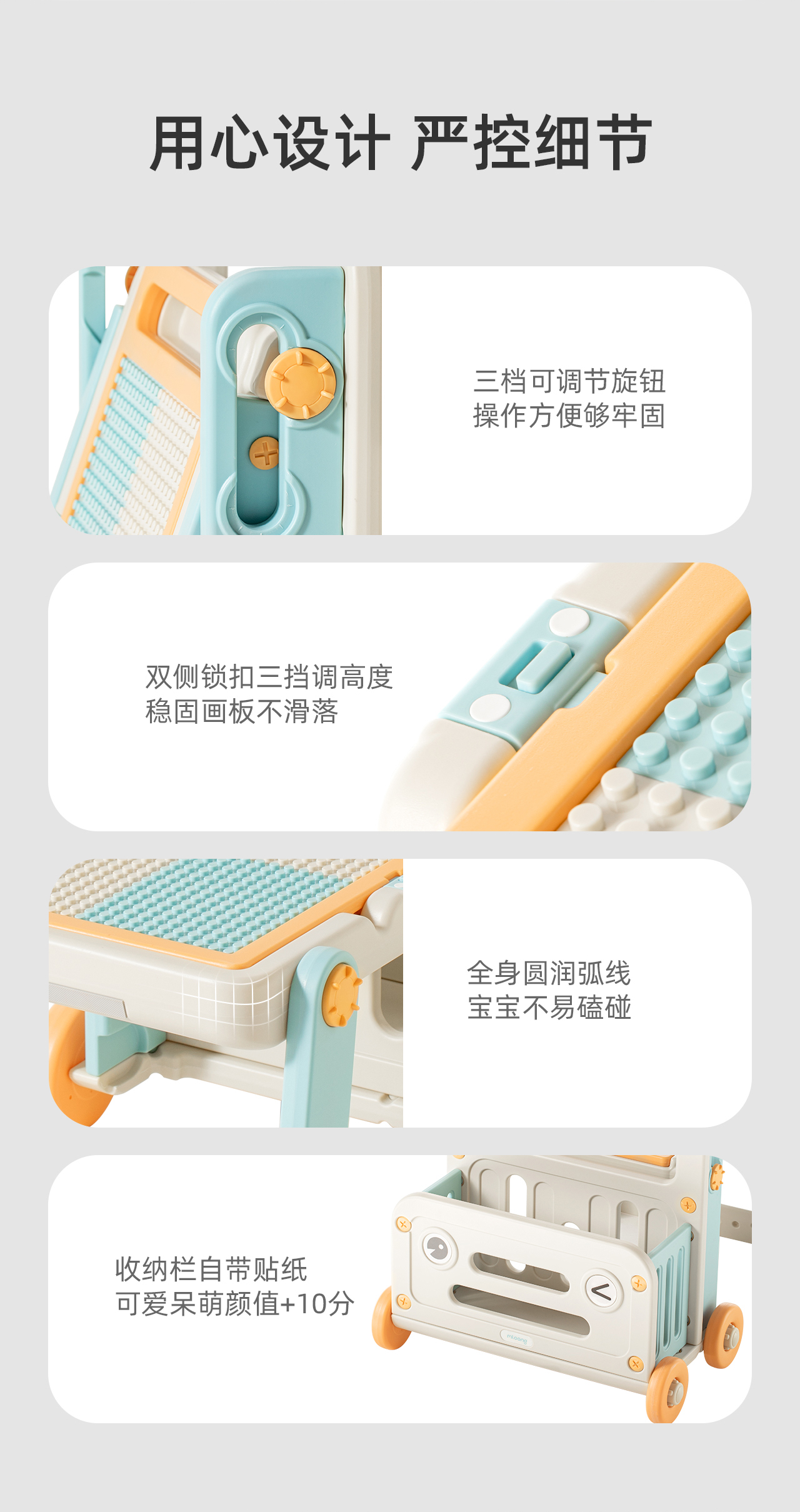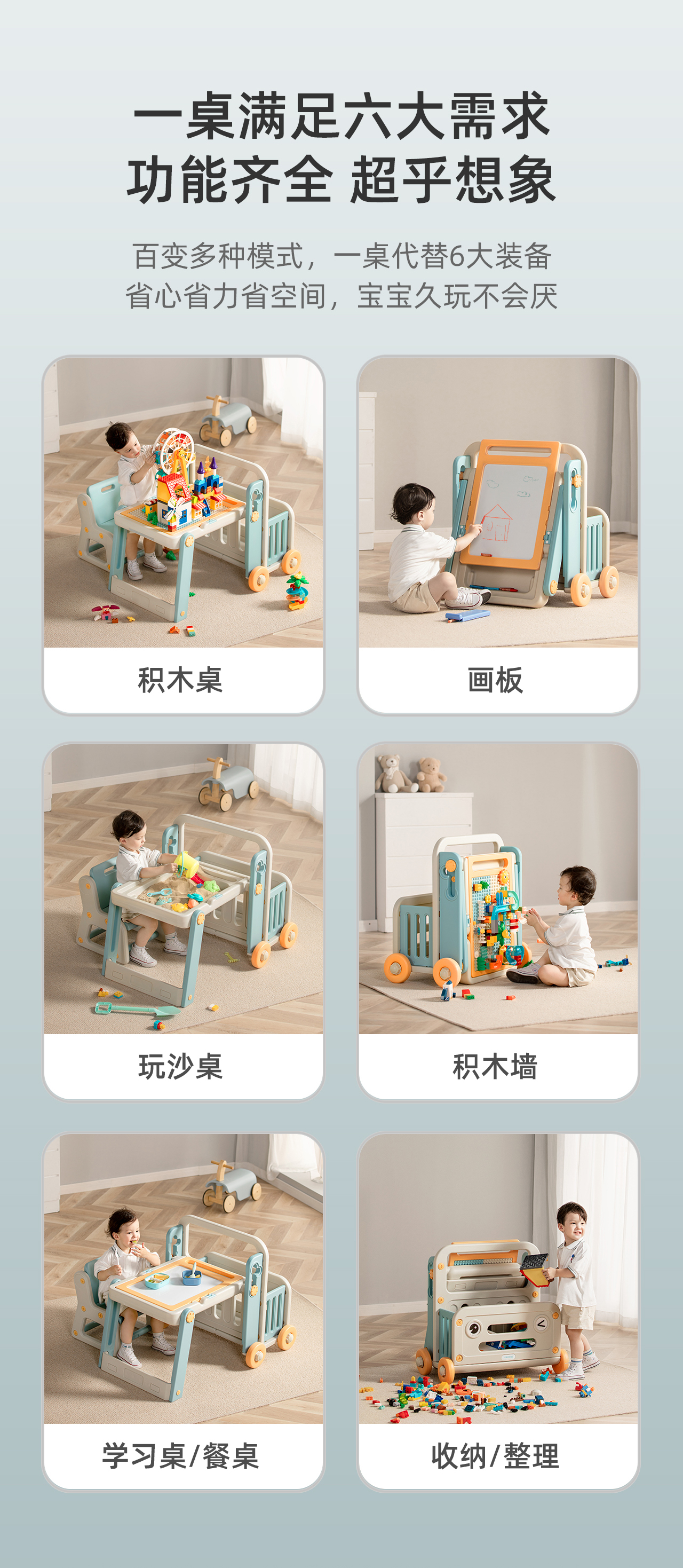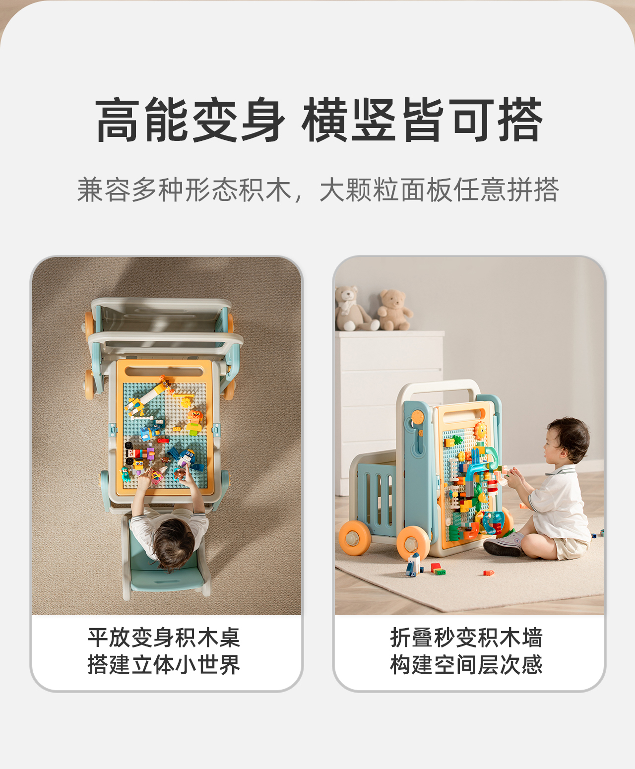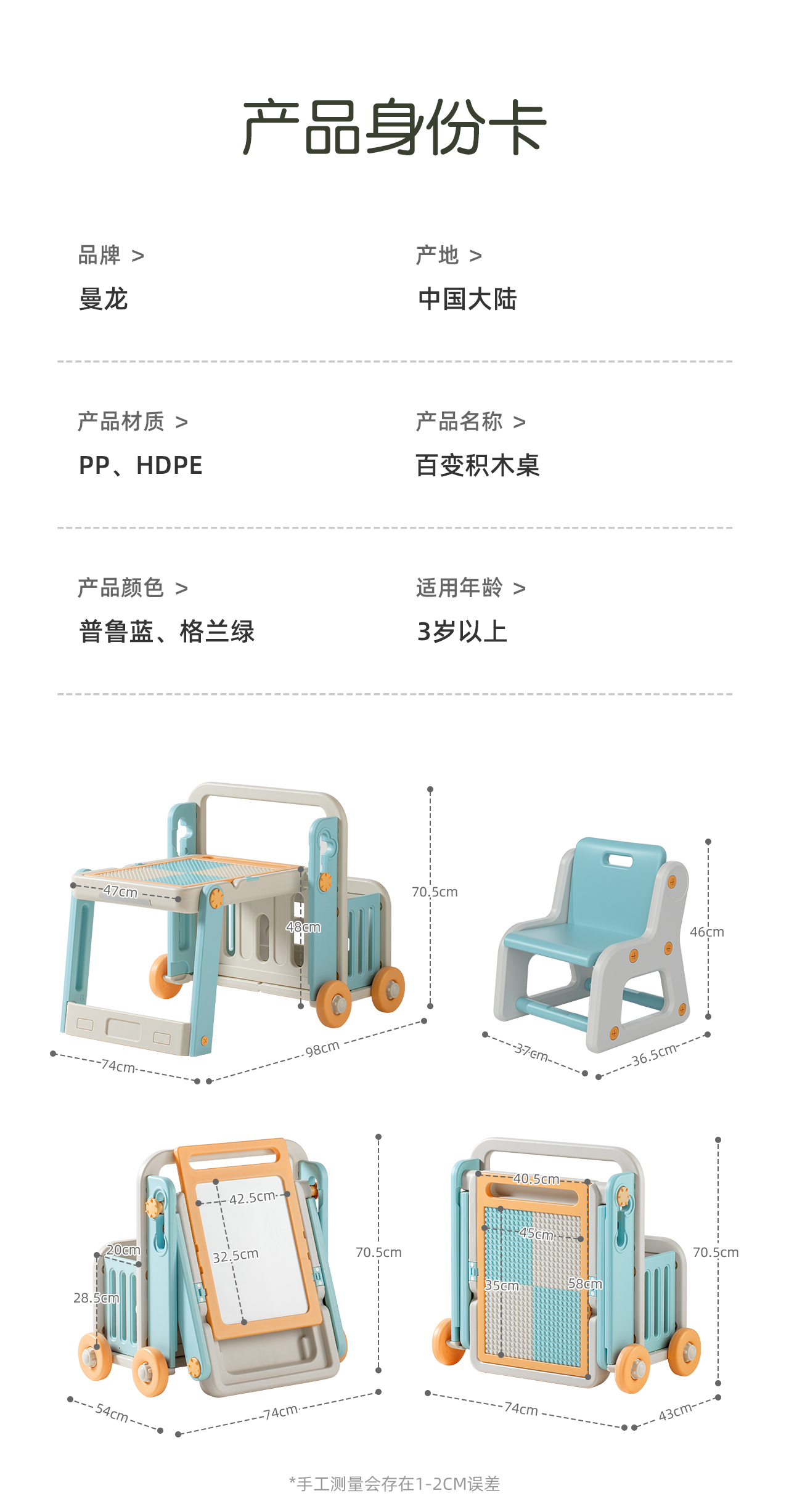 曼龙儿童多功能积木桌可折叠画板男孩大颗粒拼装玩具益智宝宝女孩