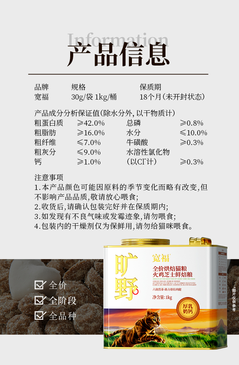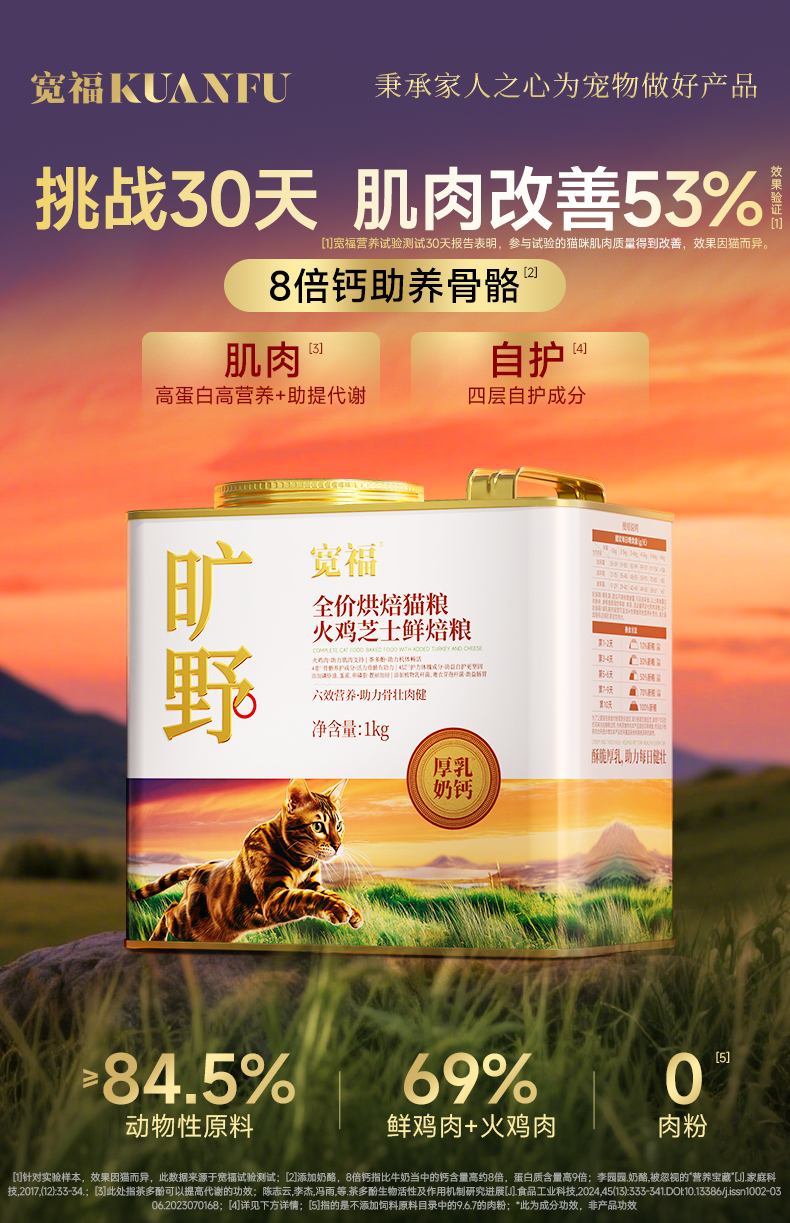 新品【旷野-火鸡芝士鲜焙猫粮】四重骨骼养护成分 30天强健猫咪肌肉养护骨骼健康 三维美毛营养素 滋养流光绸缎毛
