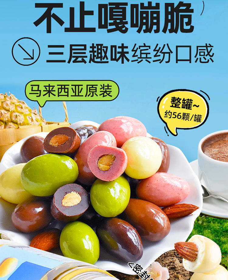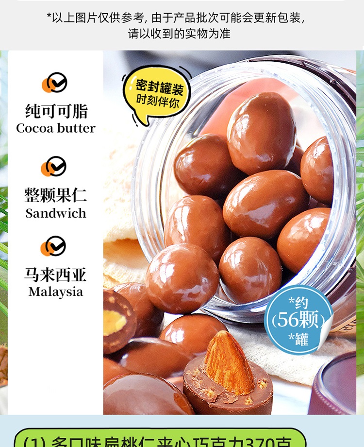 马来西亚 倍乐思扁桃仁夹心牛奶巧克力 380g