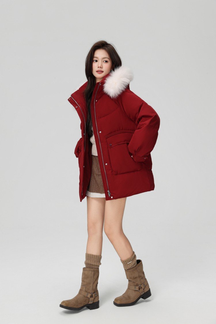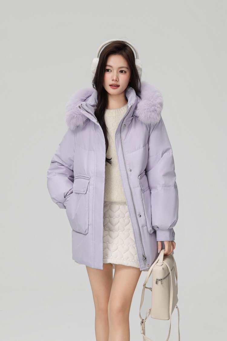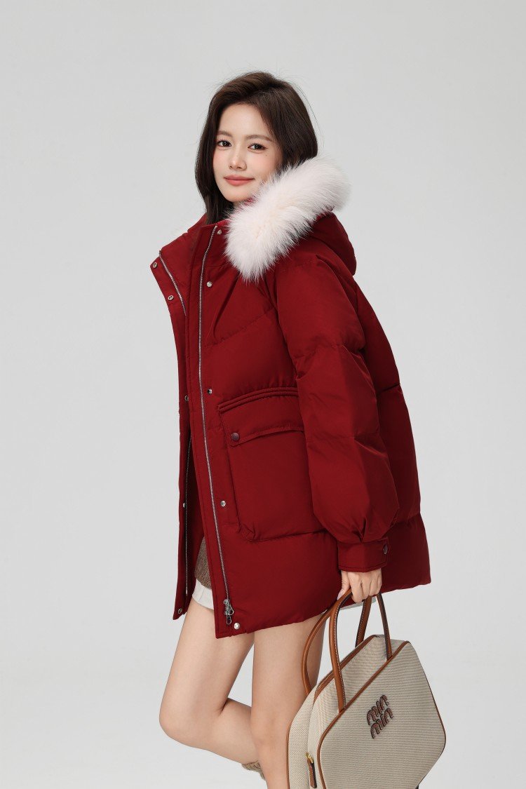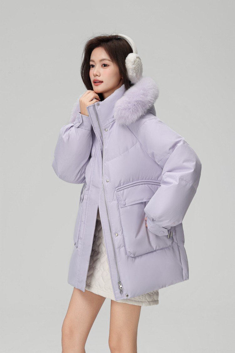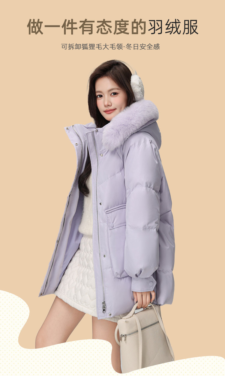 90%白鸭绒,高颜值色彩,“羽”众不同的温暖呵护,短款狐狸毛领脱卸帽休闲时尚大口袋羽绒服818【个调羽绒服专场】