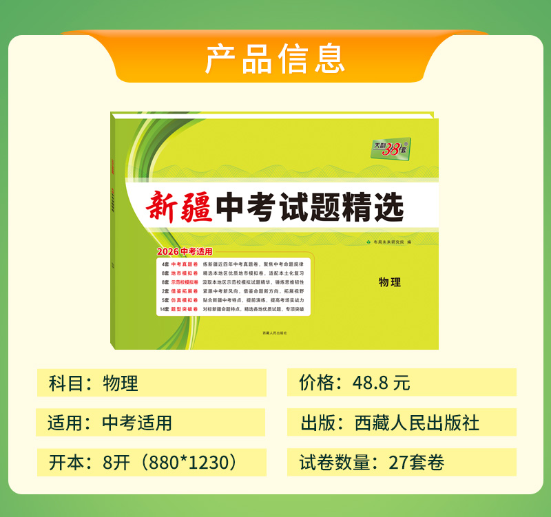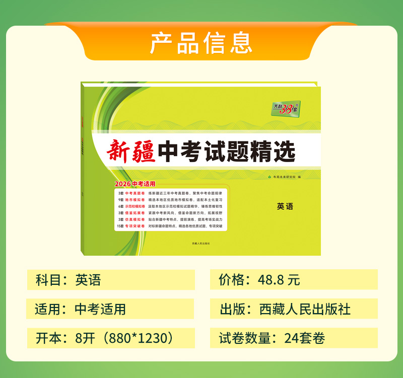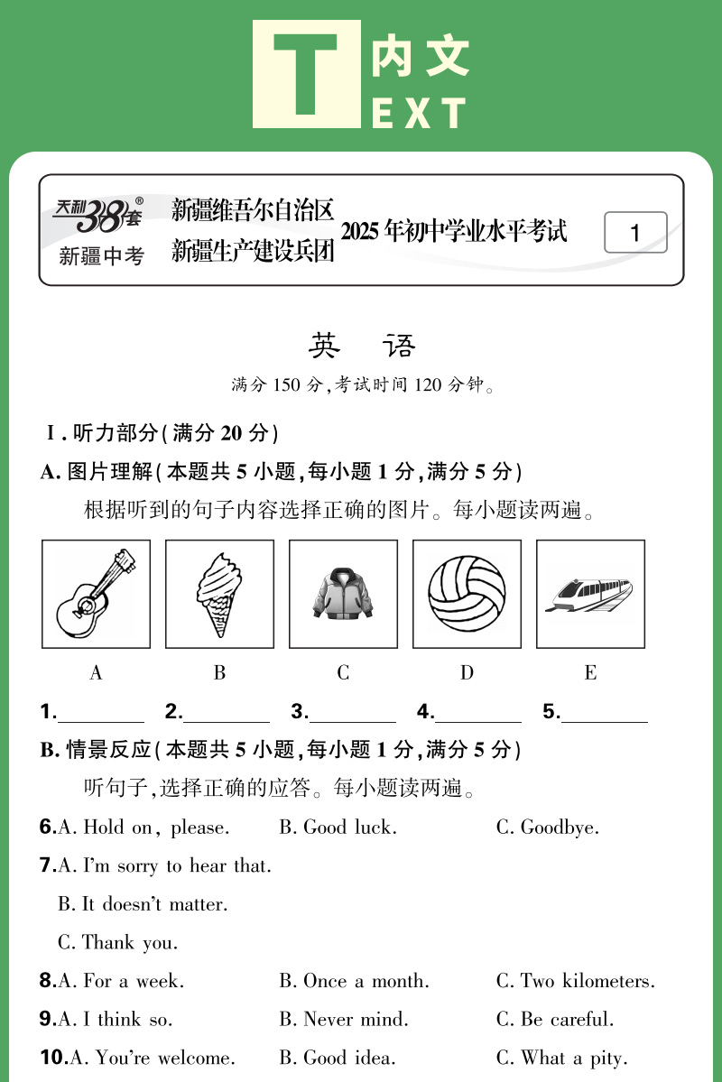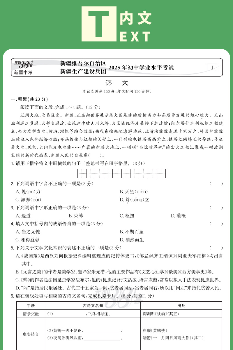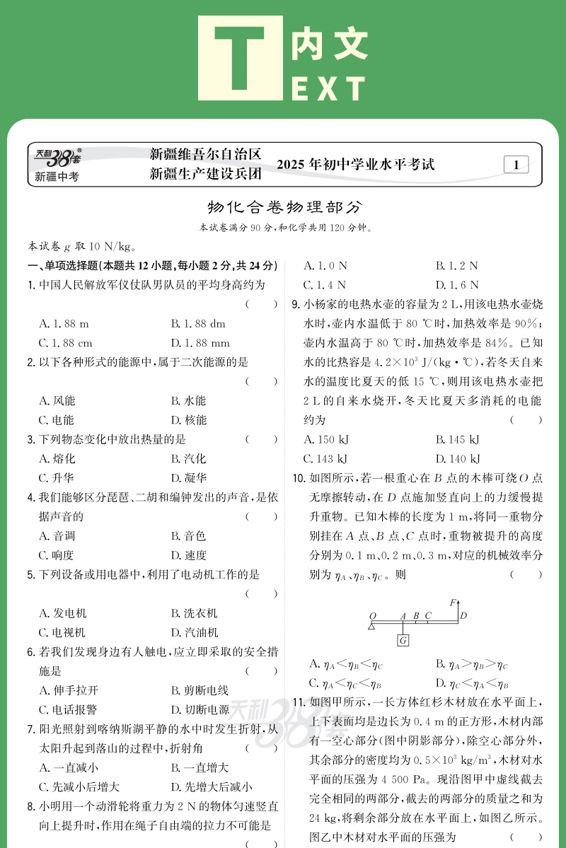 天利38套 2026新疆中考试题精选 语文 数学 英语 物理 化学 历史 道德与法治