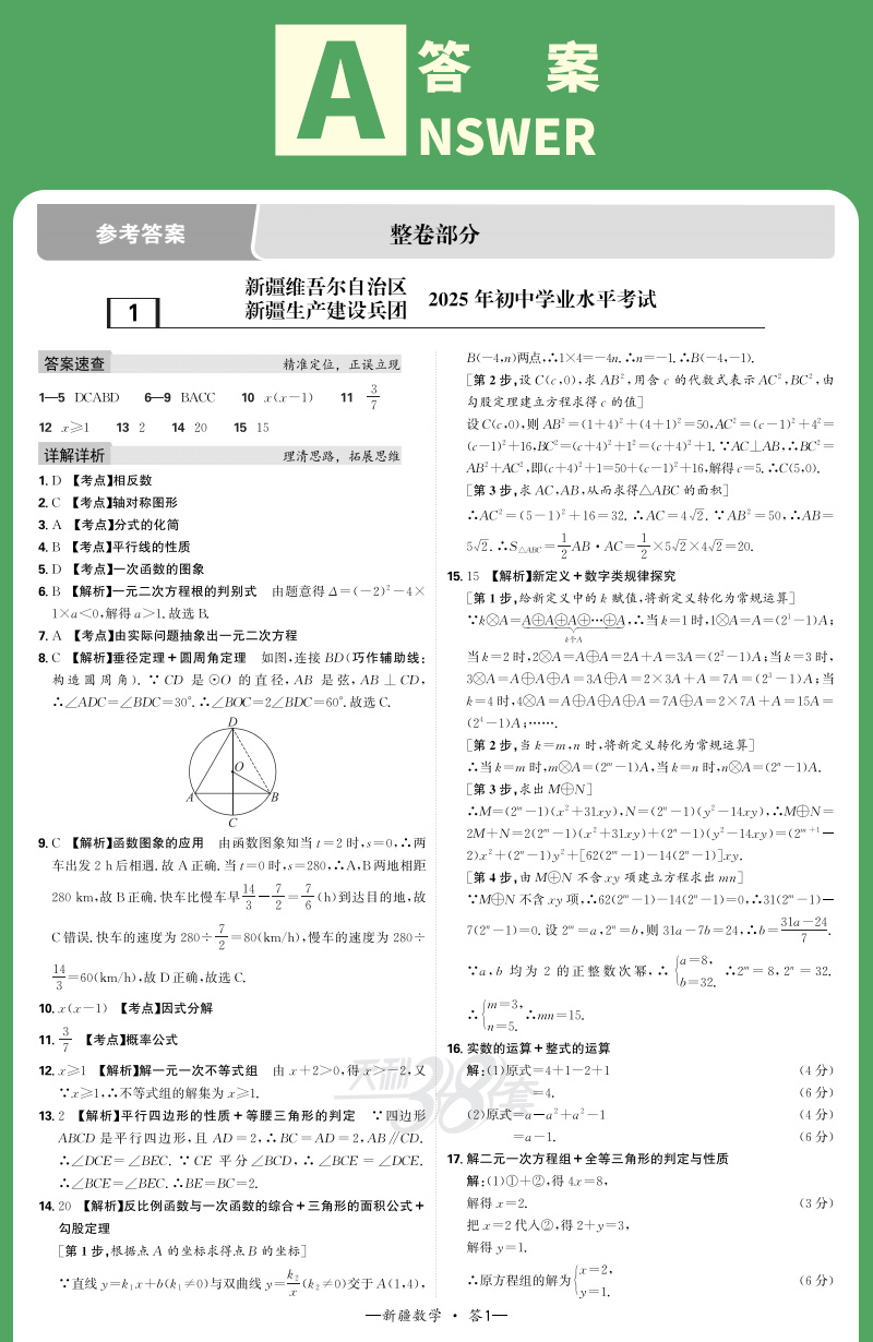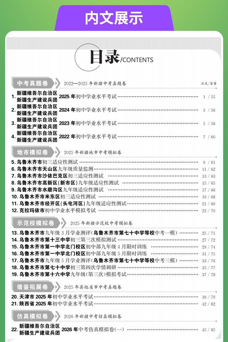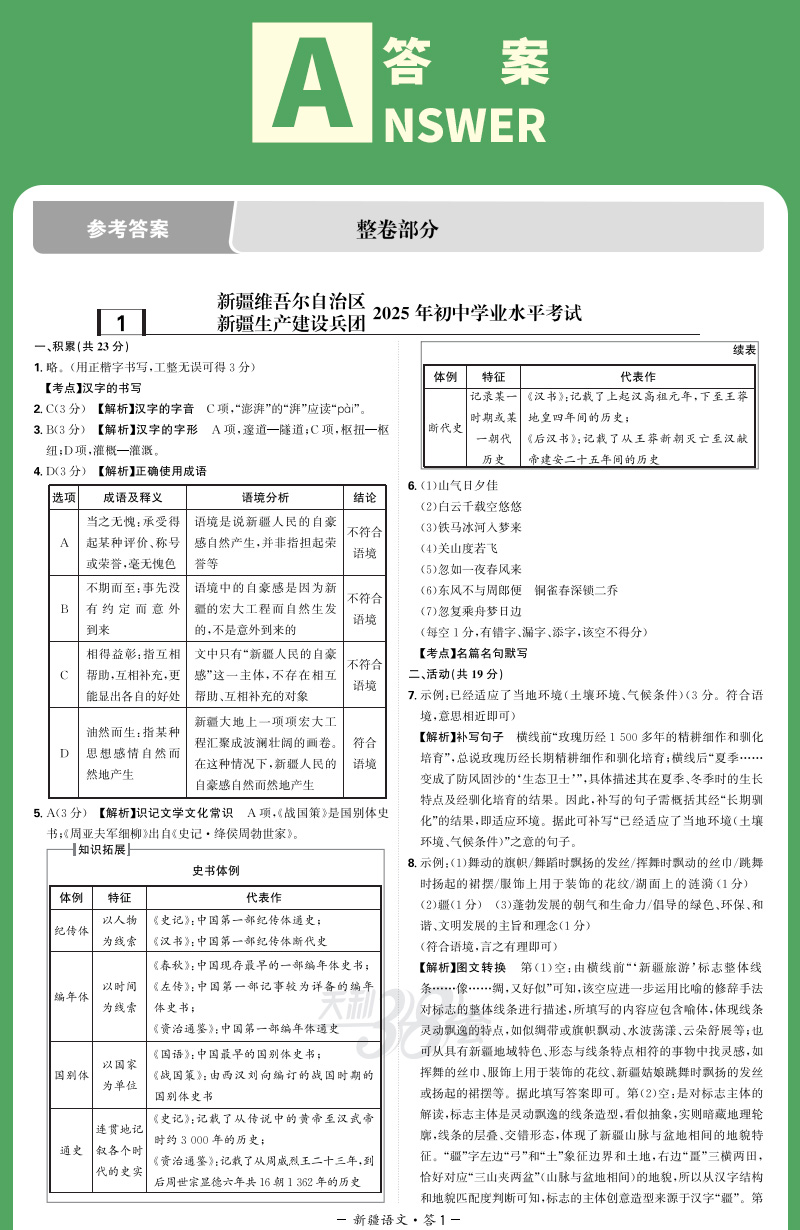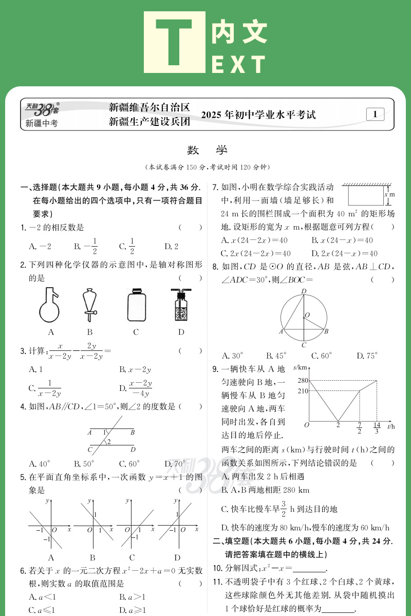 天利38套 2026新疆中考试题精选 语文 数学 英语 物理 化学 历史 道德与法治