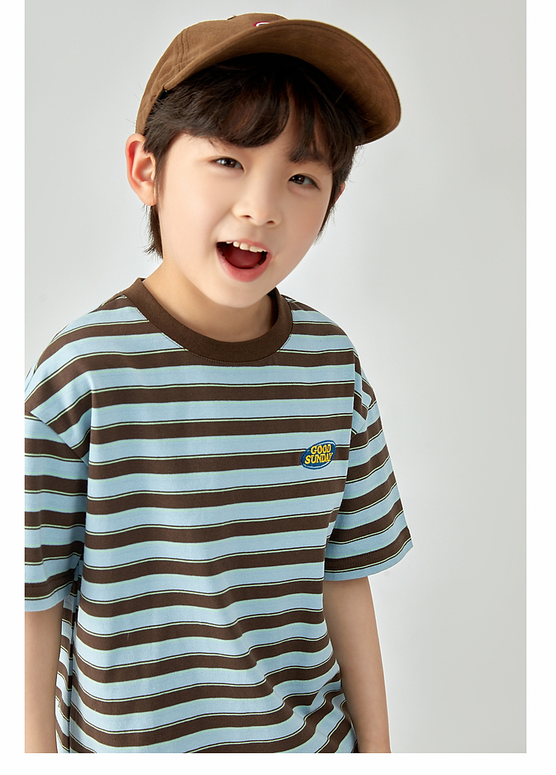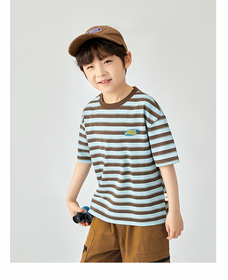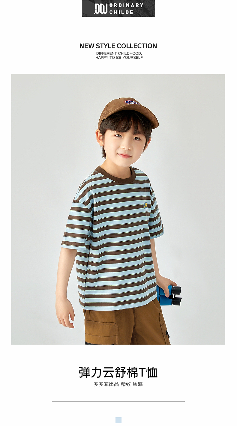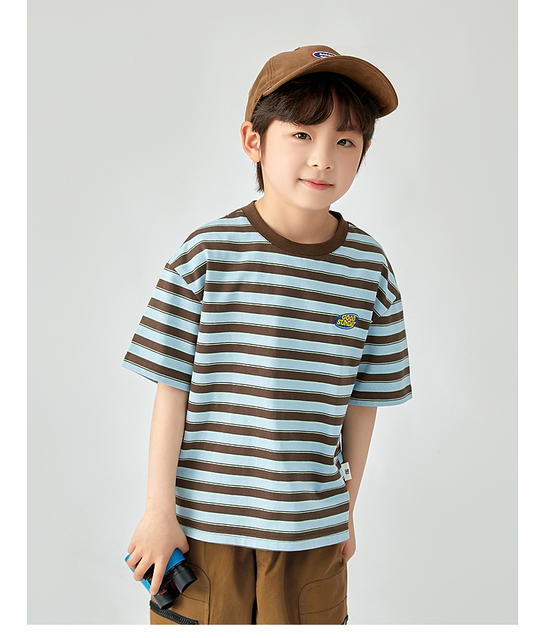 【团购价53】多多家 男童短袖T恤2024夏装新款儿童中大童撞色条纹男孩半袖上衣9530