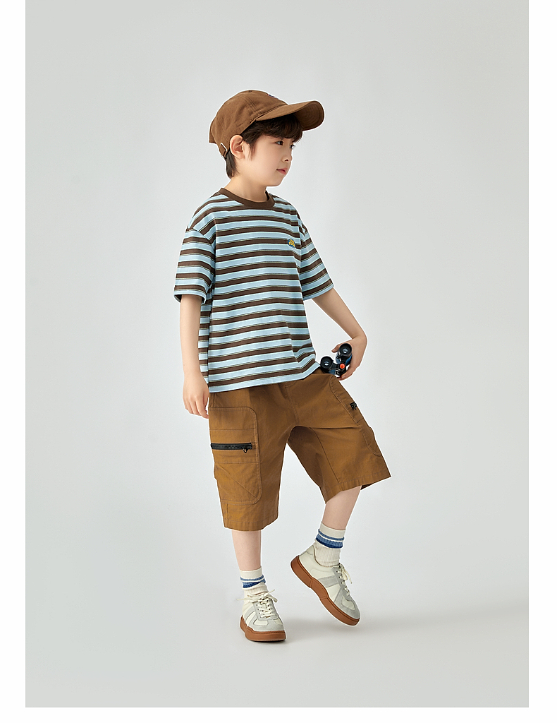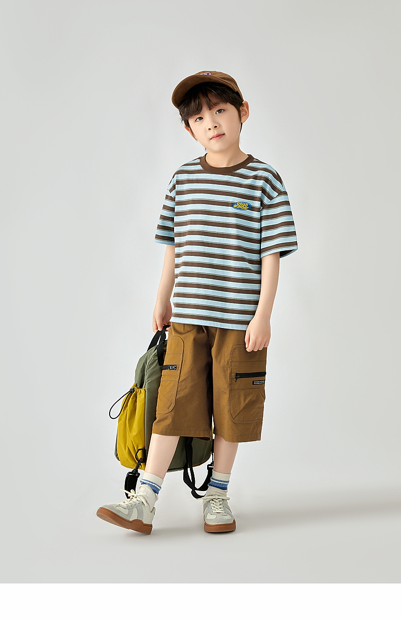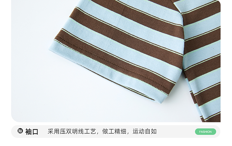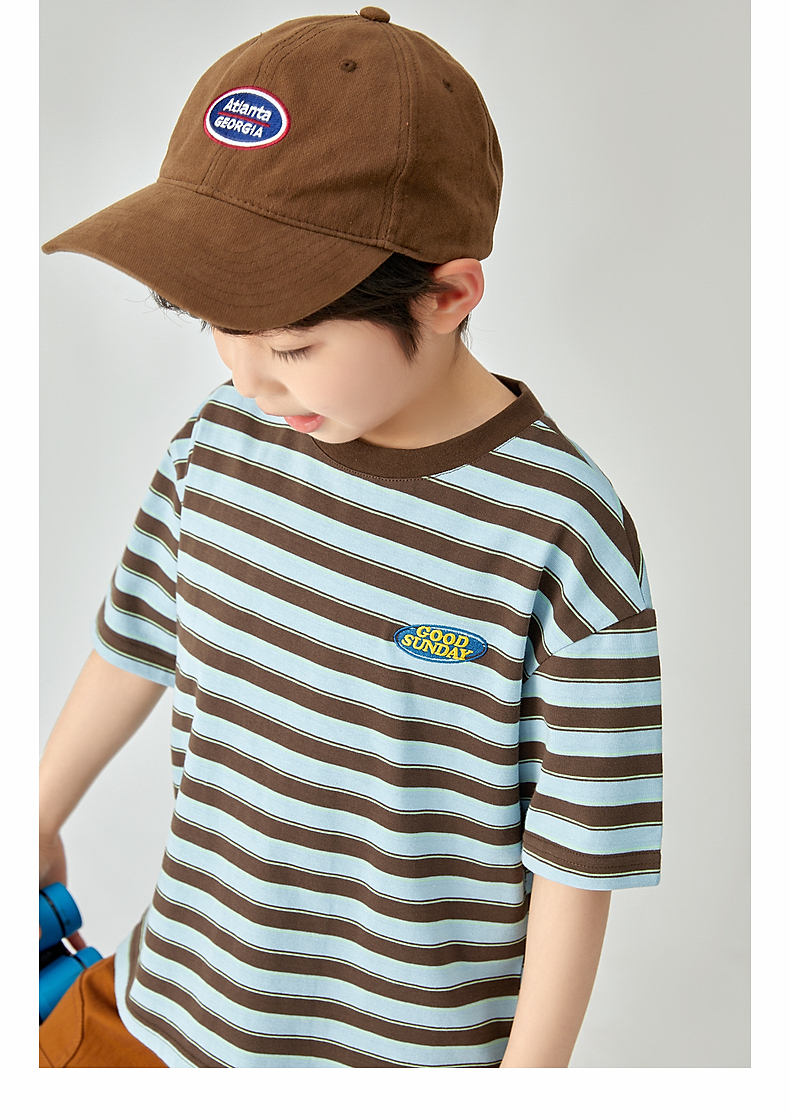 【团购价53】多多家 男童短袖T恤2024夏装新款儿童中大童撞色条纹男孩半袖上衣9530