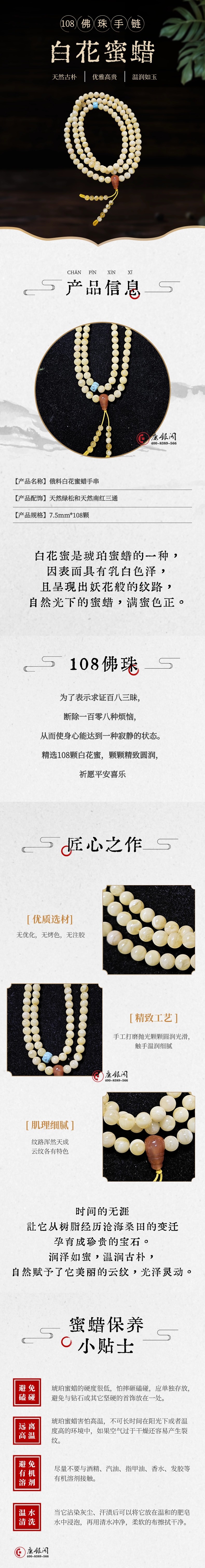 正宗俄罗斯白花蜜蜡手串108颗 天然琥珀手链 佛珠念珠