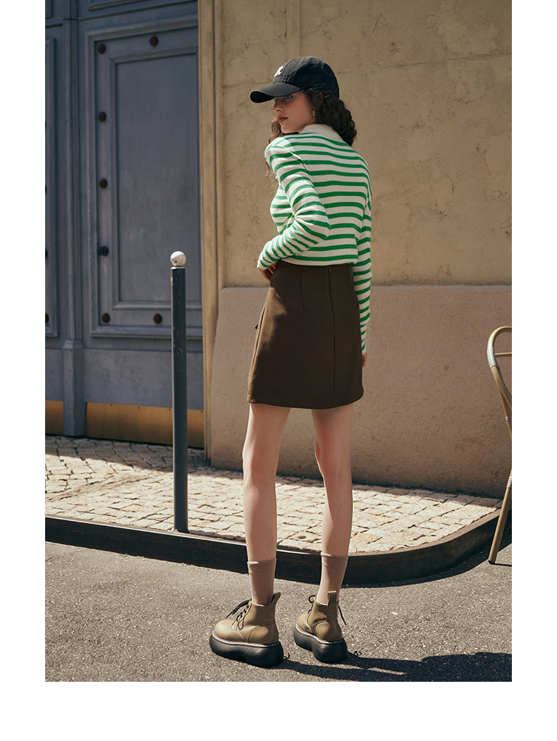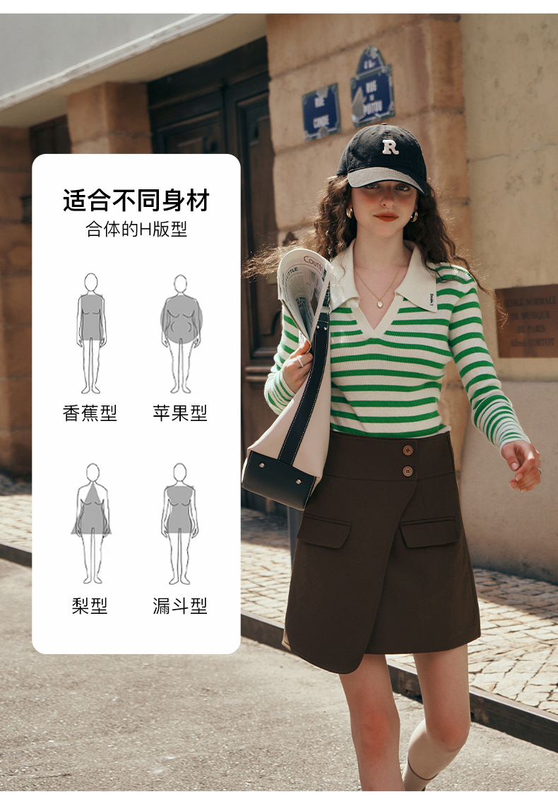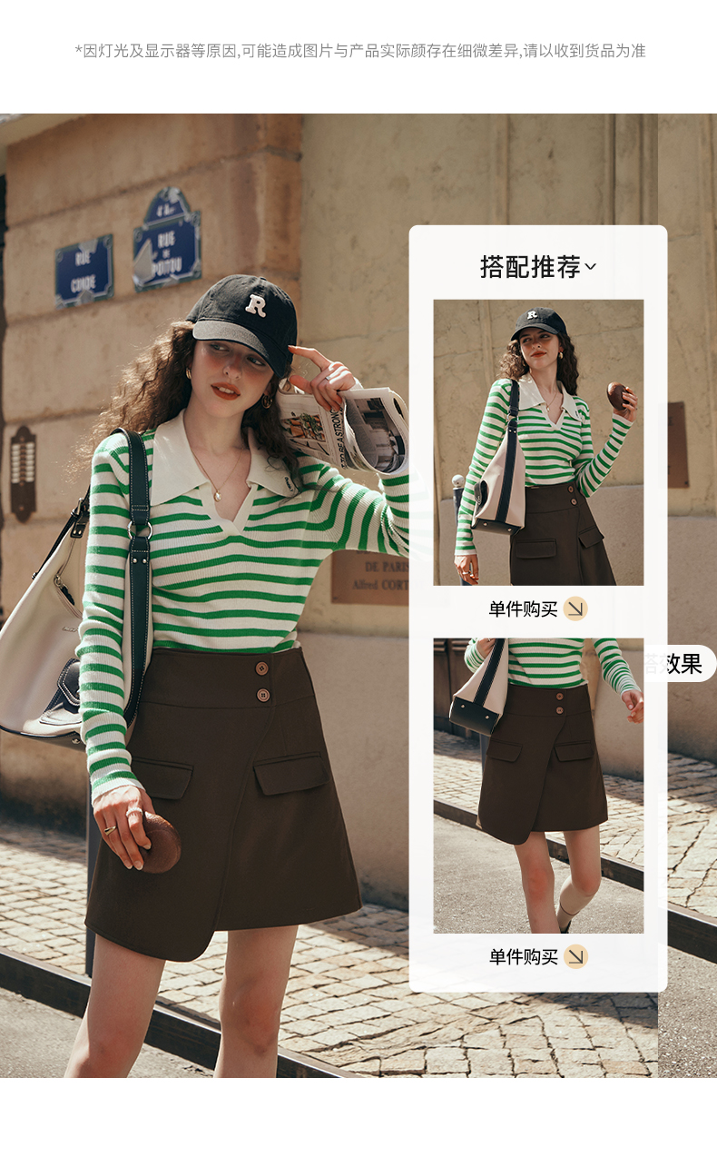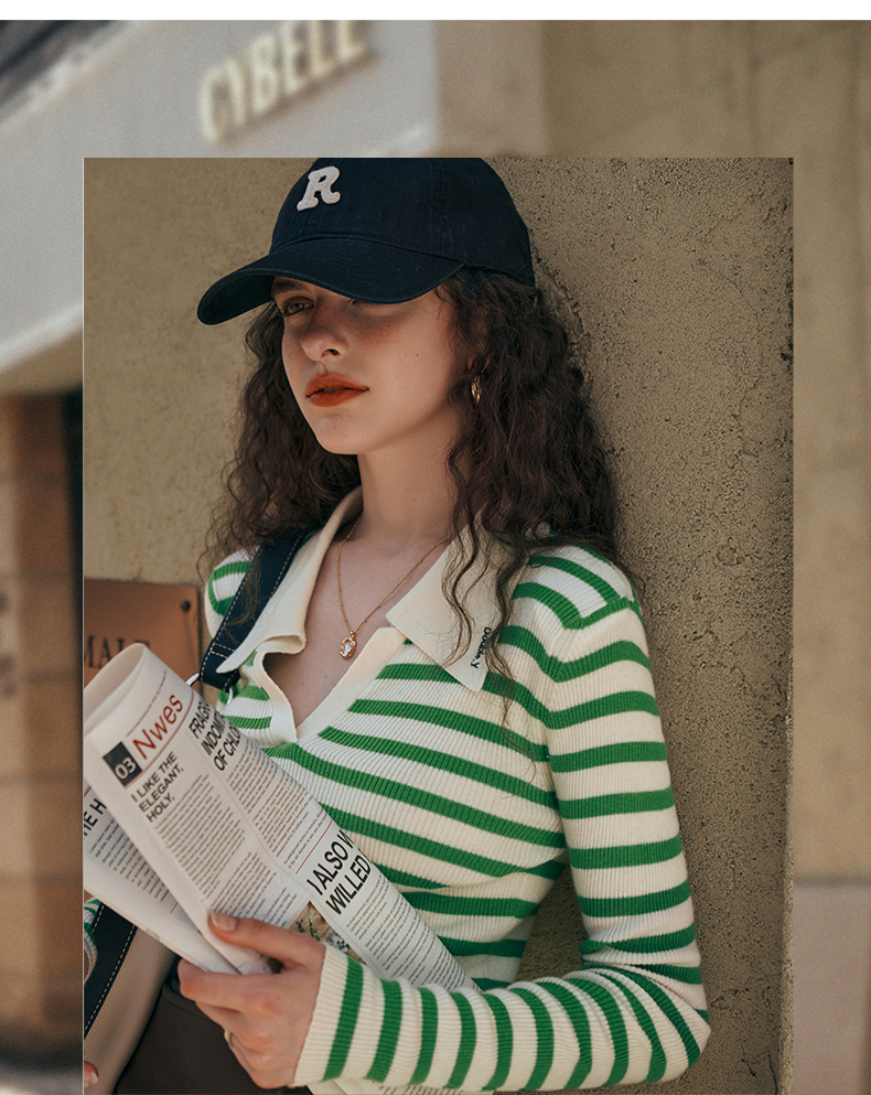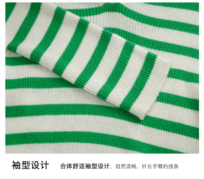 OLrain欧芮儿Polo领条纹毛衣女秋季2025年新款宽松撞色刺绣套头衫