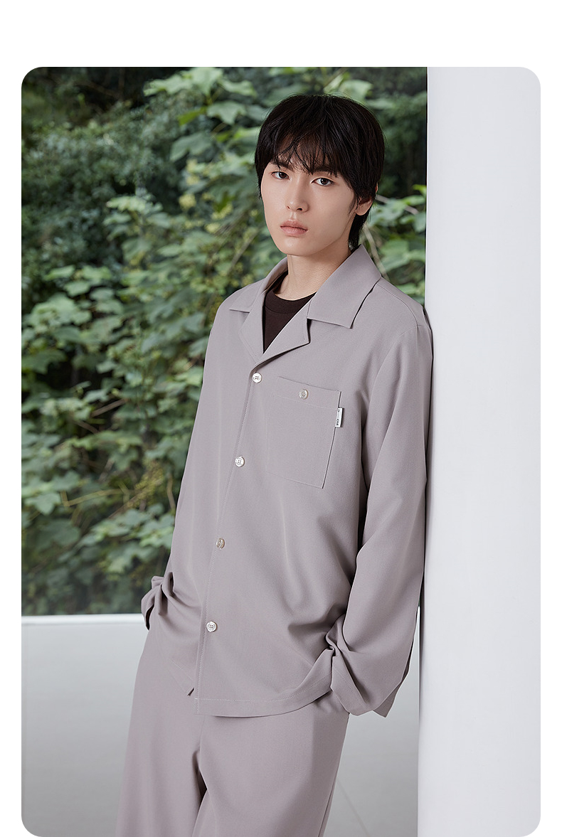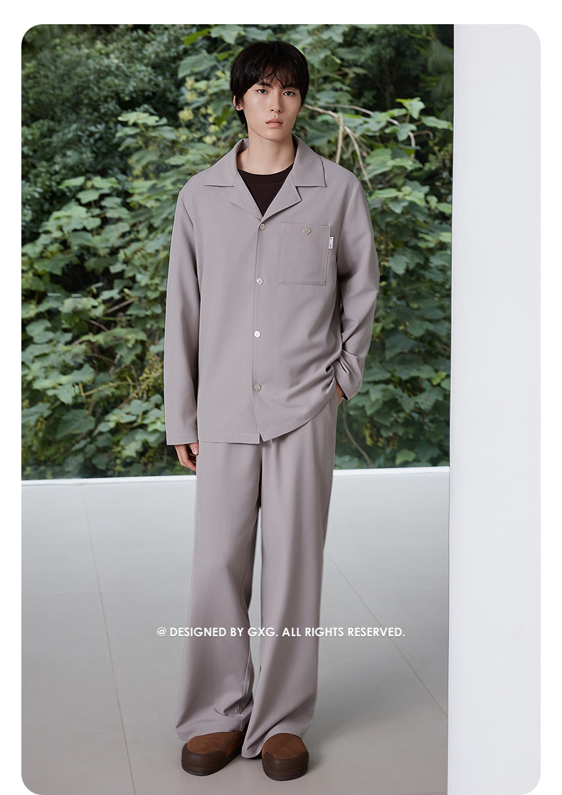 GXG男士家居服 垂感纯色亲肤长袖睡衣男柔滑宽松有型睡衣套装