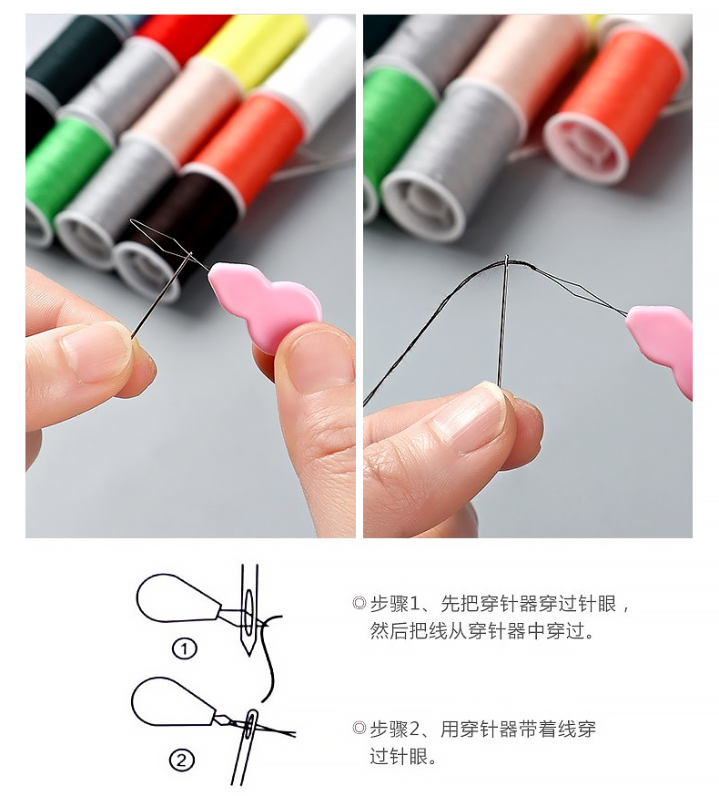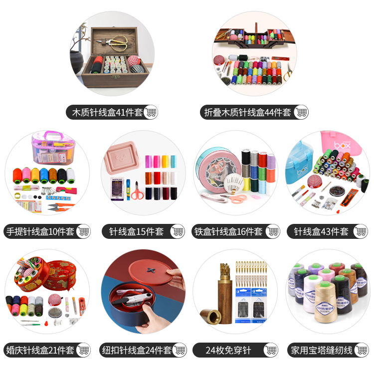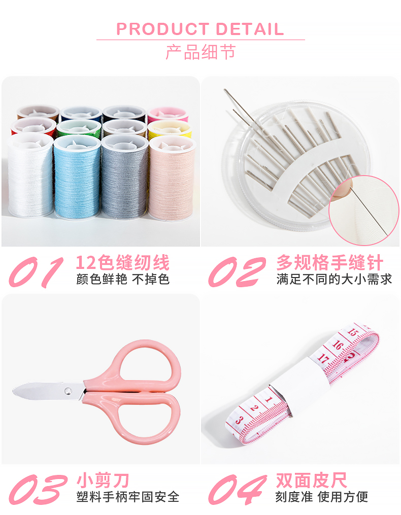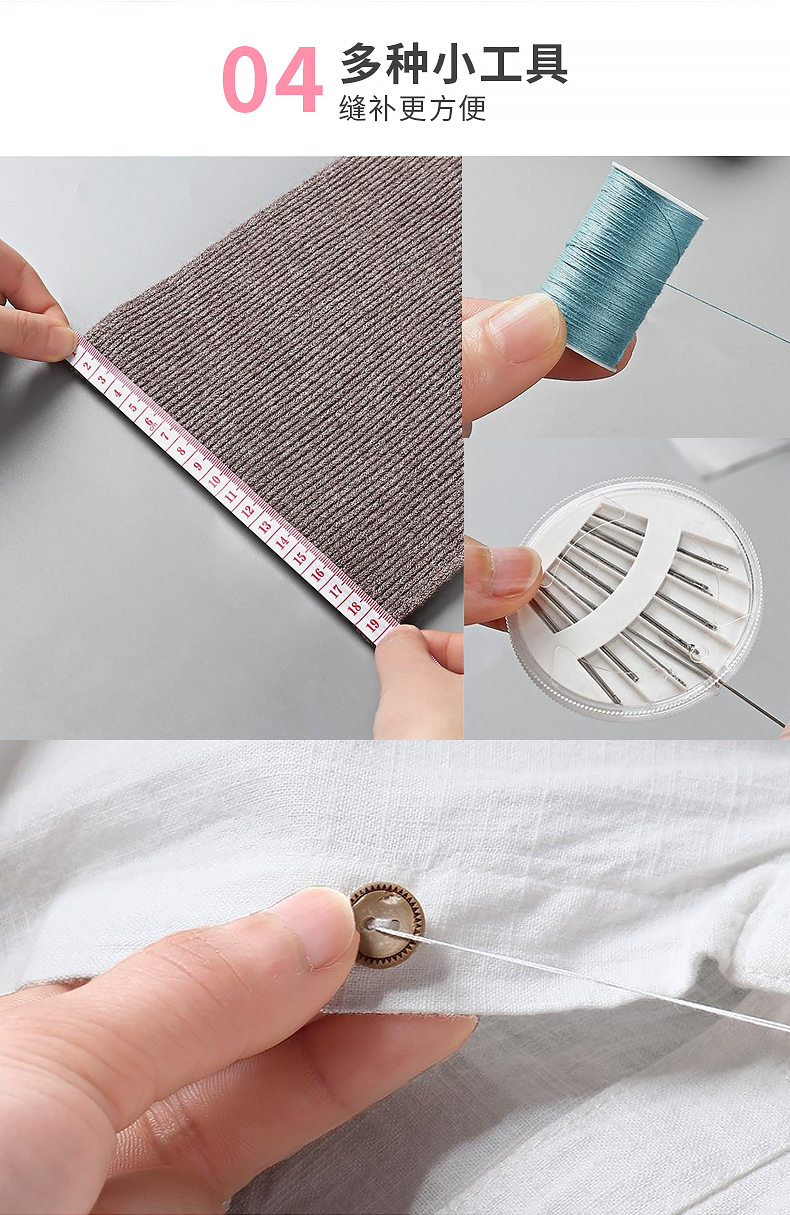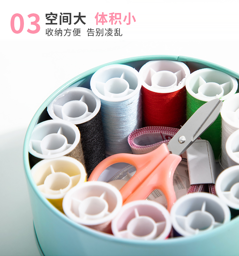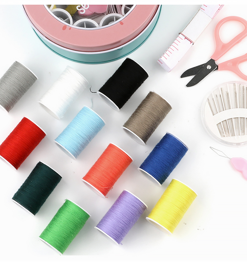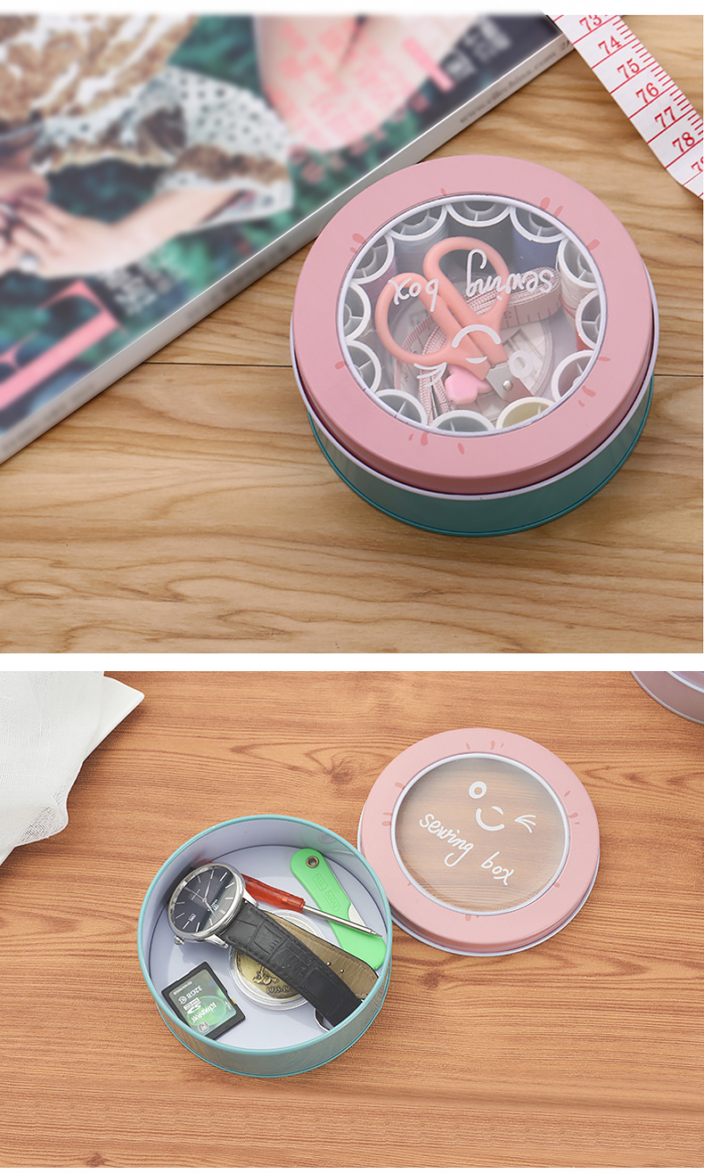 班哲尼 针线盒套装 旅游用品多用途旅行便携缝纫缝补工具套装收纳包圆形开窗缤纷铁盒针线盒 粉色16件套