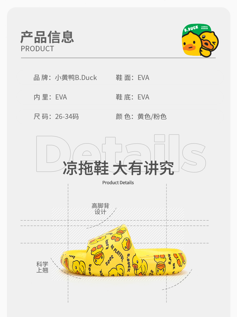 【专柜同款精品】BP2311563 B.Duck儿童款亲子拖鞋(26-34)