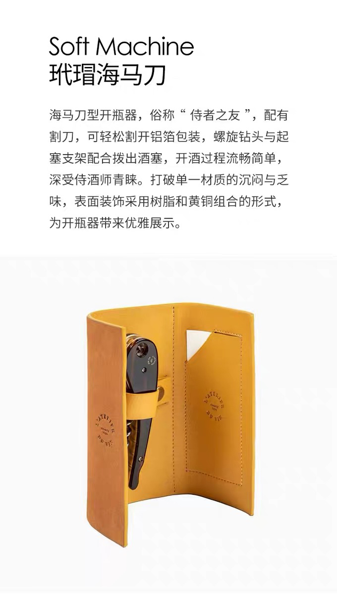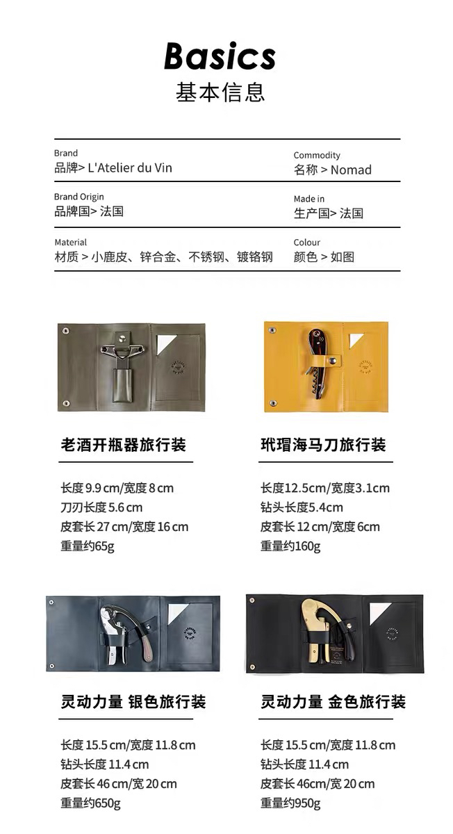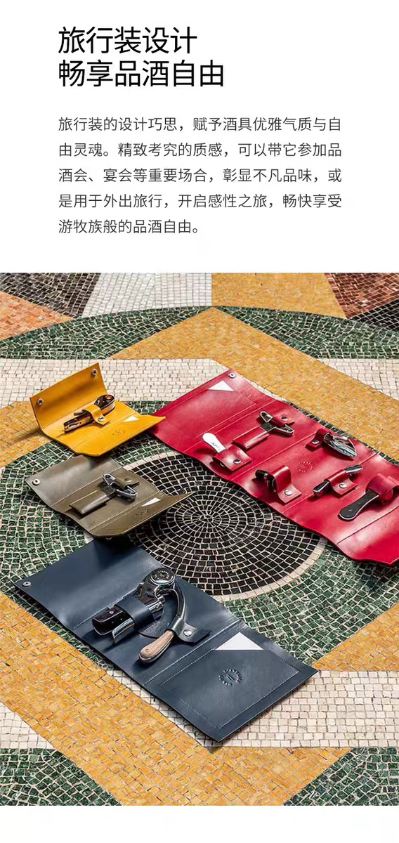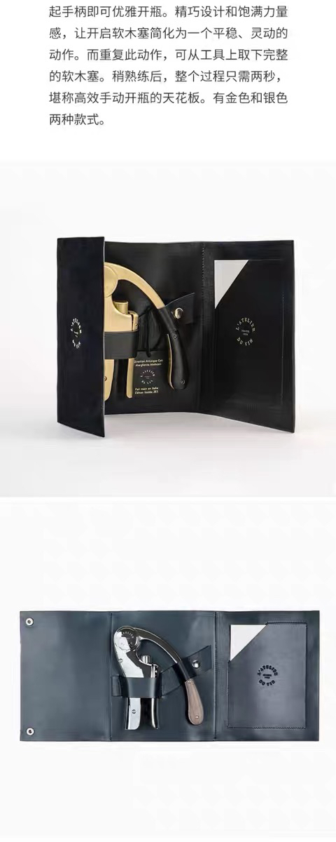 法国L'Atelier du Vin杠杆红酒开瓶器海马刀老酒刀牛皮旅行装