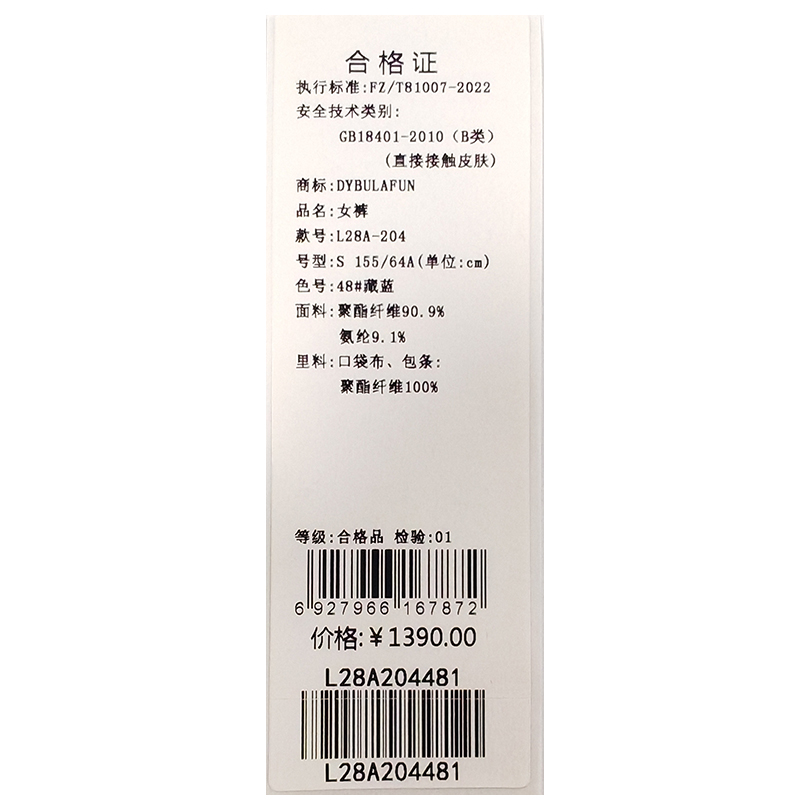 戴布拉芬长裤L28A204