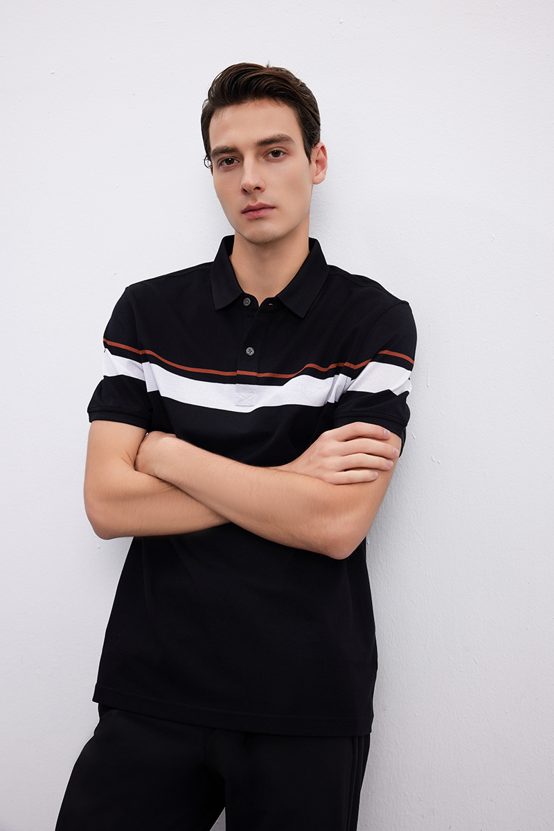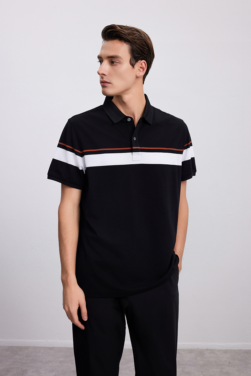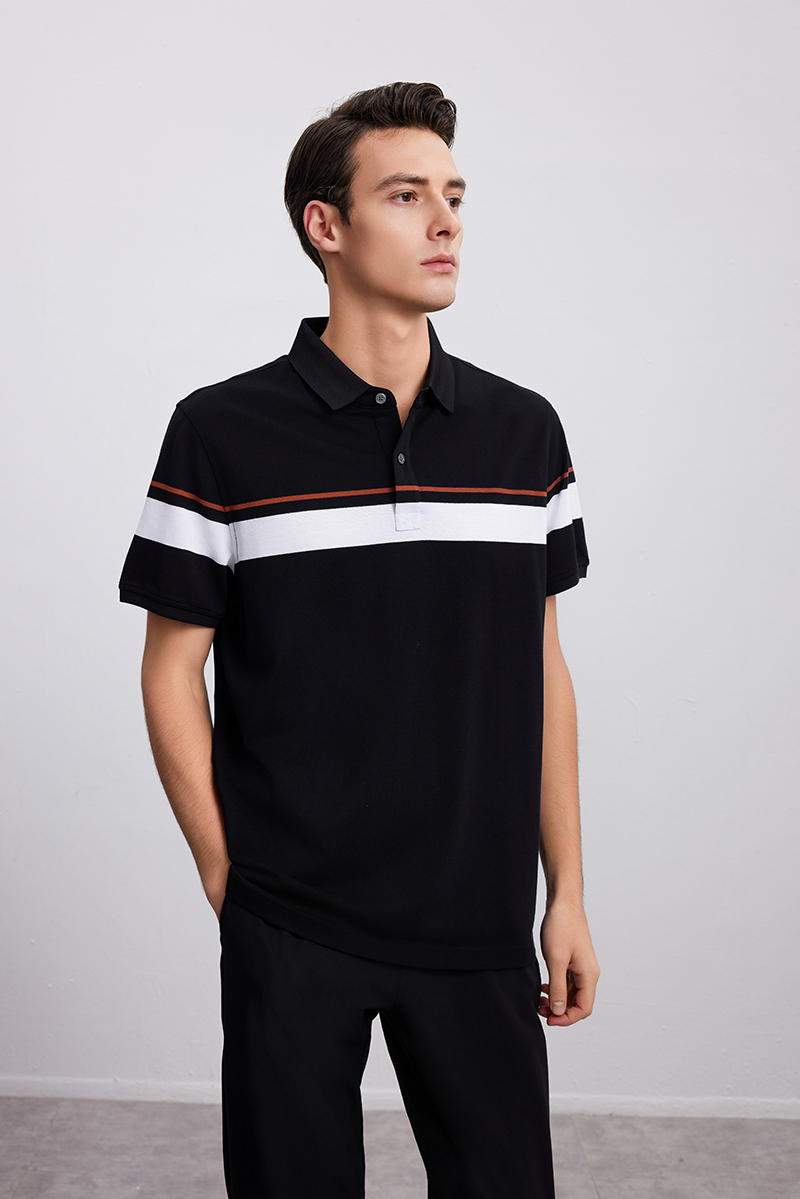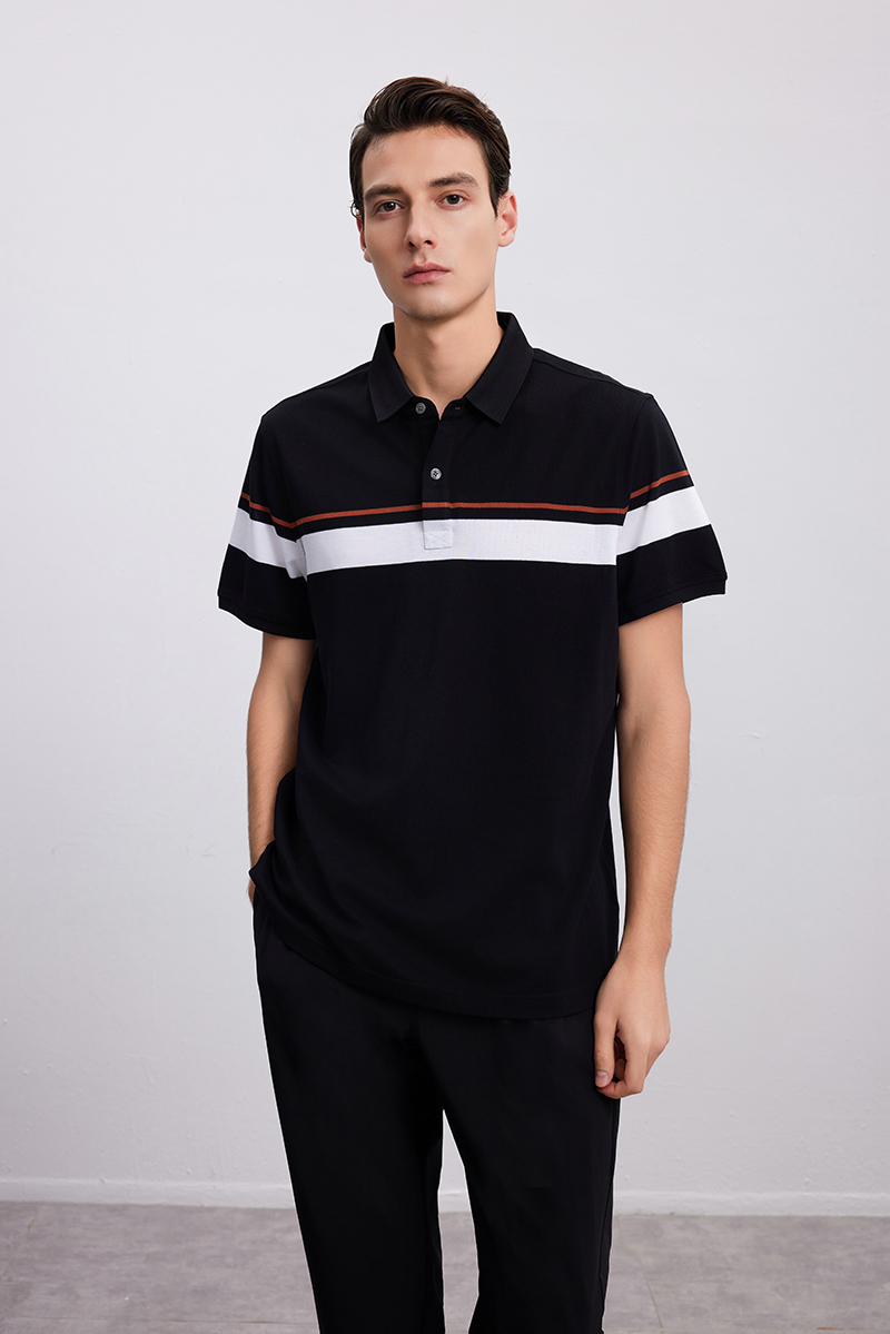 【条纹撞色男士Polo衫】24年春夏新品男士直筒短袖上衣时尚条纹撞色T恤