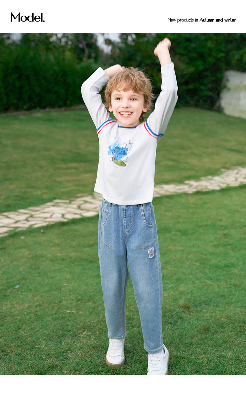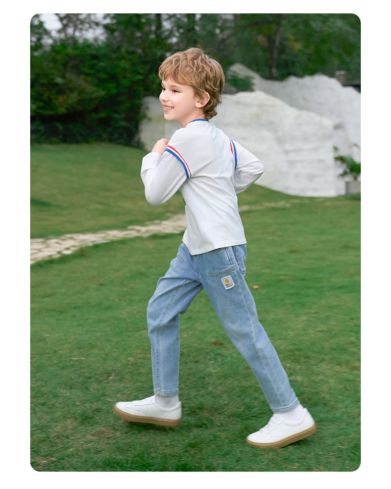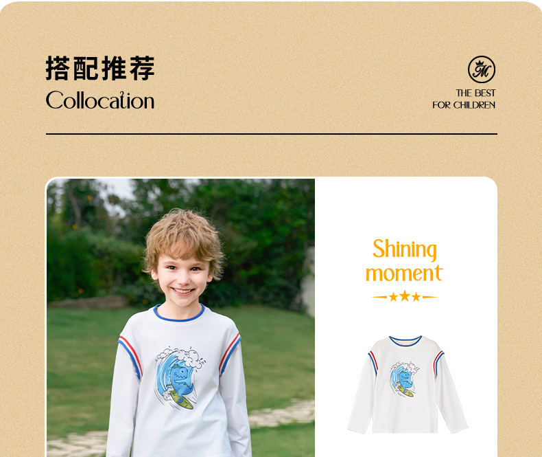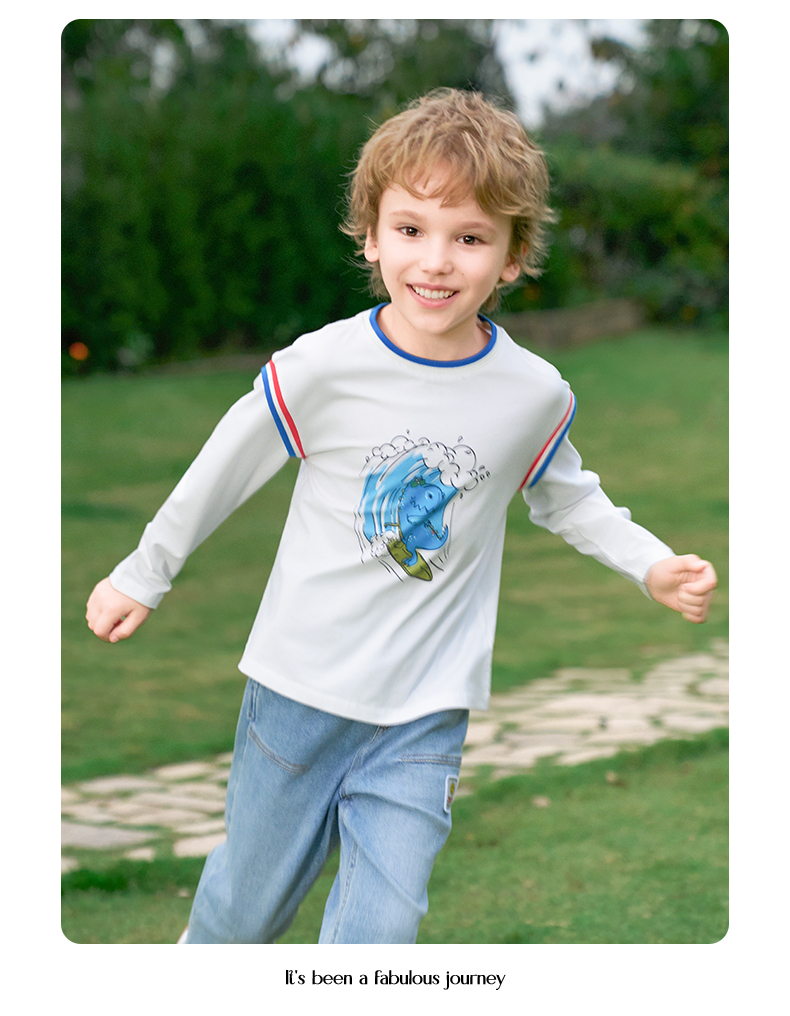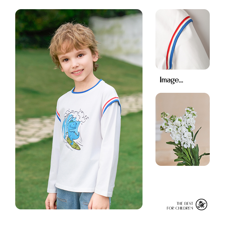 mettekids男童长袖t恤2024新款春秋休闲假两件儿童时尚拼接打底衫