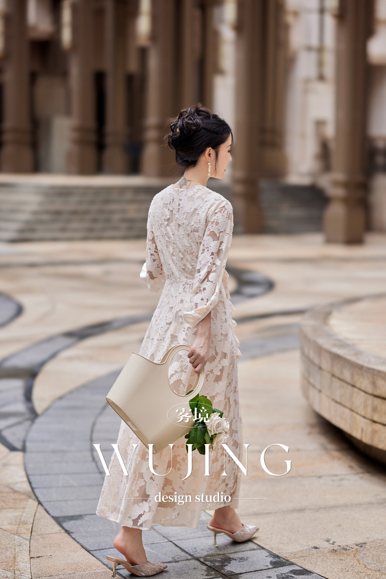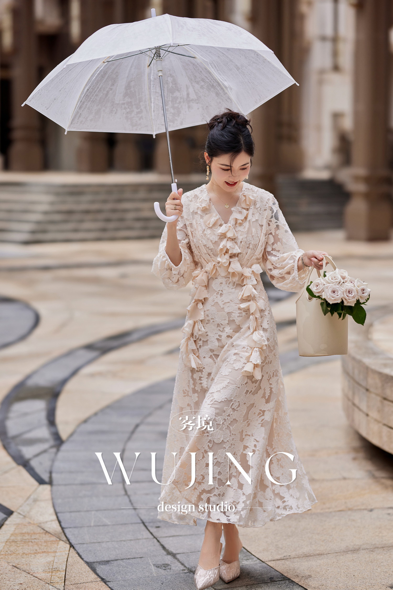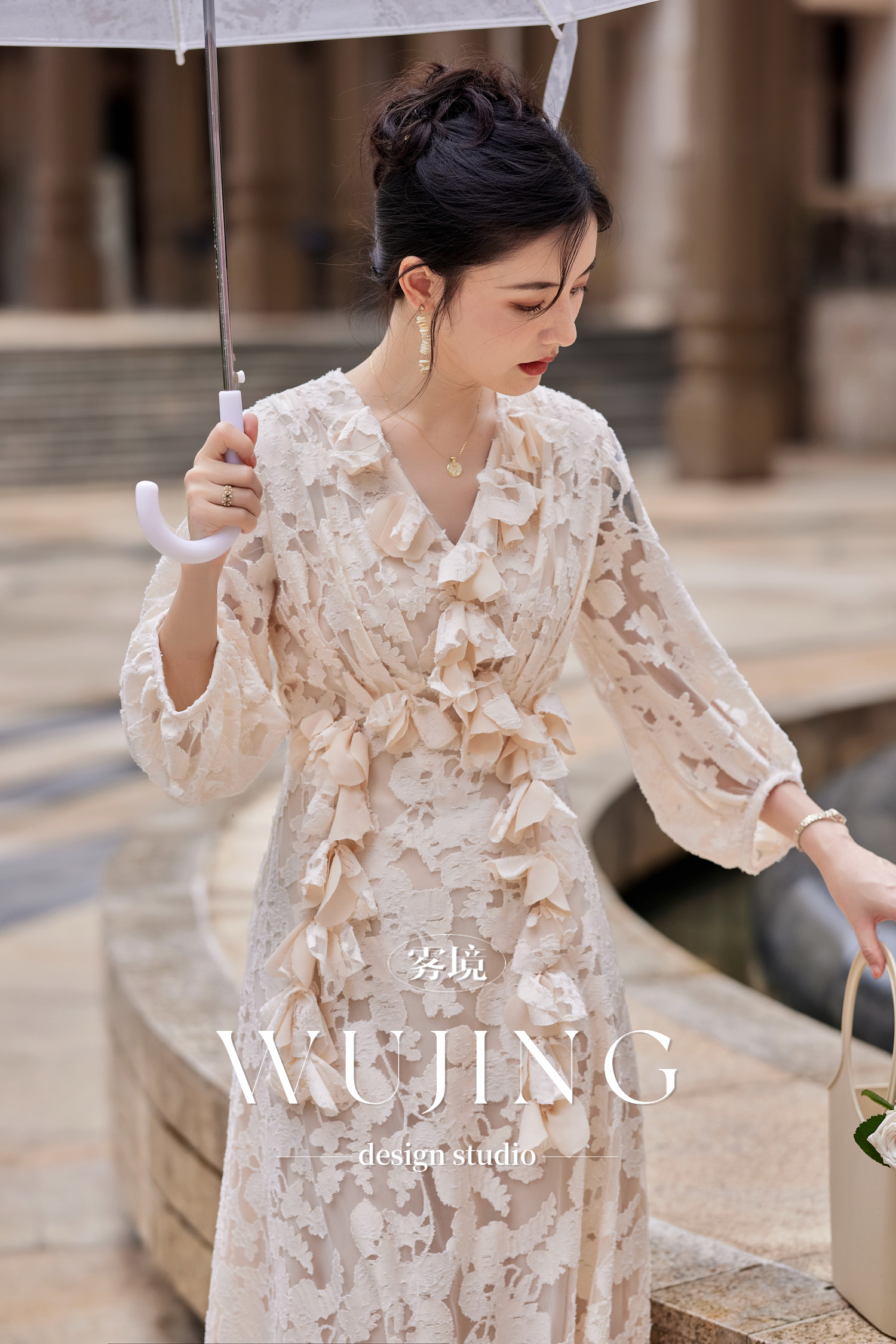 【雾境定制】杏间花雾优雅气质定制烧花薄纱连衣裙 3204127