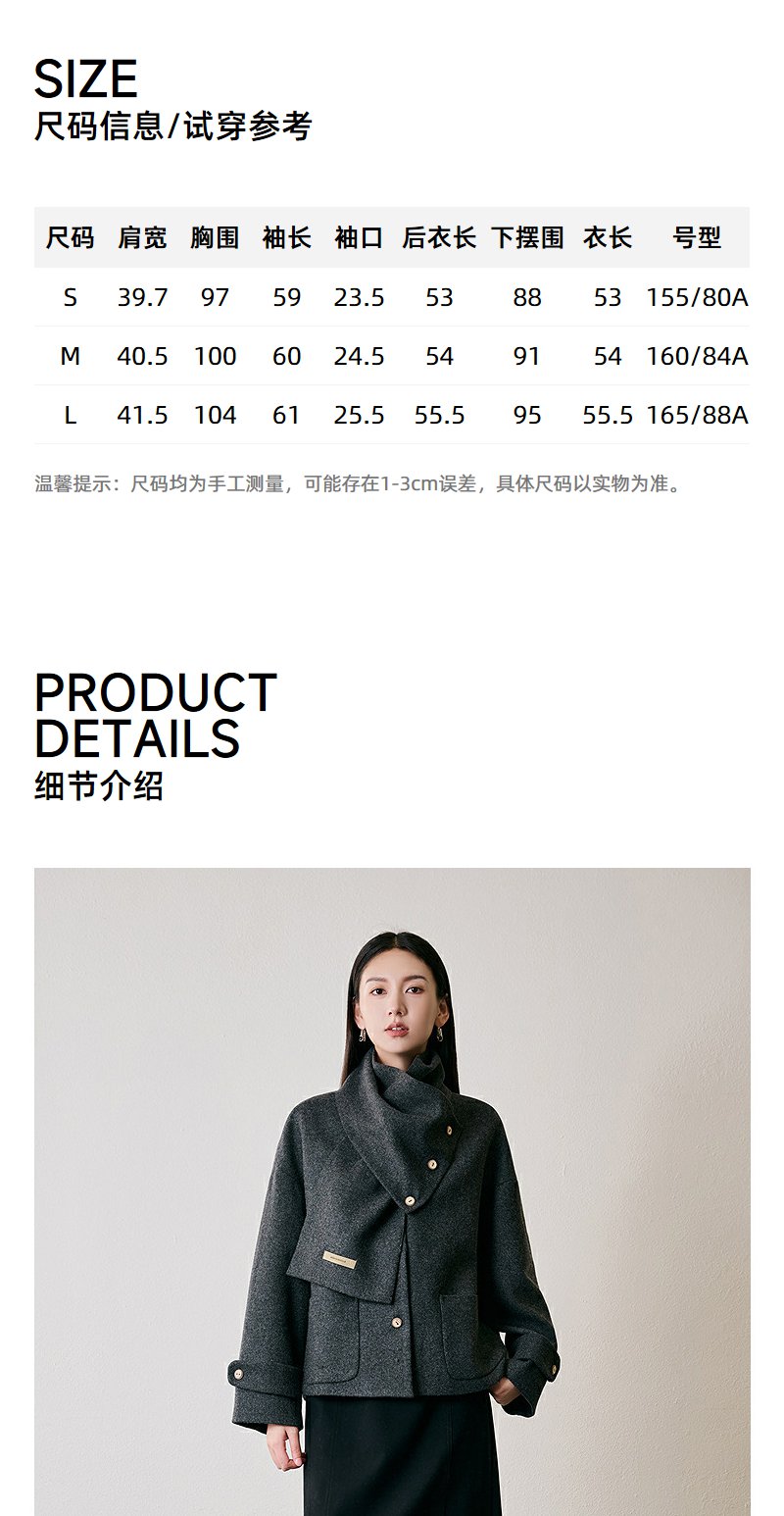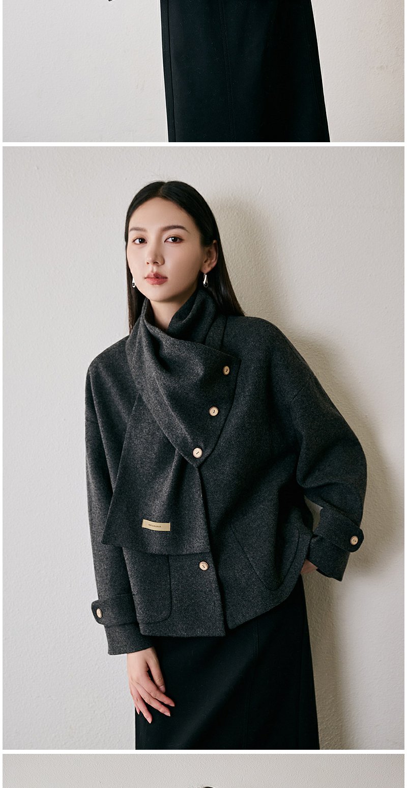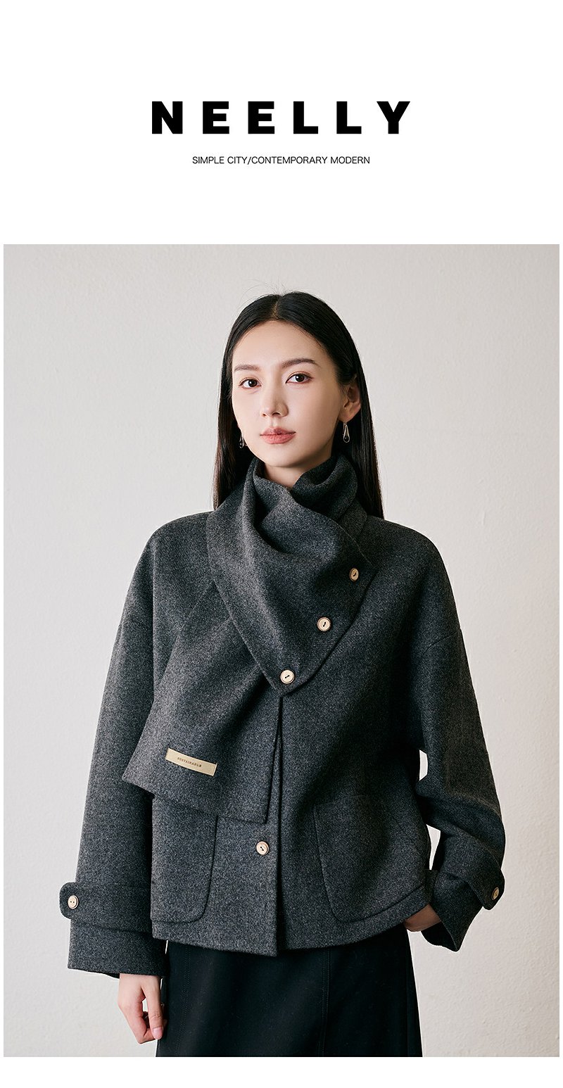 NEELLY纳俪商场同款冬季新款短款设计感围巾领气质绵羊毛外套女N25104C07702