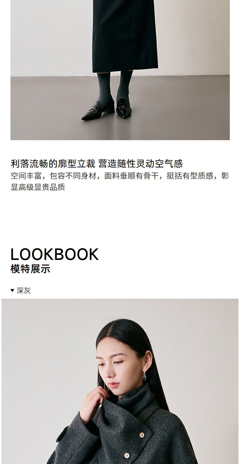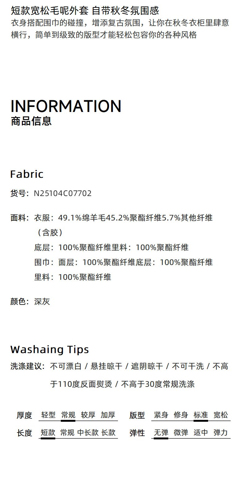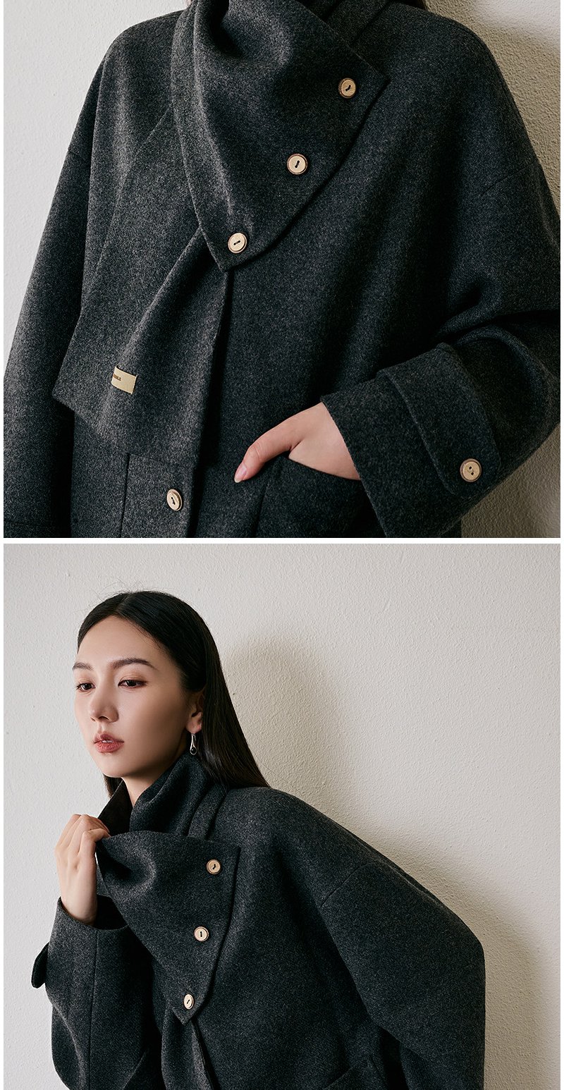 NEELLY纳俪商场同款冬季新款短款设计感围巾领气质绵羊毛外套女N25104C07702
