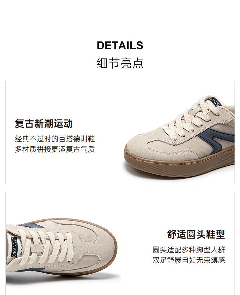 千百度男鞋复古德训鞋男士休闲板鞋舒适跑步鞋运动鞋A25175612