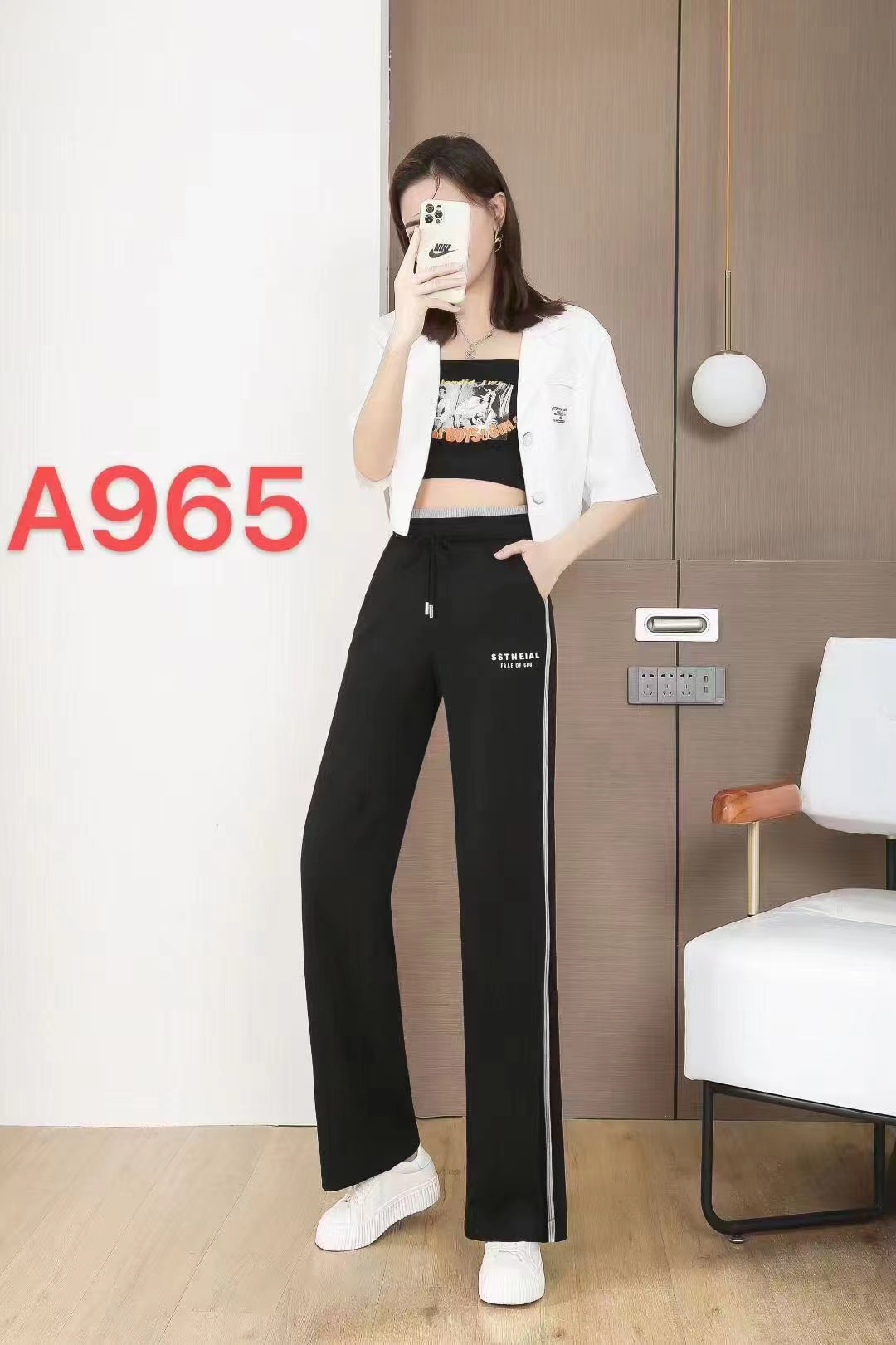 特点,质地垂顺,阔腿直筒款式拉长腿部线条,拽地库长度十分
