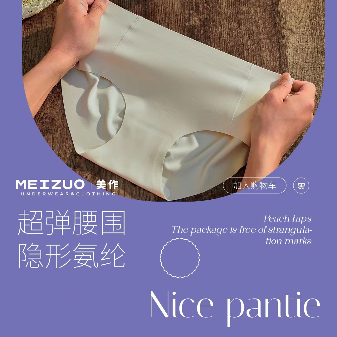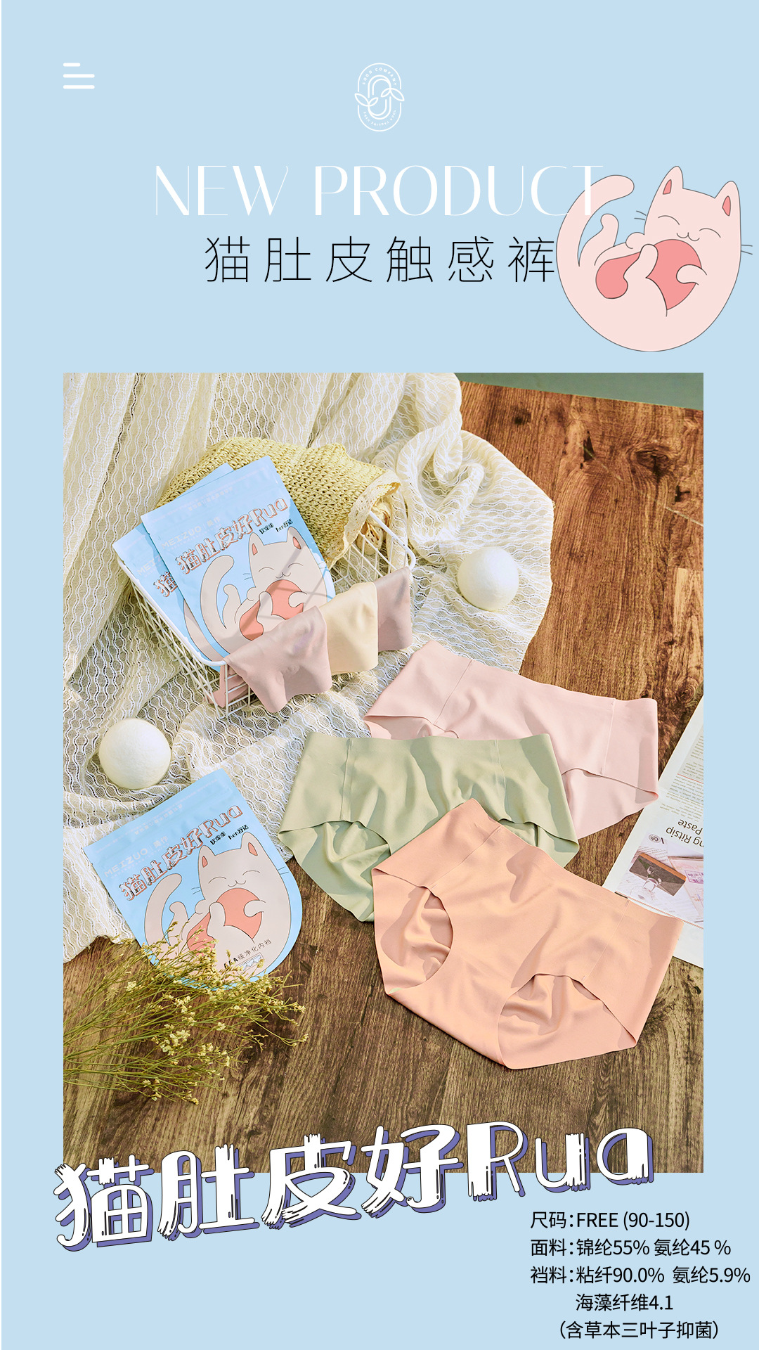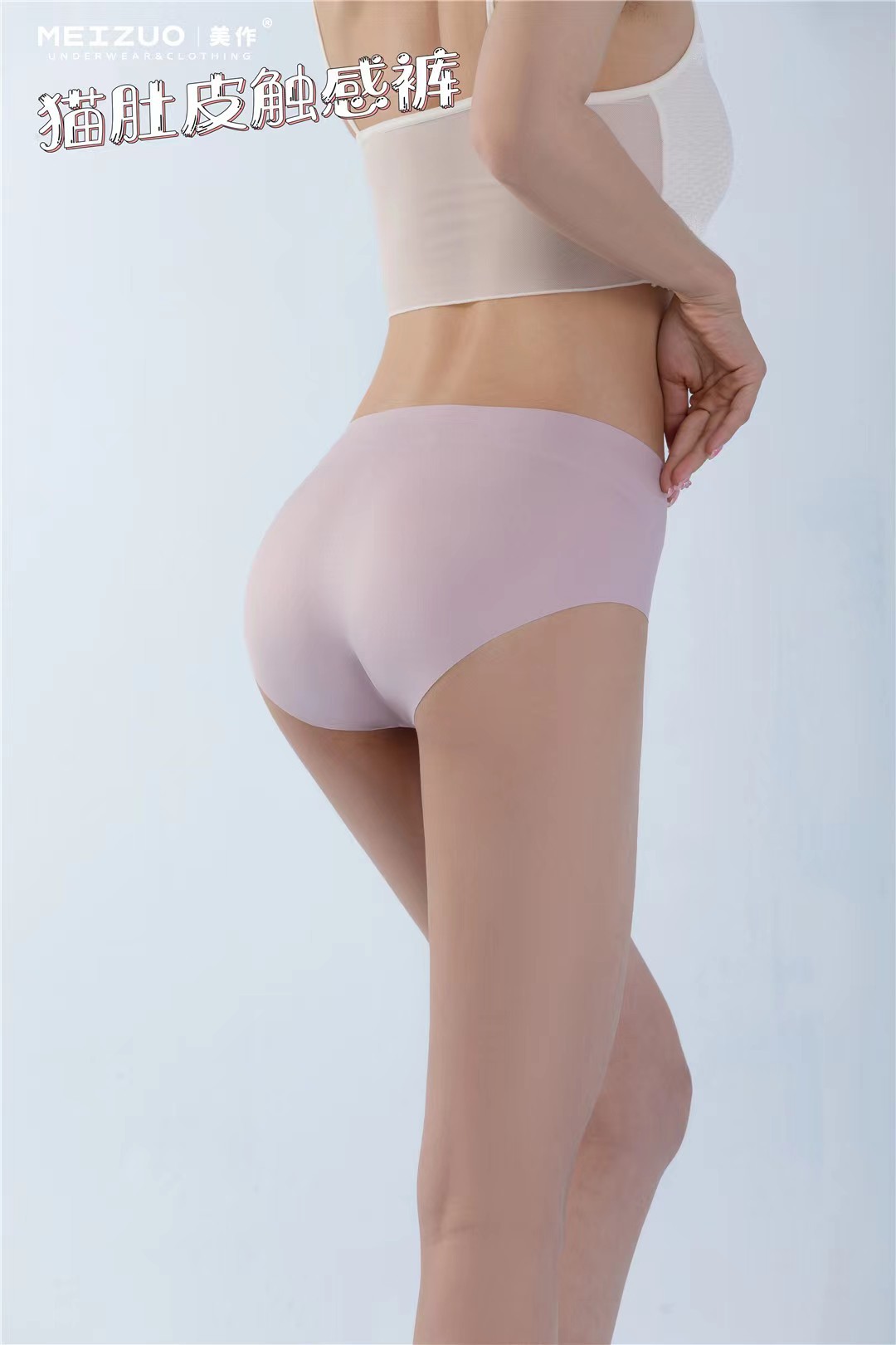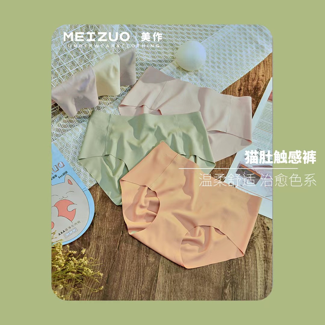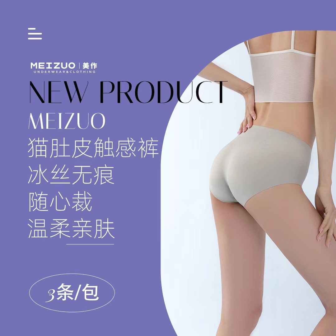 3条/包!【超级舒服的猫肚皮触感裤!】猫肚皮触感裤 一片式无痕冰丝内裤 女中腰高弹 透气yi菌裆三角裤