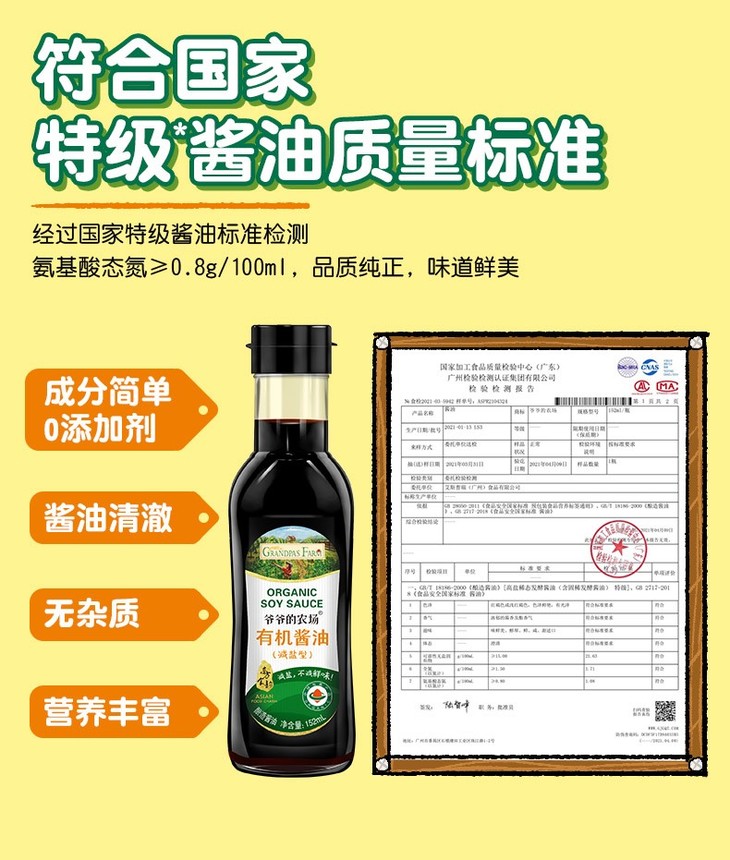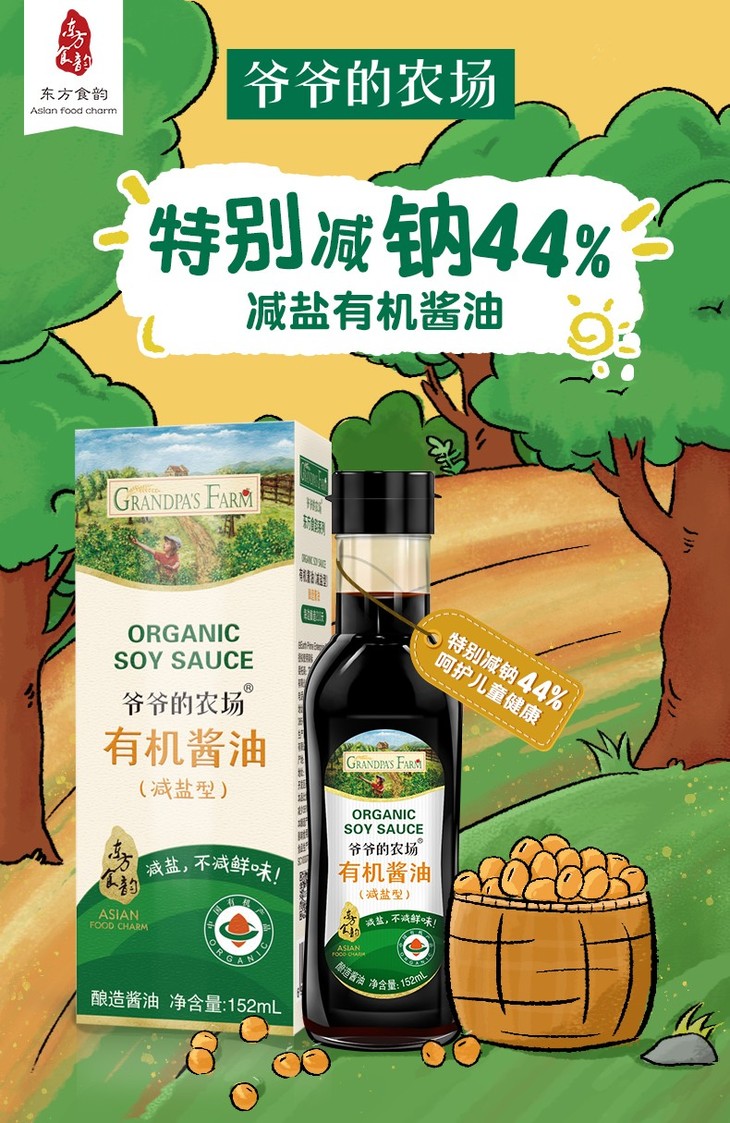 【一般贸易】爷爷的农场有机减盐酱油152ml 无添加可搭配婴幼儿童辅食调味料