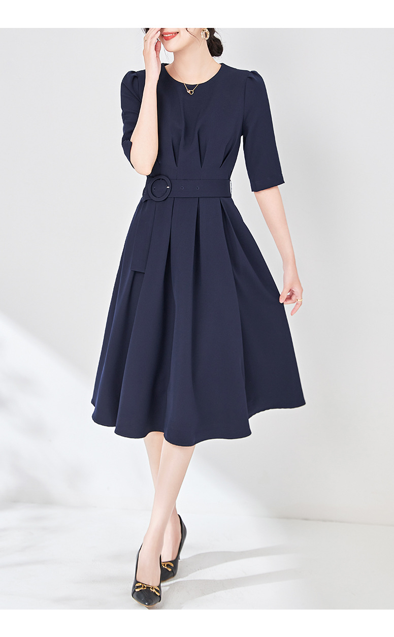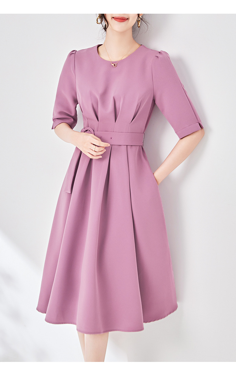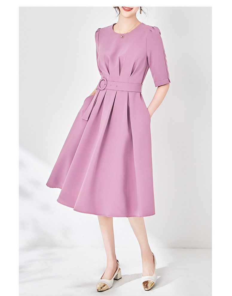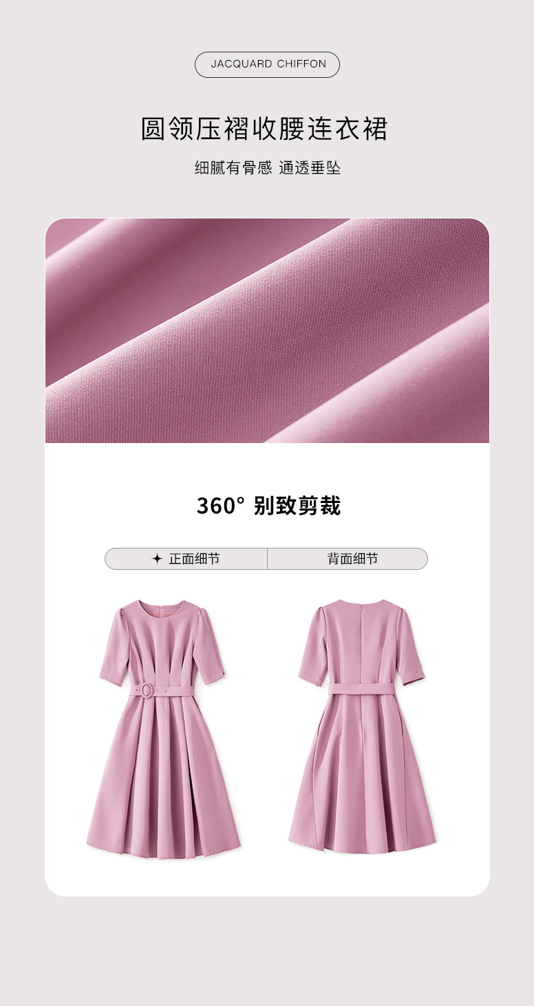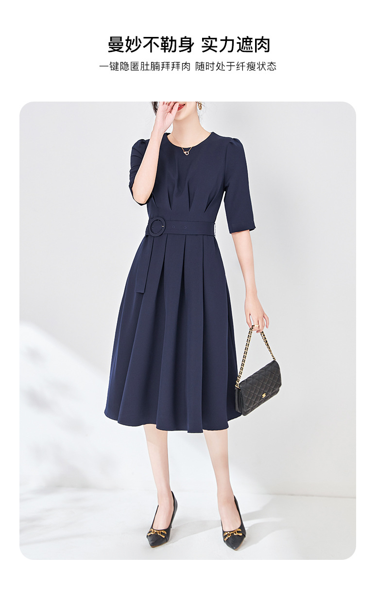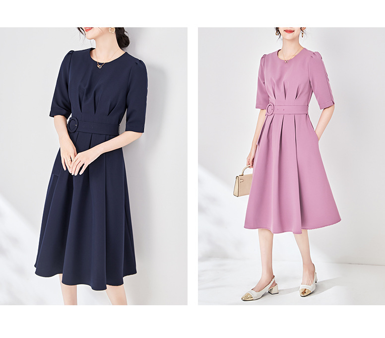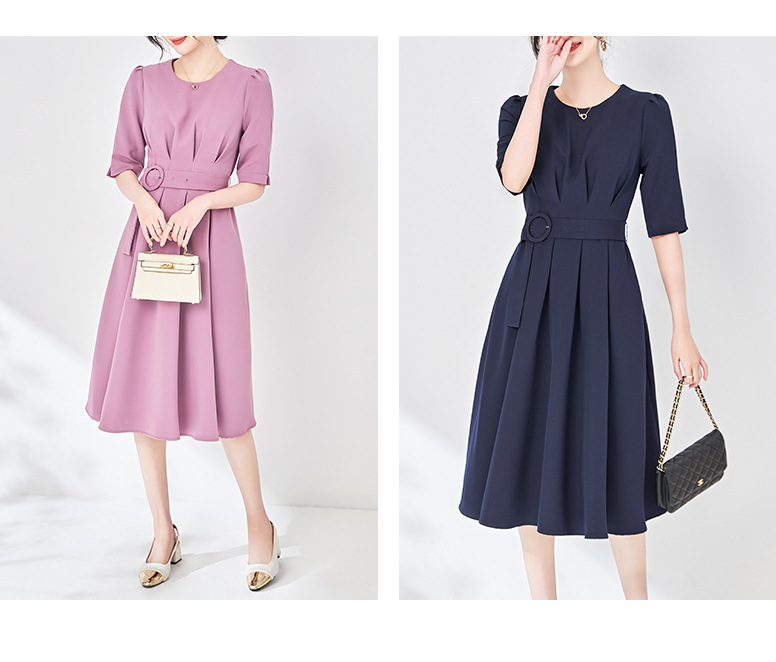 通勤气质女人味,休闲收腰压褶显瘦连衣裙WLZD-2403402