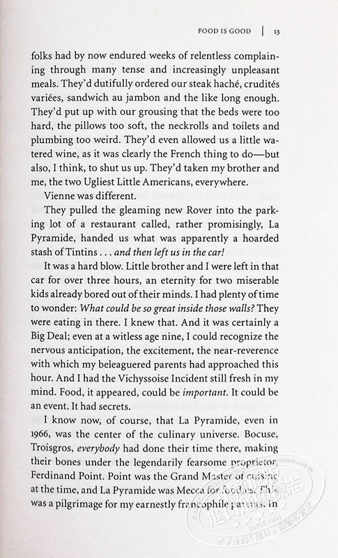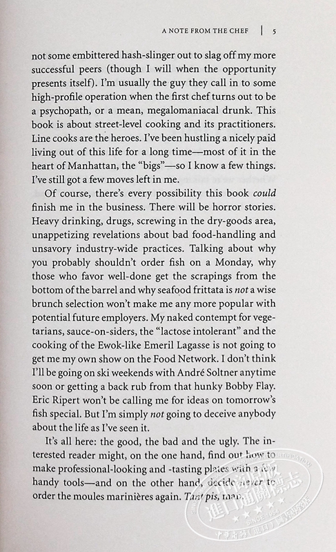 粉丝们一定会喜欢回到这场美味有趣、令人愉悦、令人震惊的盛宴,讲述烹饪行业中疯狂而真实的生活故事,展示布尔登超过四分之一个世纪的高级美食。 该版本包括布尔登在本书初出版大约十年后所做的手写介绍和注释,还配有以前未出版的照片来搭配现在的经典文本。