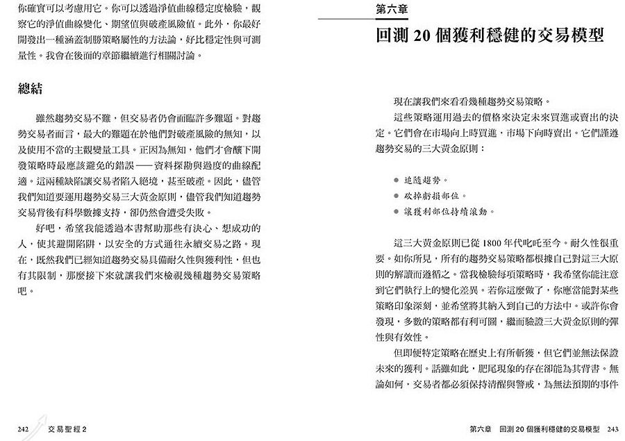 本書將聚焦在策略分析、回測、開發與如何正確執行交易的實務面上,