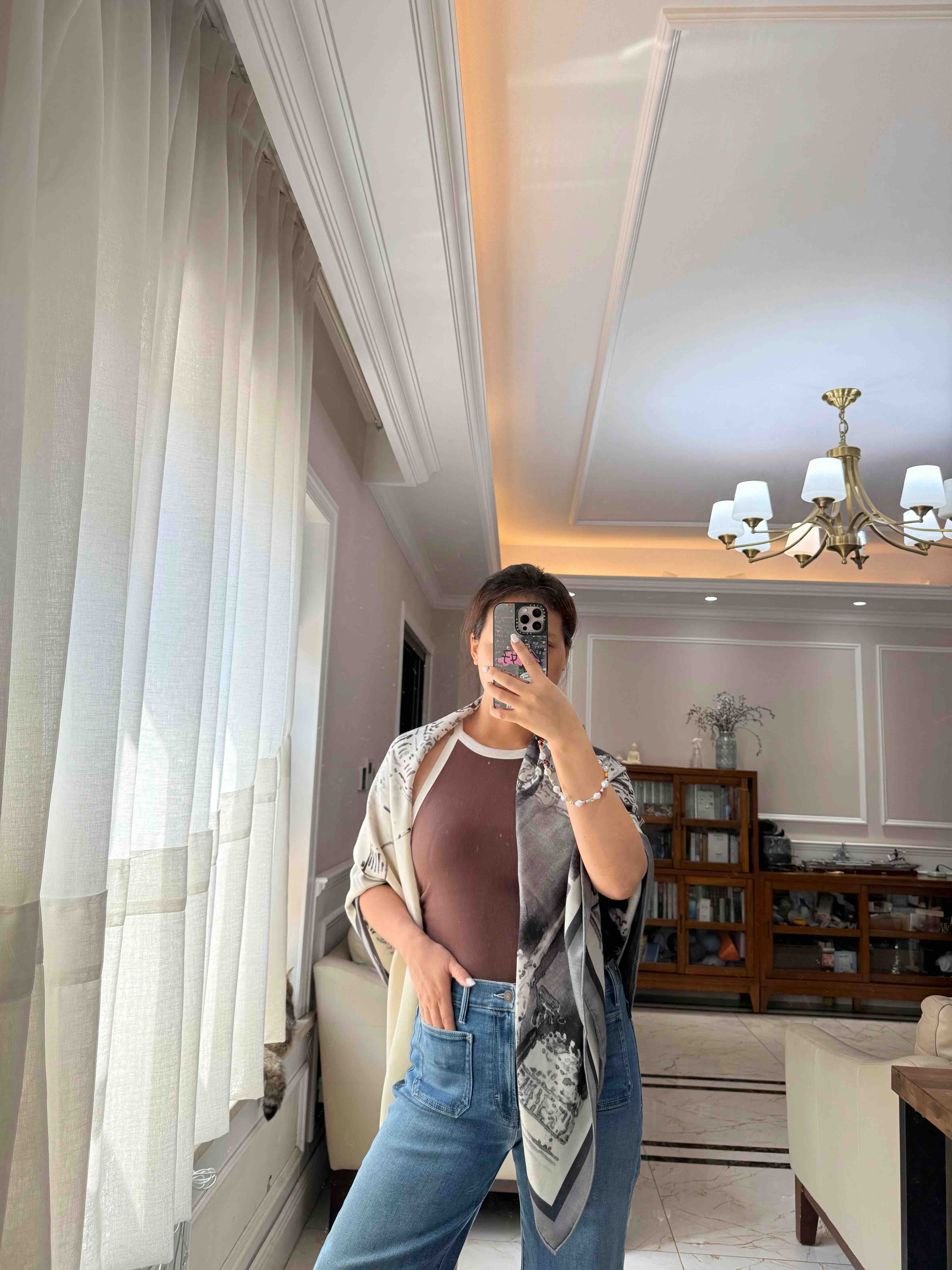 有我喜欢的灰紫色调调。围巾用的好,衣品提升几个level~~~ 在我来看,四季皆宜,尤是其夏天空调房真不可或缺穿。背心是快凉,后脖颈空一调吹就嘎吱酸爽。