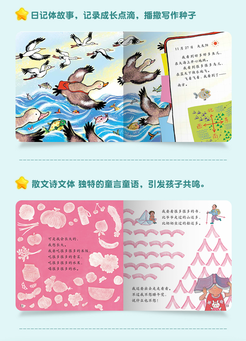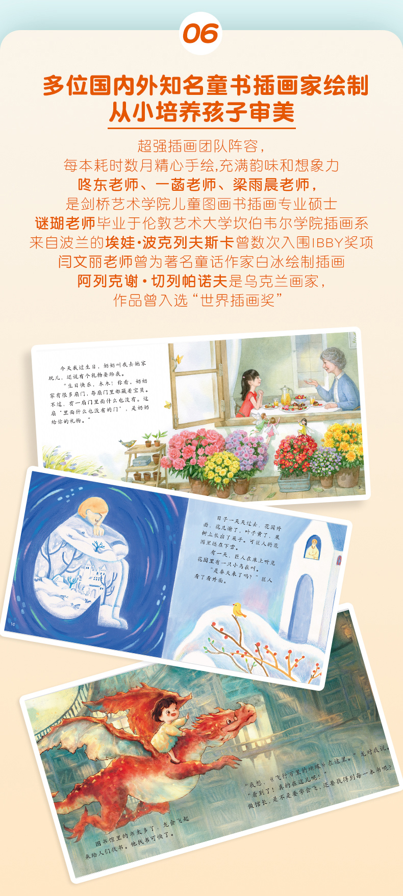 Ø 很强的艺术性:力邀国内外一线童书插画师精心创作,插画细腻有质感,颜色清新富有童趣,极大提高孩子的阅读兴趣和艺术审美!