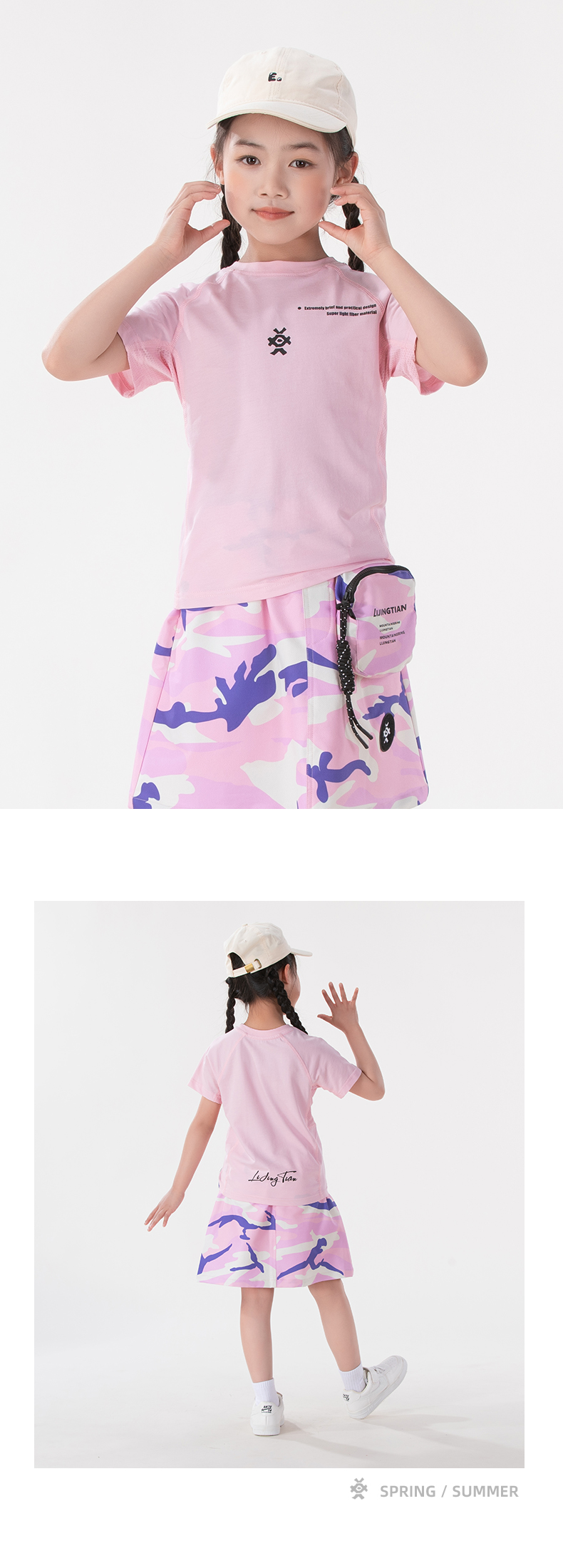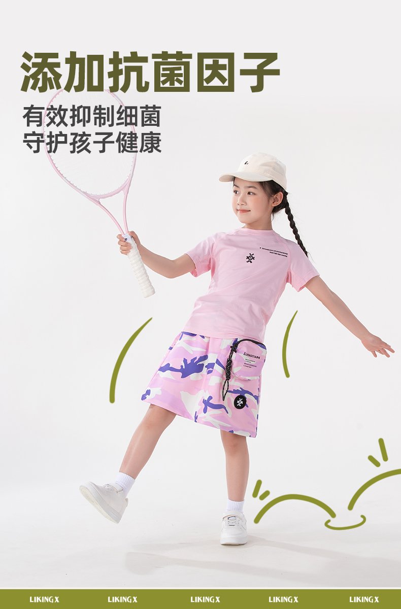 2025年新款 力丼田儿童户外夏季款 粉红短袖T恤 L2421S004CARD