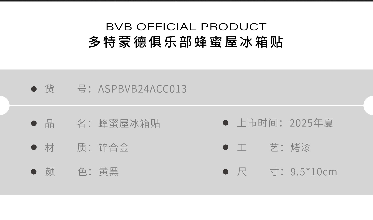 【官方正版】多特蒙德足球俱乐部 | 蜂蜜屋冰箱贴黄色锌合金材质周边
