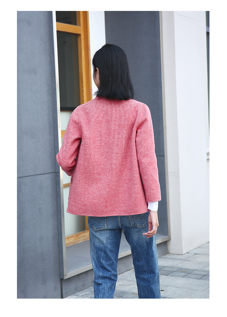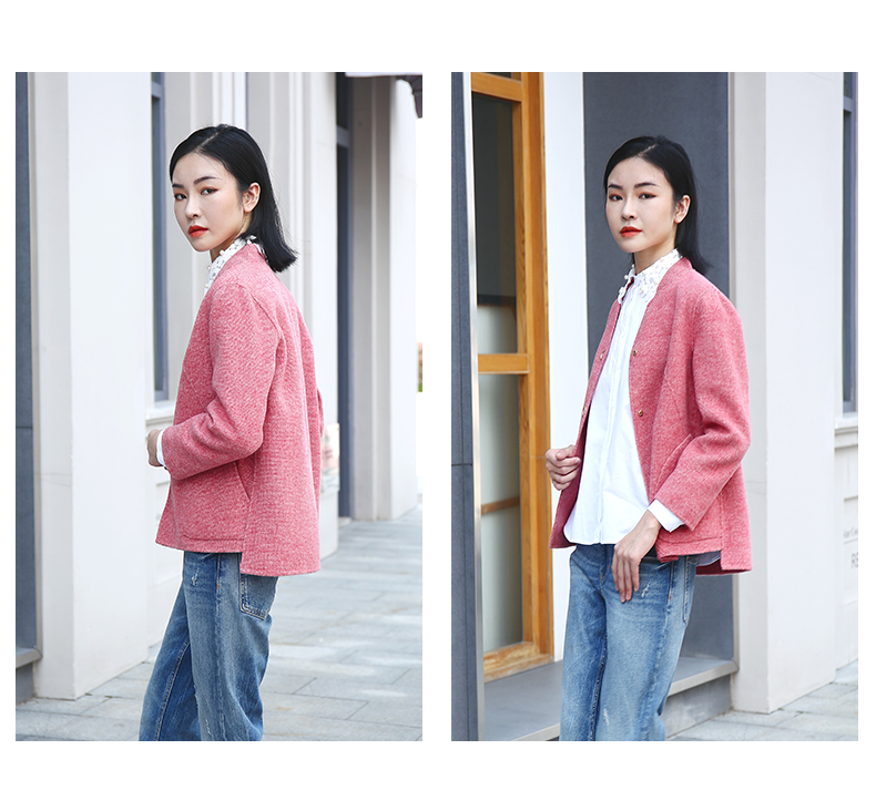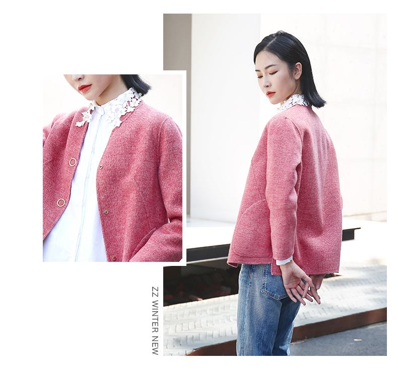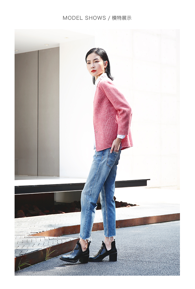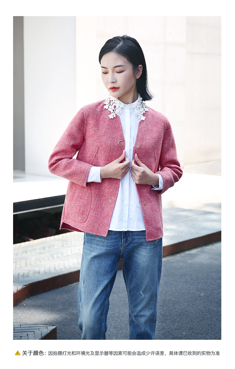 佐尔美春秋季新款简约气质复古短款绣花领羊毛外套E04SM03