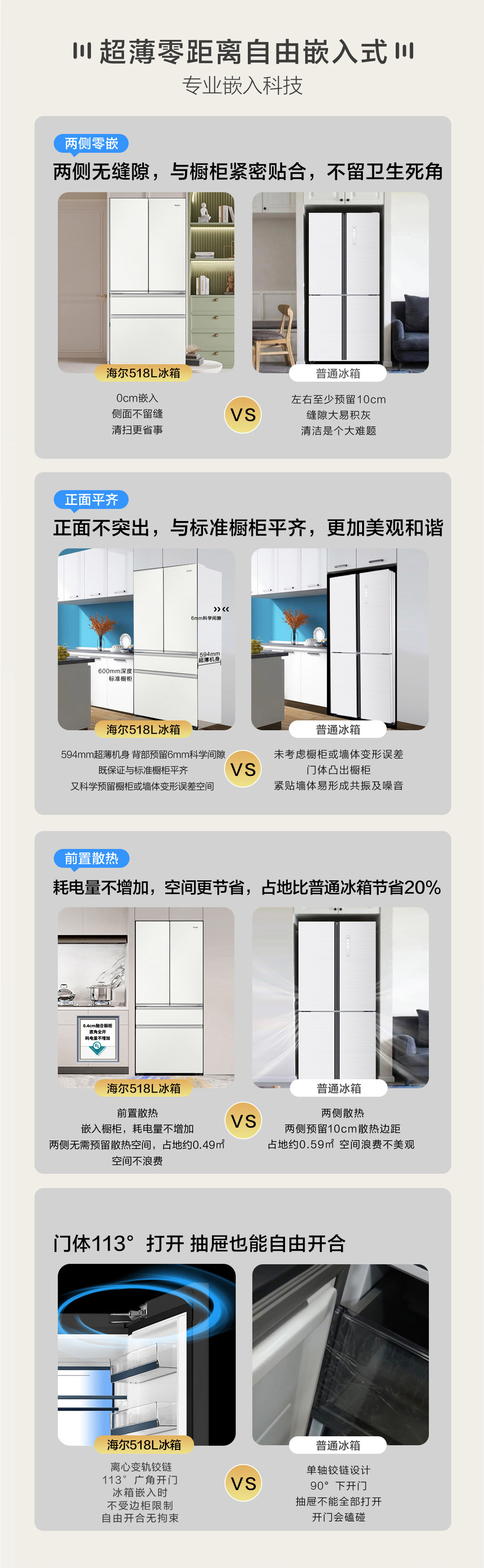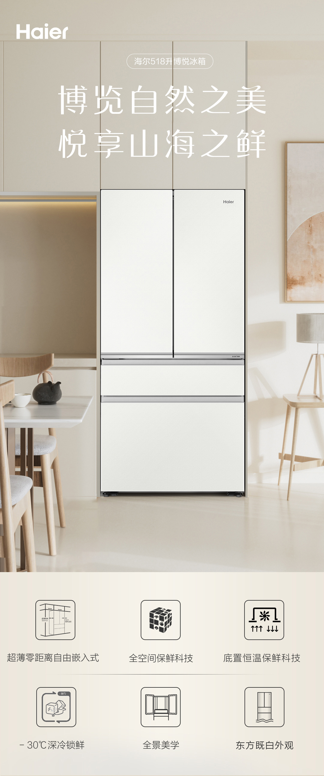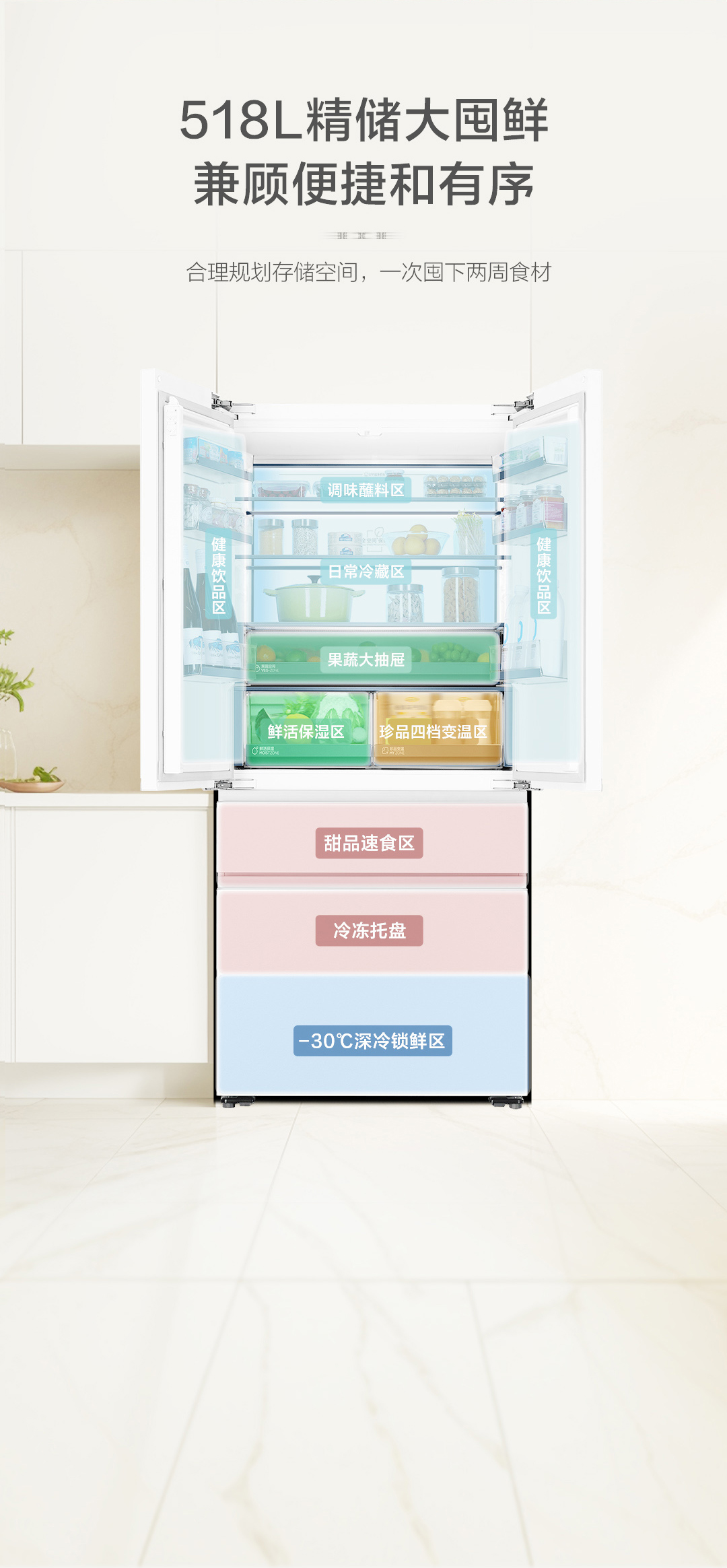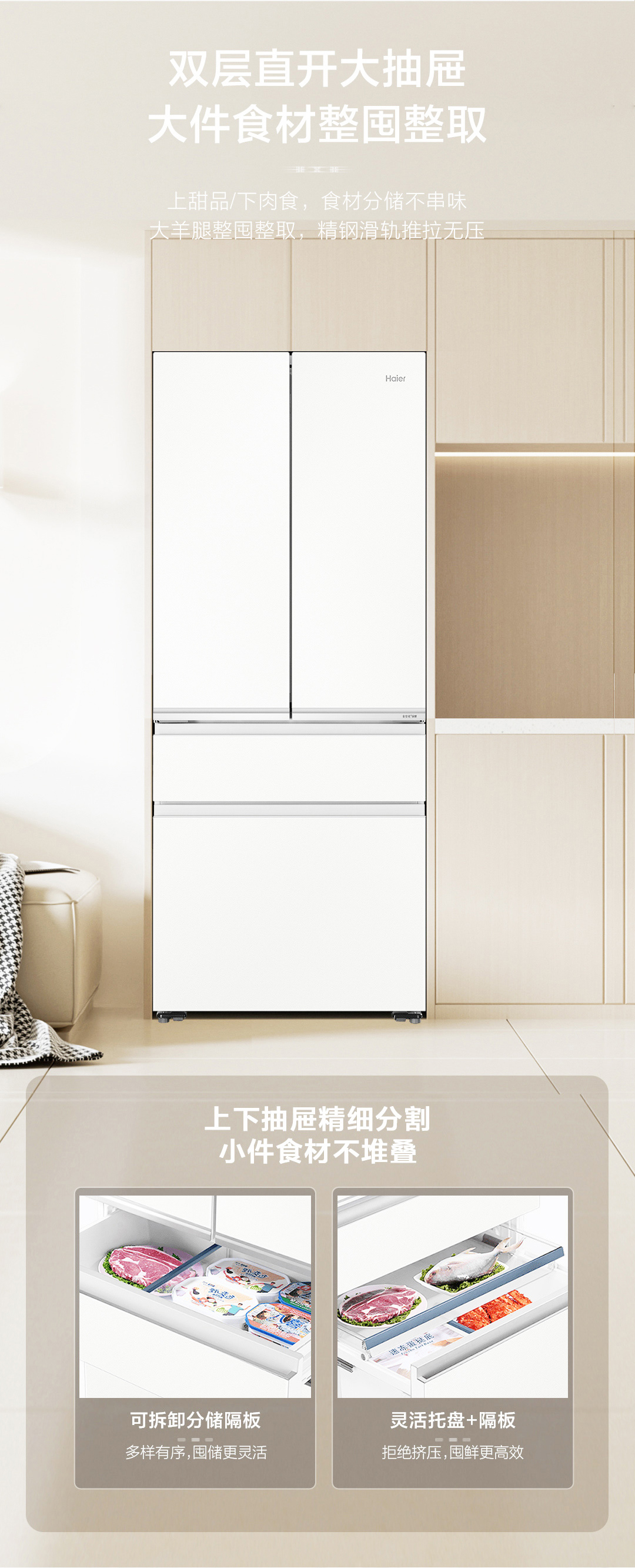 海尔冰箱518L超薄594mm零嵌法式开门冰箱 全空间保鲜干湿分储EPP净味除菌一级变频风冷无霜智能冰箱